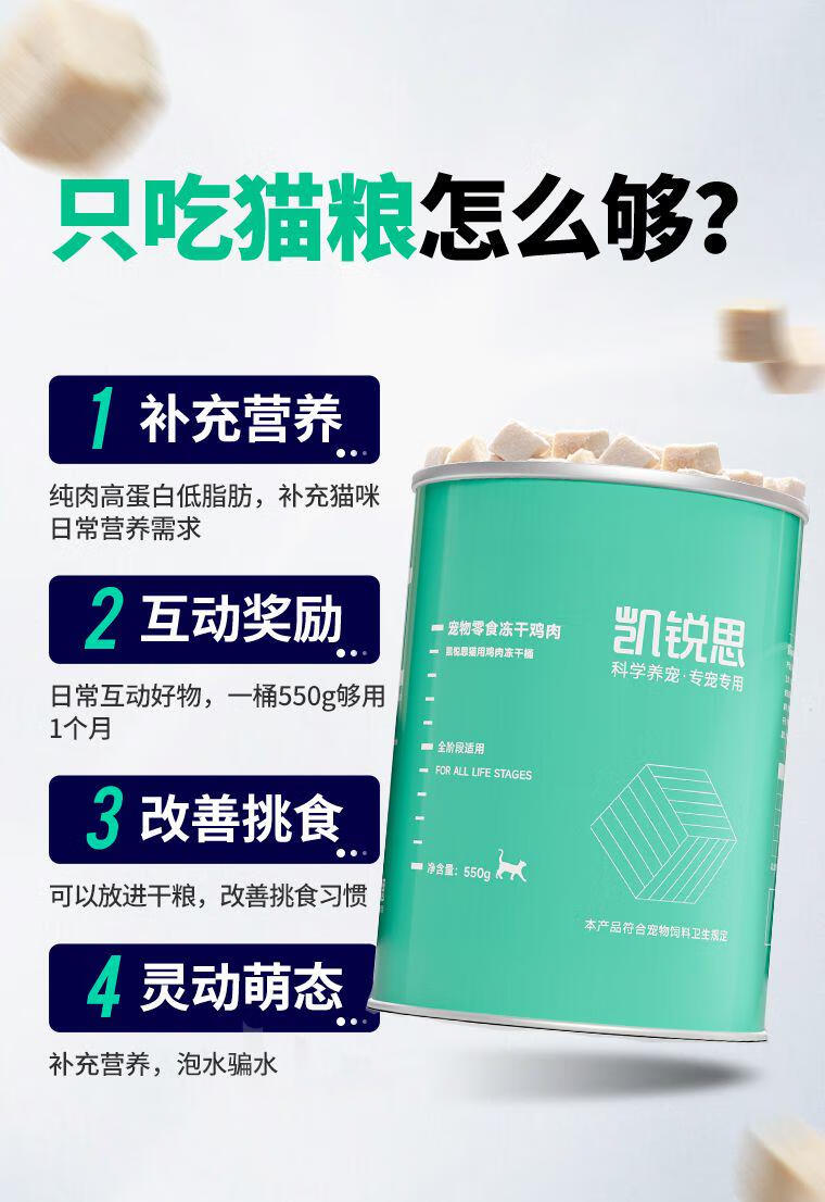 凯锐思猫冻干鸡胸肉粒550g桶装猫零食100%纯鸡肉冻干宠物零食