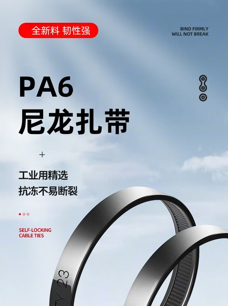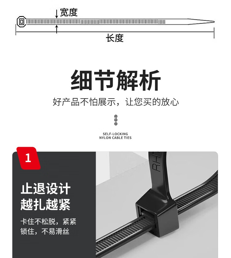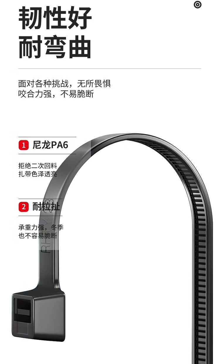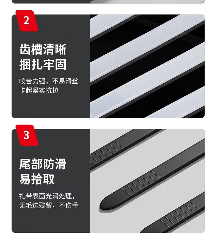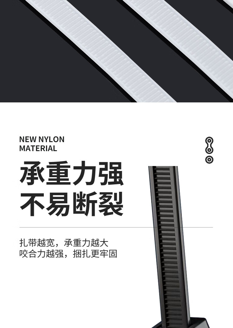 添翼自锁式尼龙扎带 理线带 主机装机 园艺 线缆桌面理线束线捆扎绑带 黑色4.7*300mm 100根