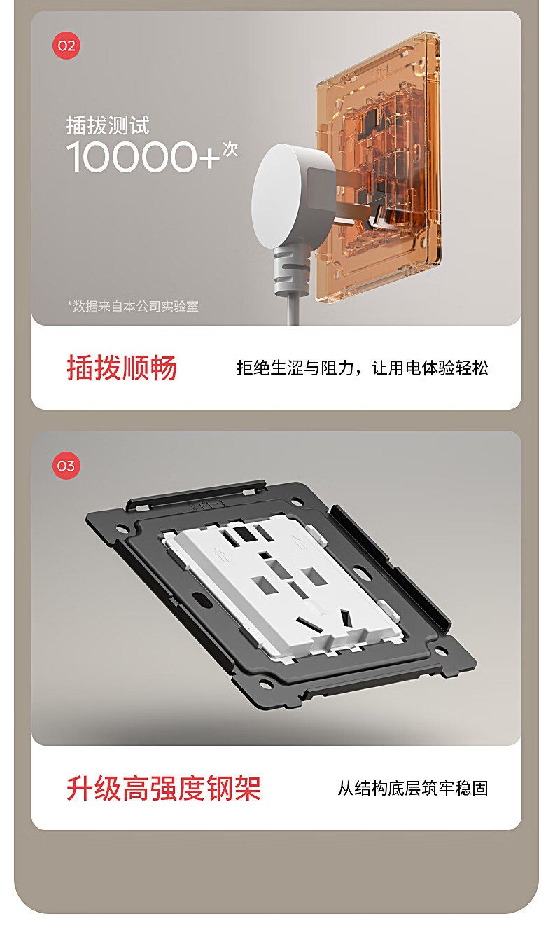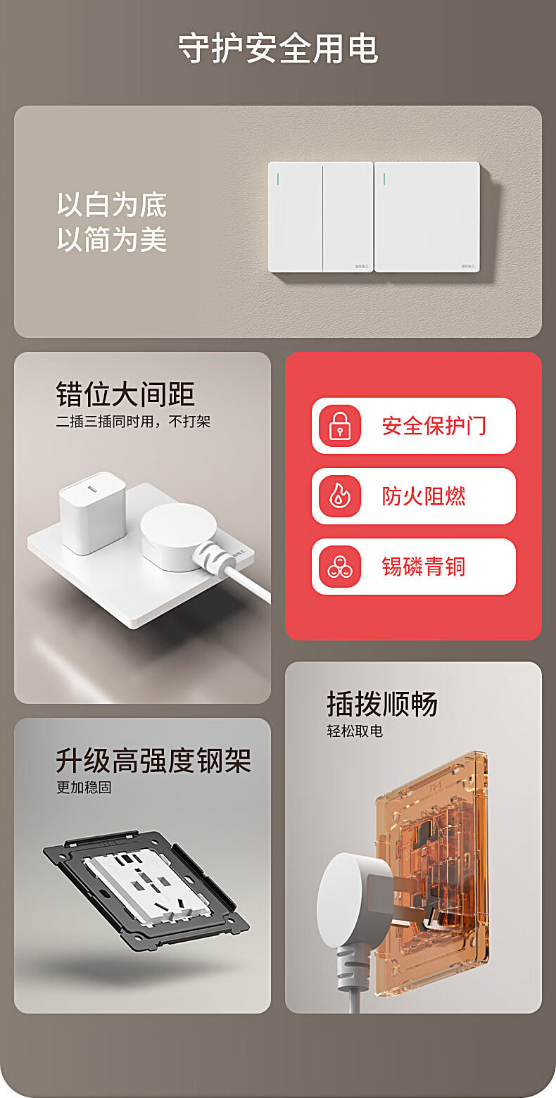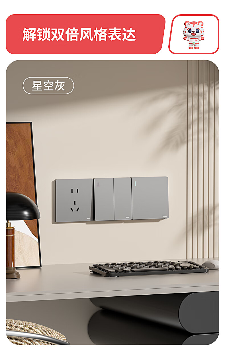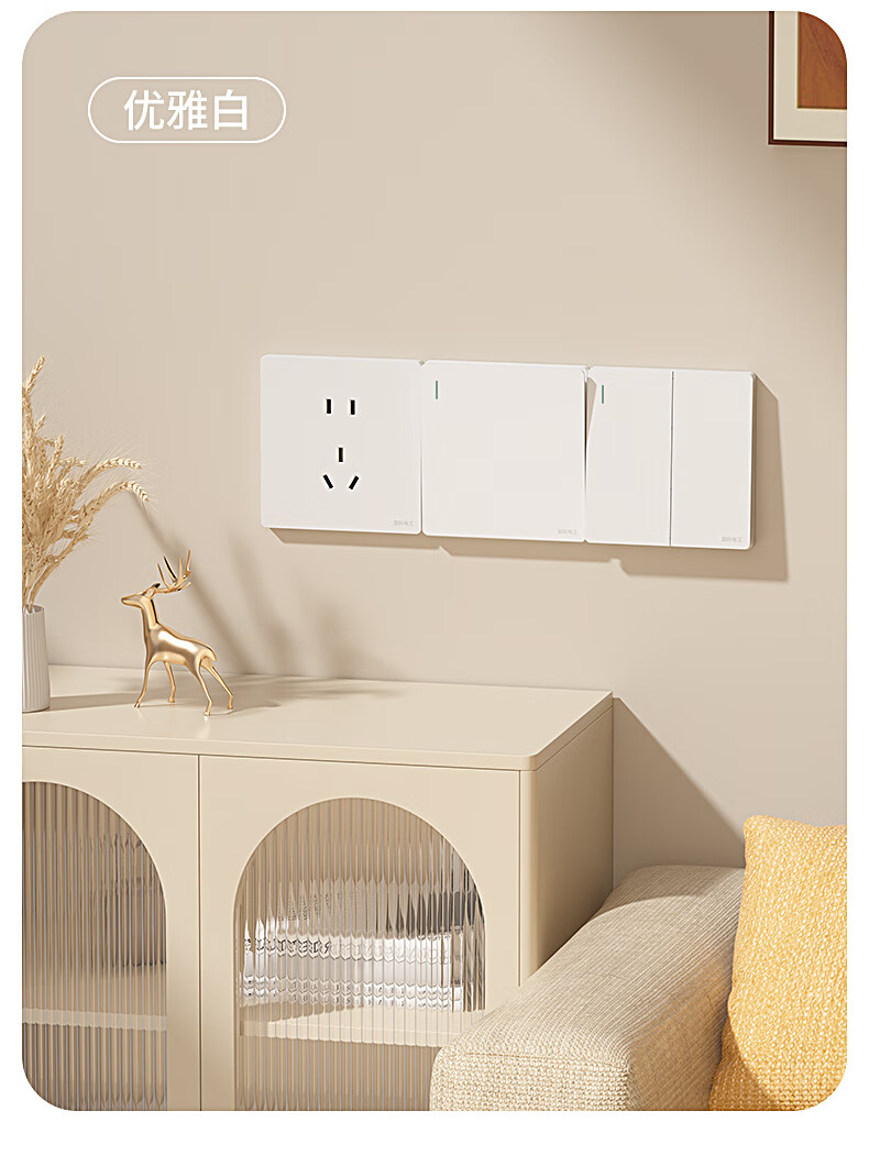 NVC雷士电工 开关插座 10a斜五孔插座 86型暗装插座面板 N25奶油白