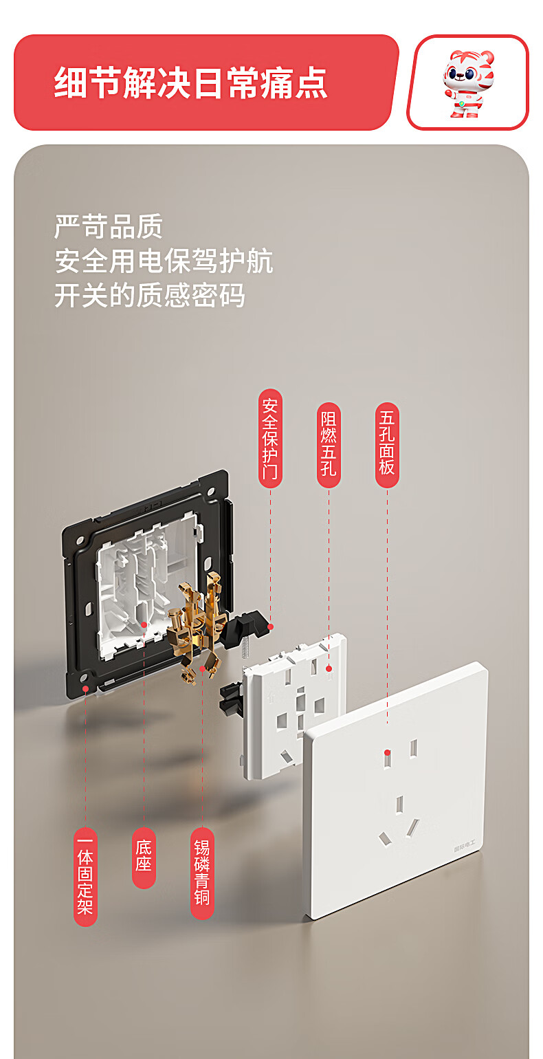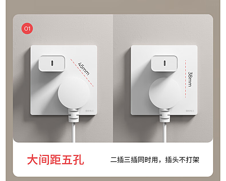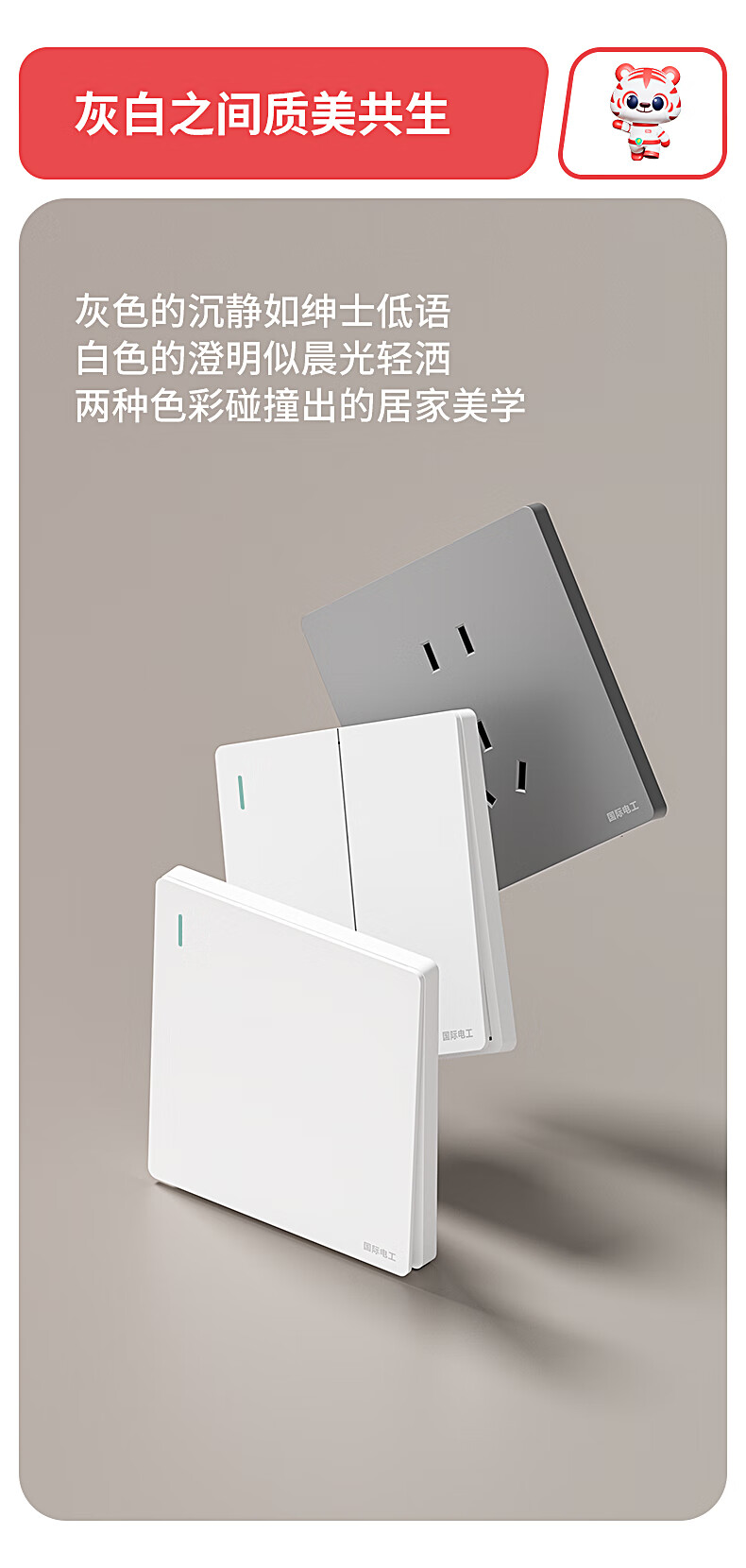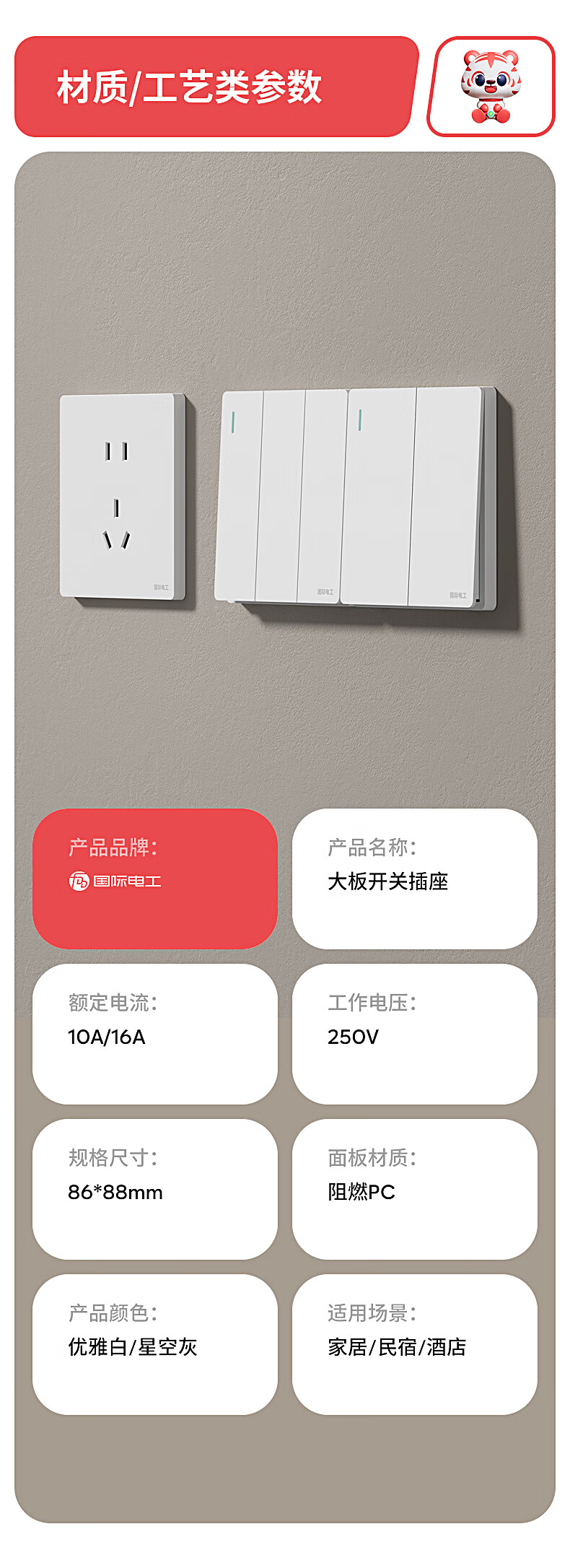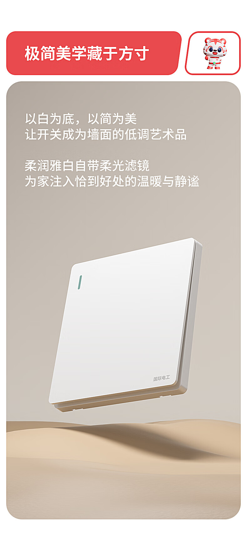 国际电工开关插座面板家用墙壁86型暗装一开5五孔电源插座超薄白色开关 错位五孔