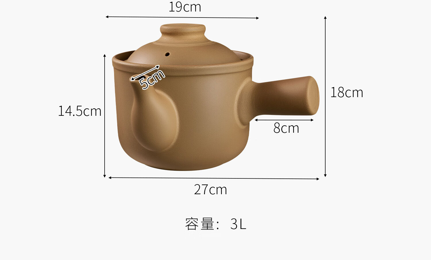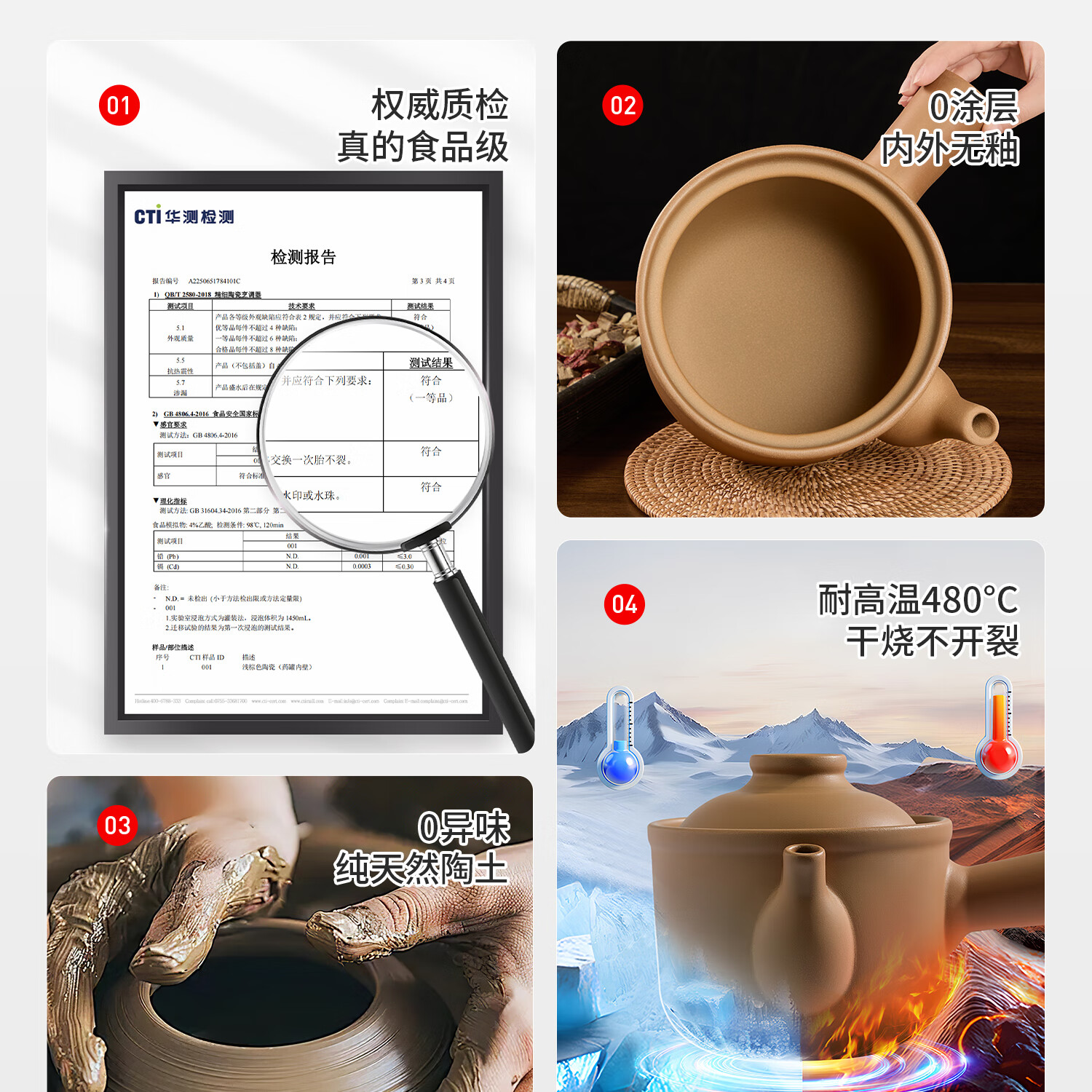 吱凡日本中药砂锅老式熬药家用专用煎药壶传统明火煮药的瓦罐药煲药罐 【全无釉】适合药量420克内 3L 单个煎药壶【烧坏包赔】