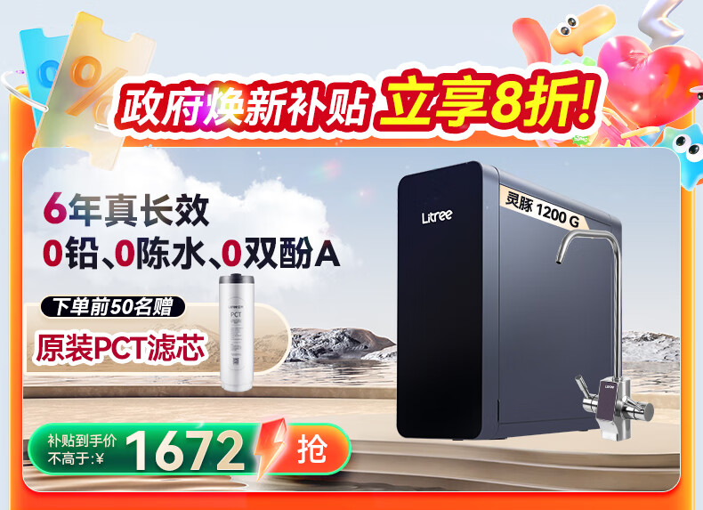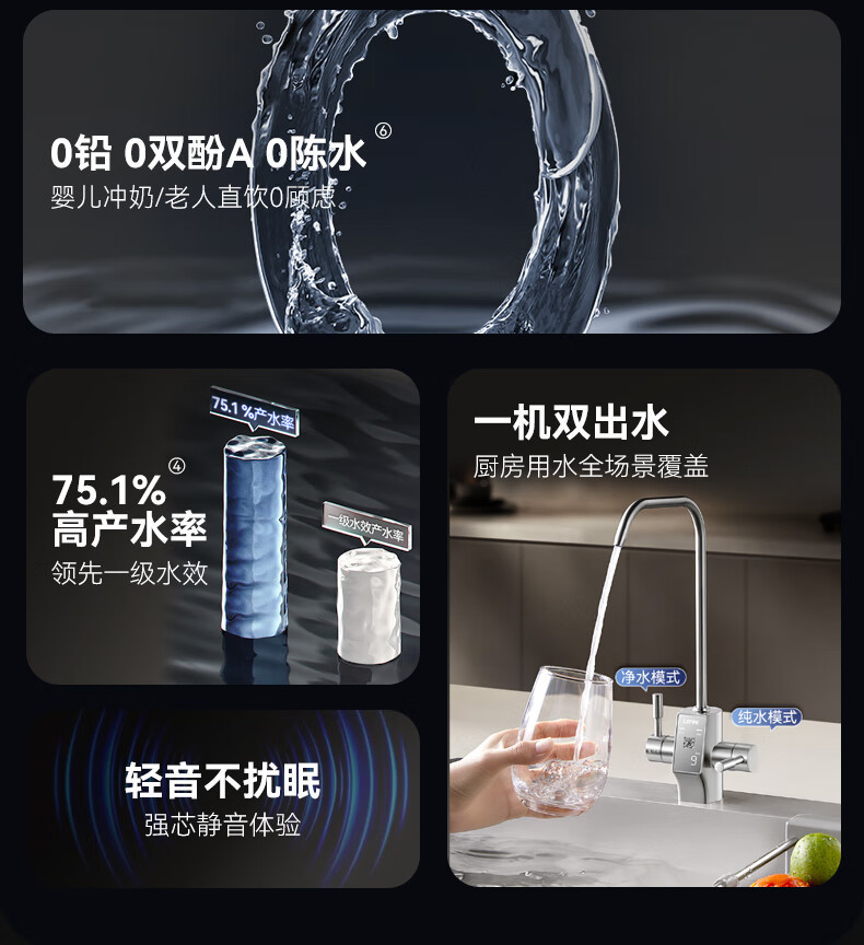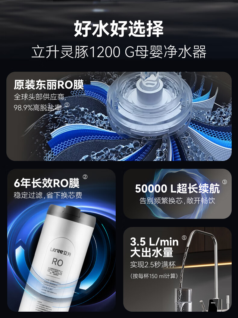 立升净水器家用1200G大通量双出水净水机厨下式6年RO反渗透过滤净饮一体机过滤器纯水机 【年度新品】灵豚1200G流速