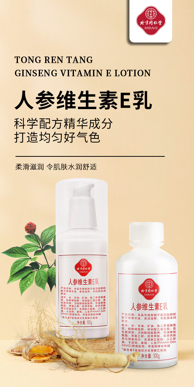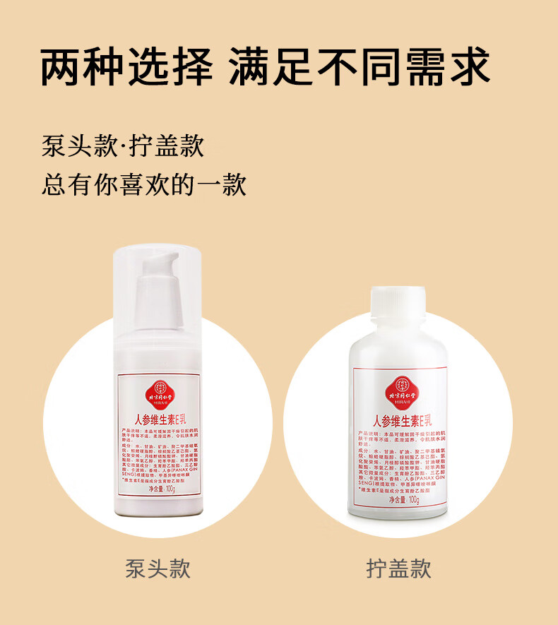 同仁堂维生素e乳膏 人参ve乳面部保湿补水滋润男女擦脸面霜护手身体乳液 10瓶【8按压款+赠2按压款)