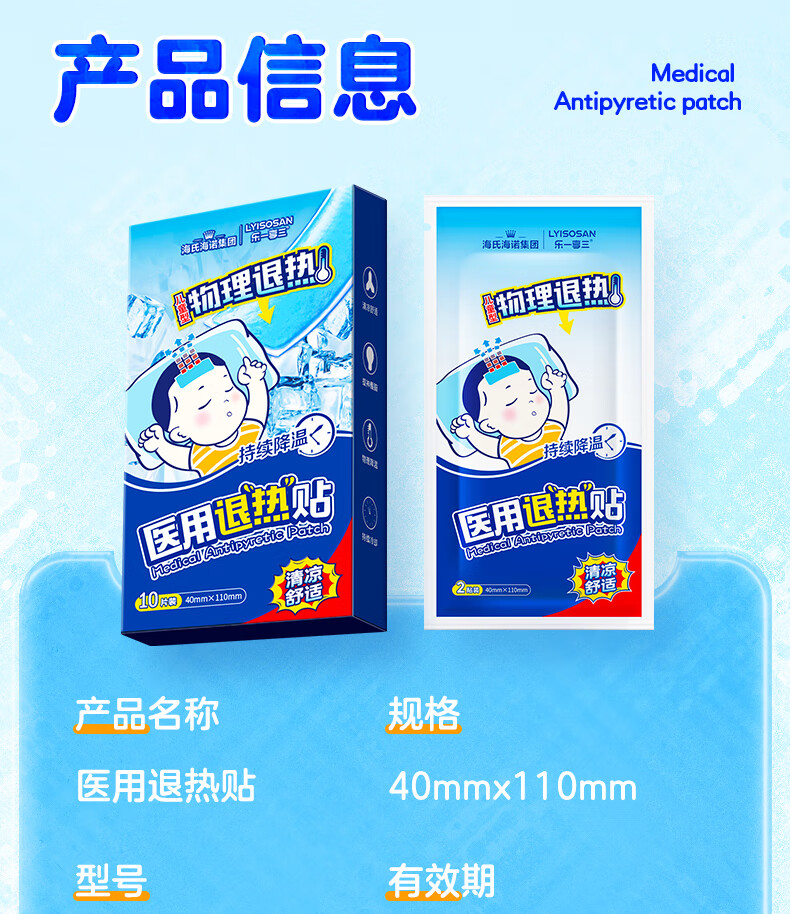 海氏海诺医用退热贴儿童型婴儿物理降温退烧贴散热贴清凉冷敷贴 30贴