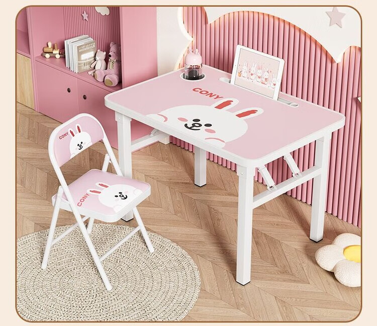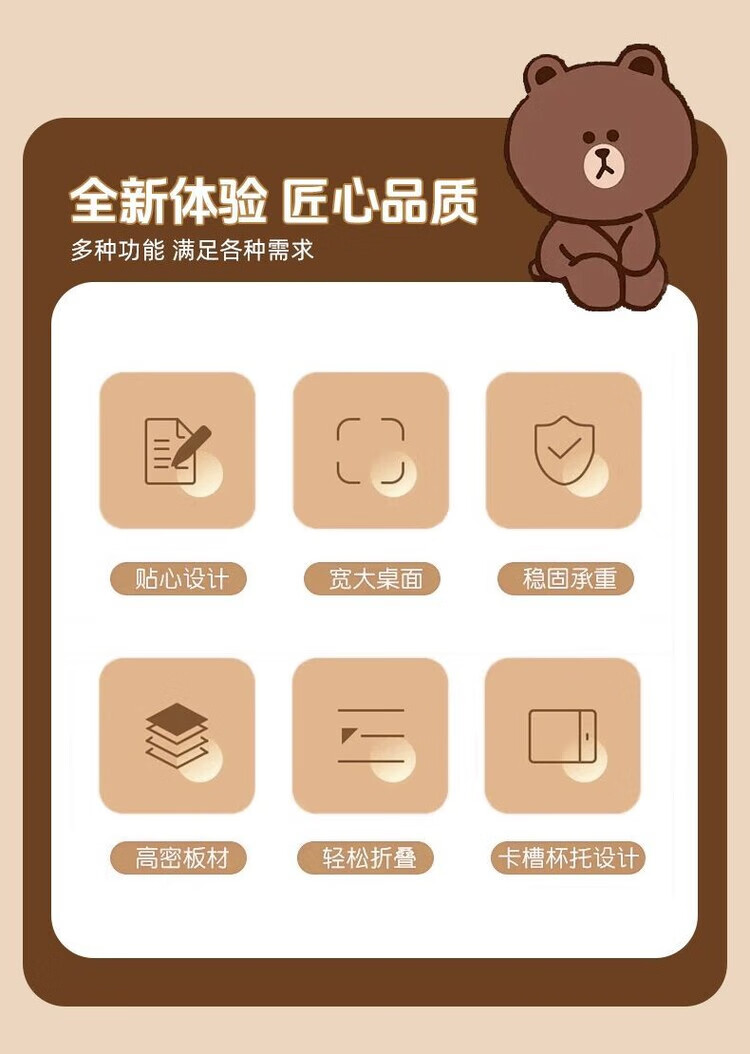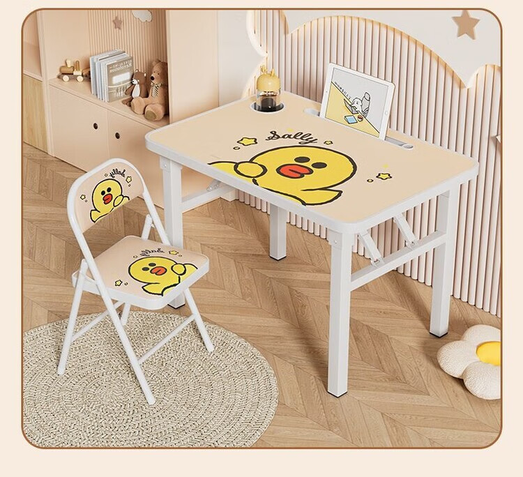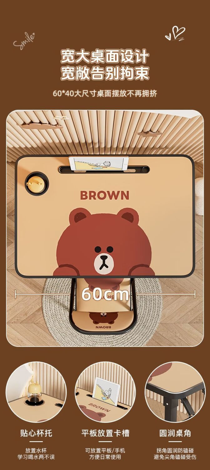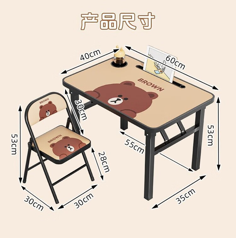 弘星隆新款布朗熊正版权儿童学习桌椅套装免安装可折叠小书桌学生写字桌 布朗熊 【学习桌】可折叠免安装