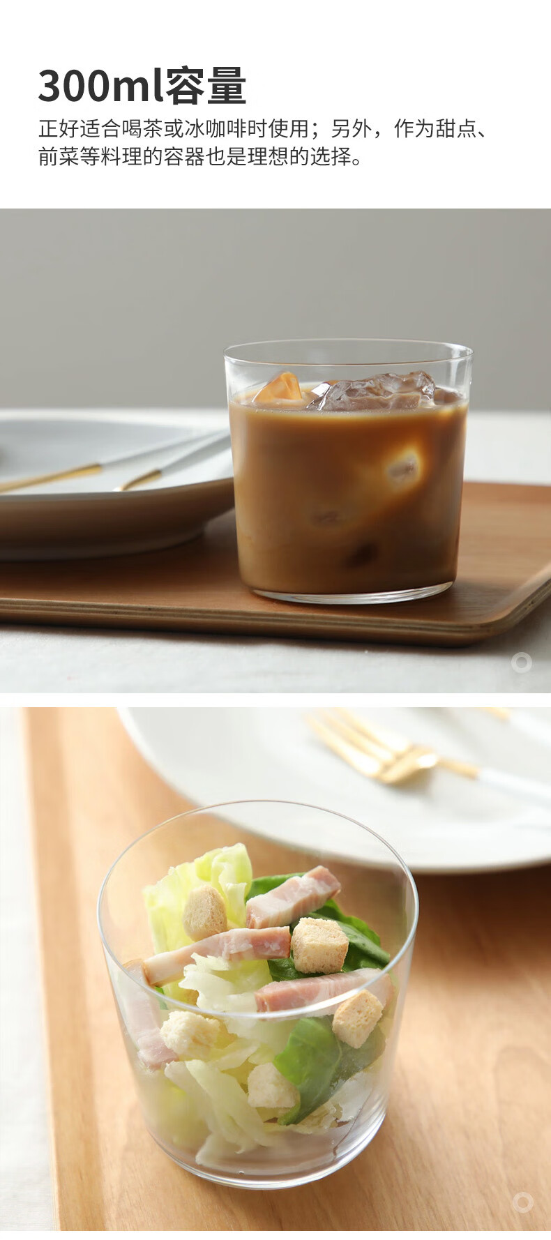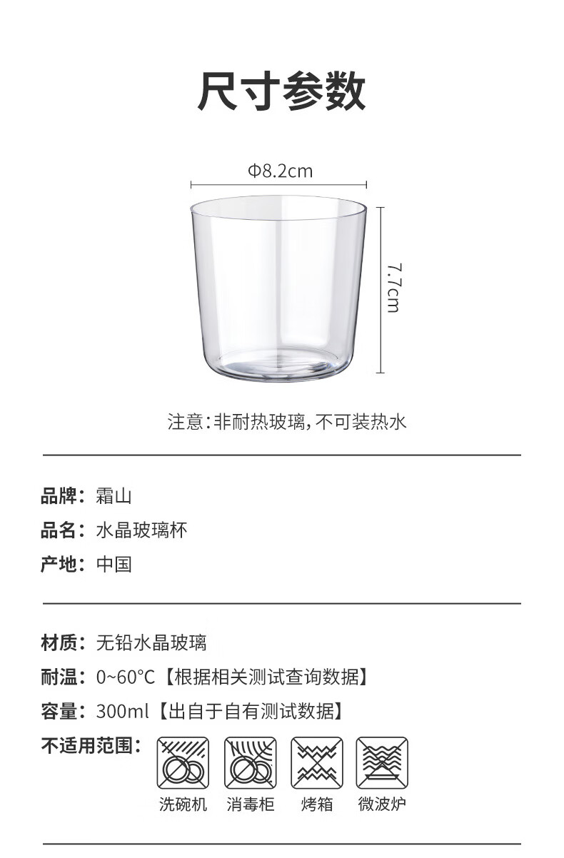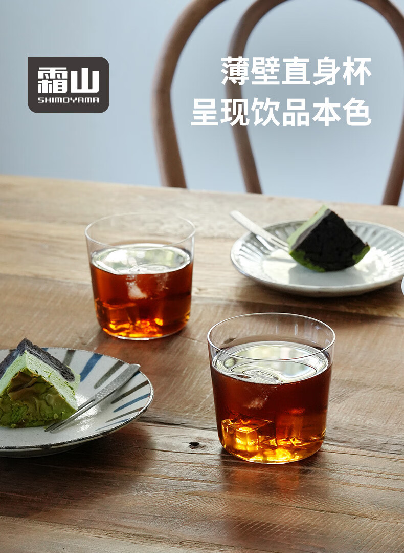 霜山水晶玻璃杯夏日果汁冰咖啡杯茶杯薄壁透明直身冰饮啤酒杯水杯 【300ml】2只入 纤薄通透