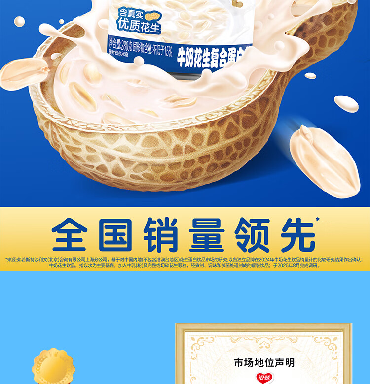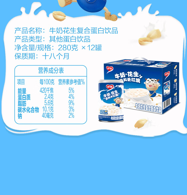 银鹭 牛奶花生口味复合蛋白 280g*12罐 整箱