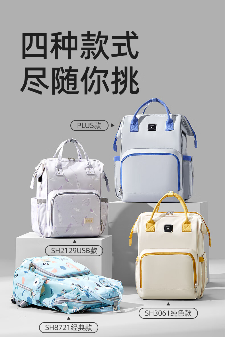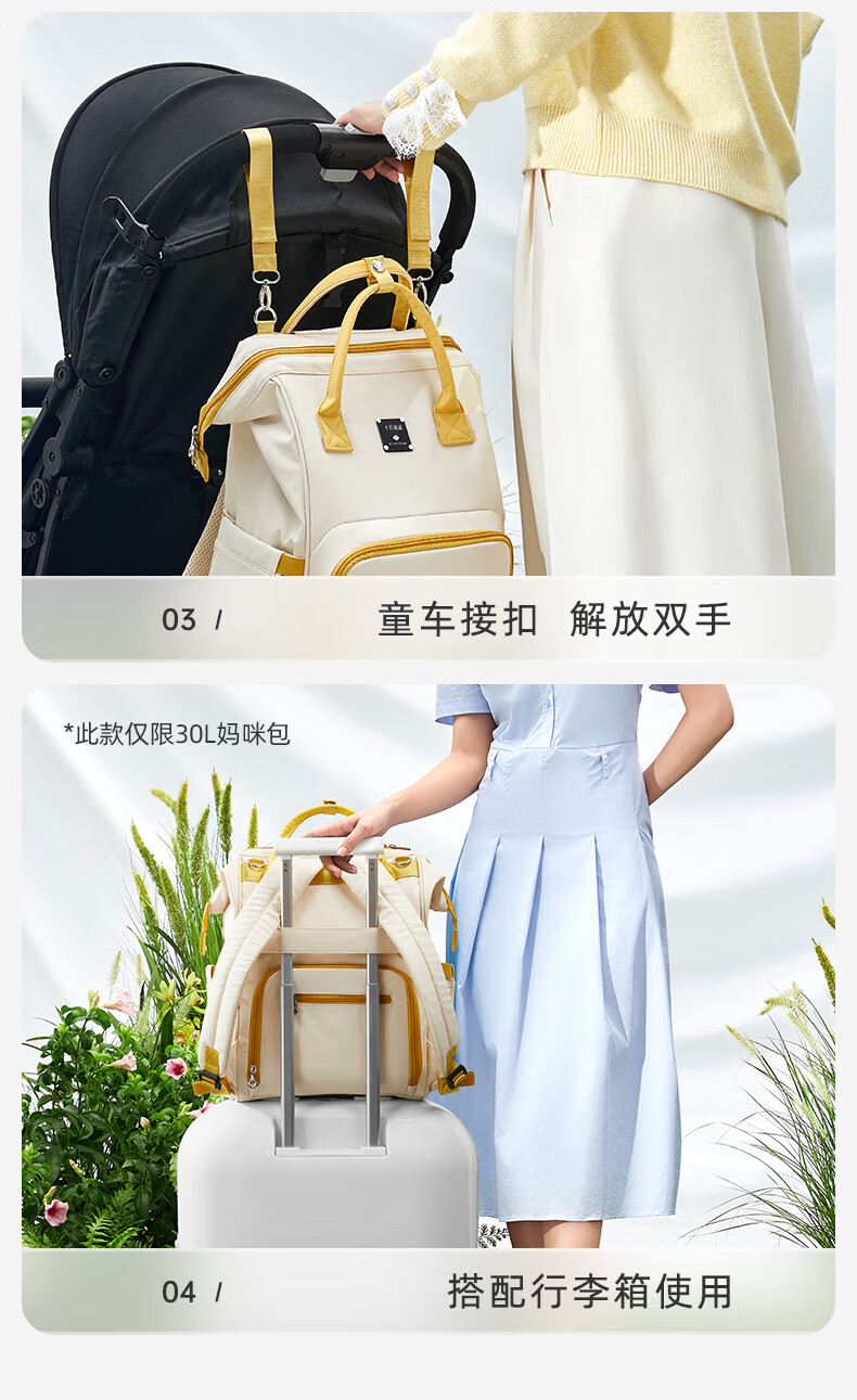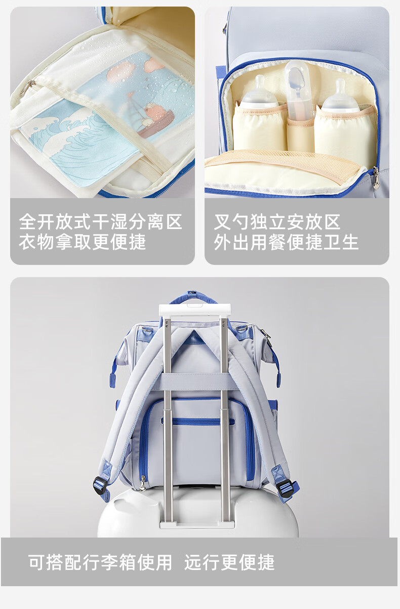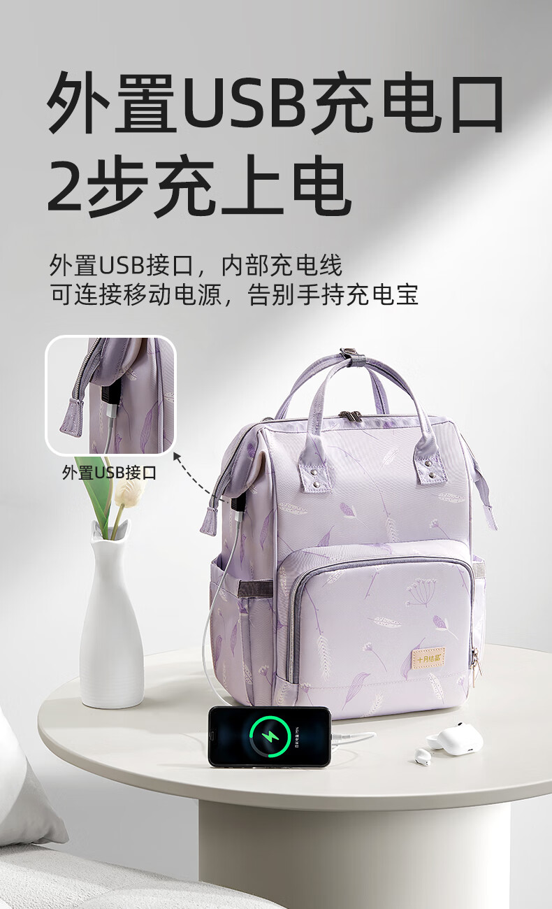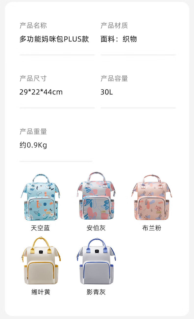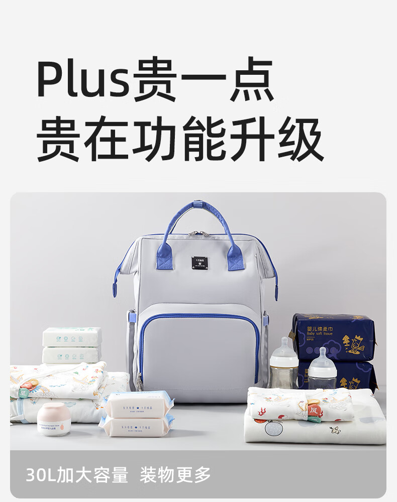 十月结晶妈咪包上班旅行双肩包多功能大容量母婴包时尚手提背包 影青灰30L