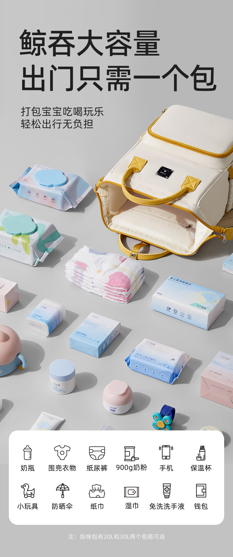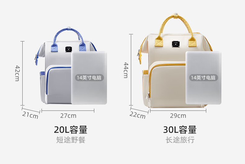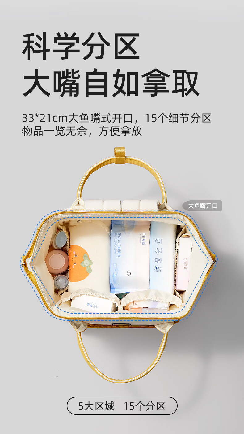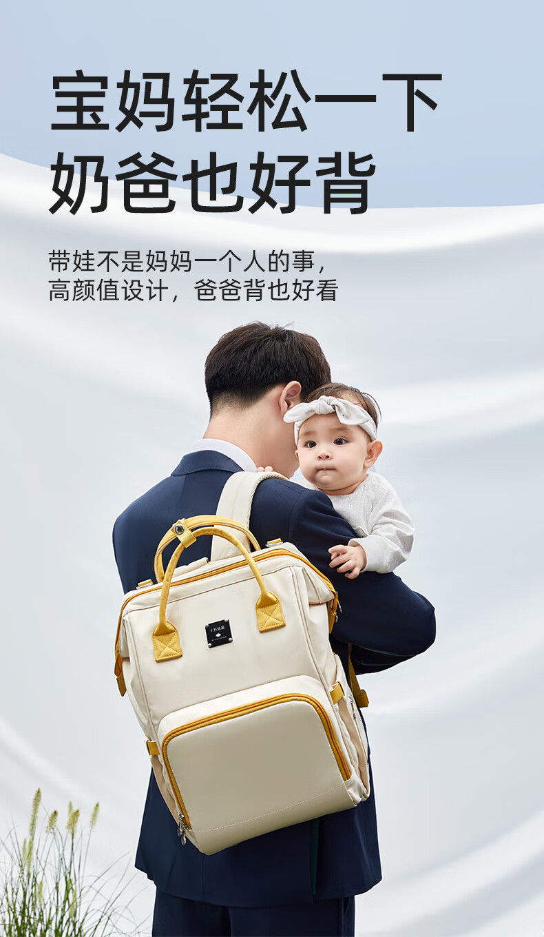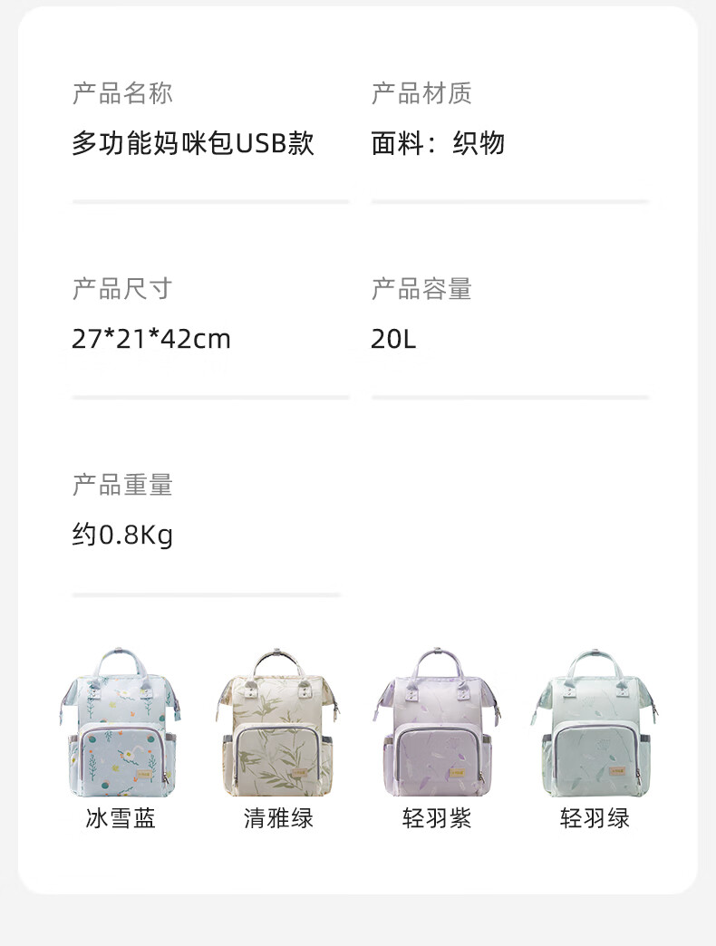 十月结晶妈咪包上班旅行双肩包多功能大容量母婴包时尚手提背包 影青灰30L