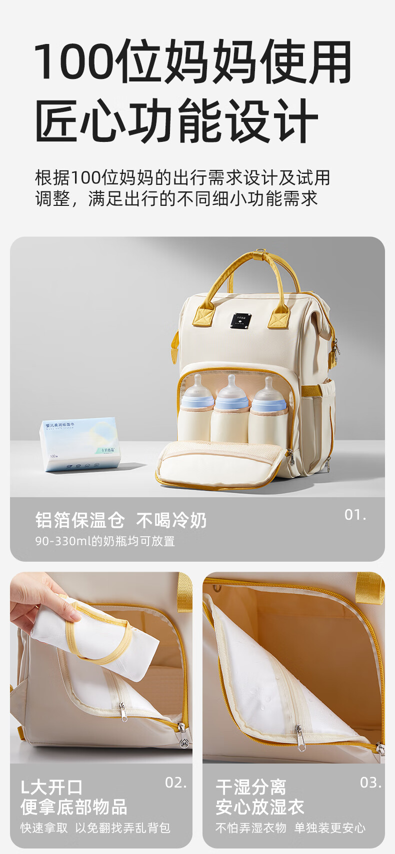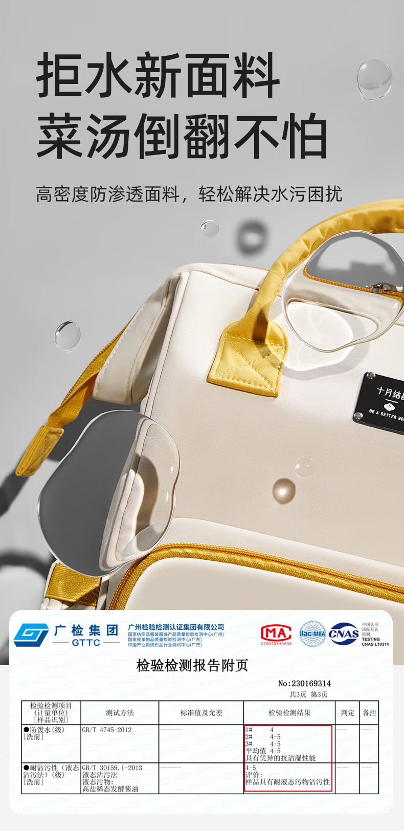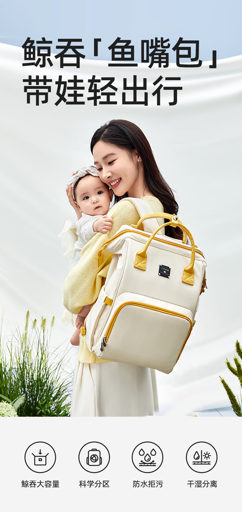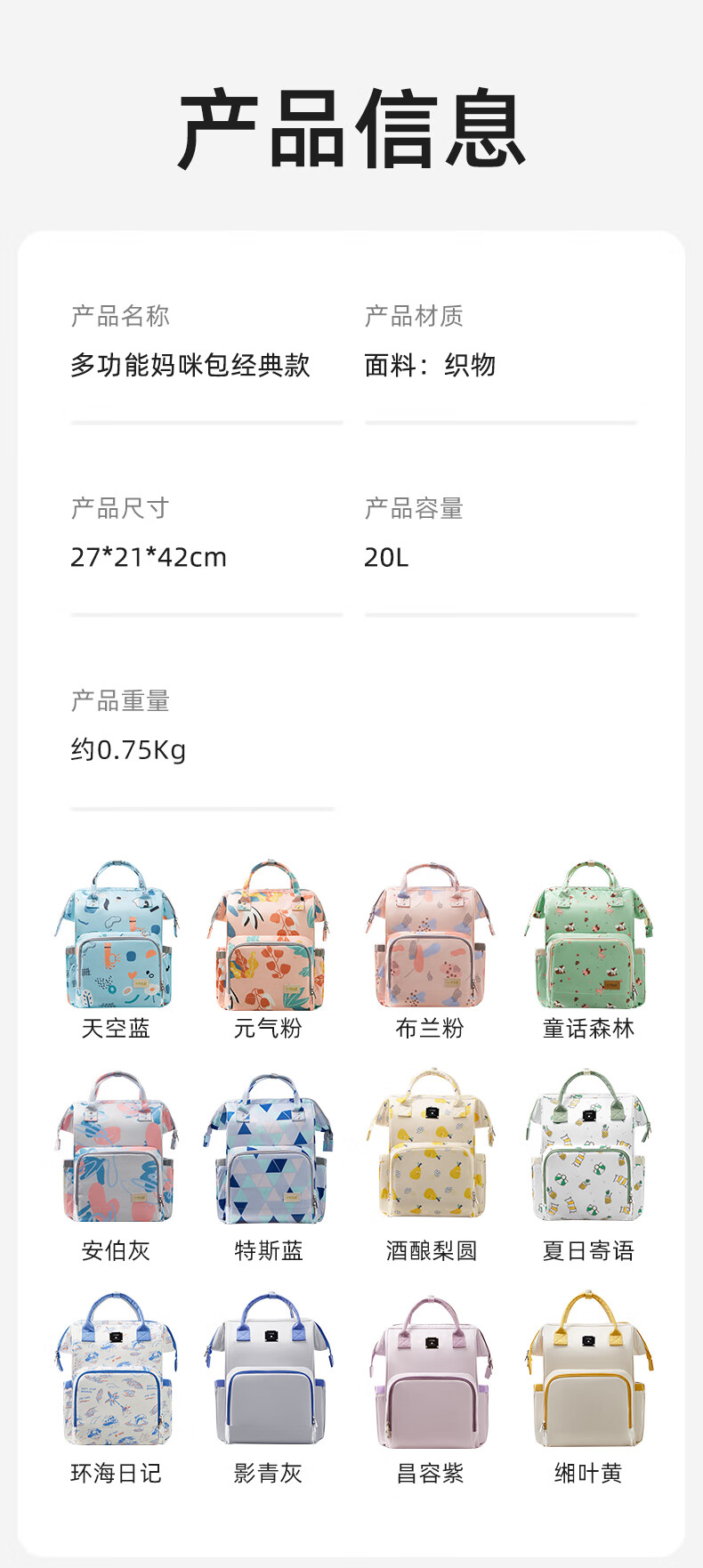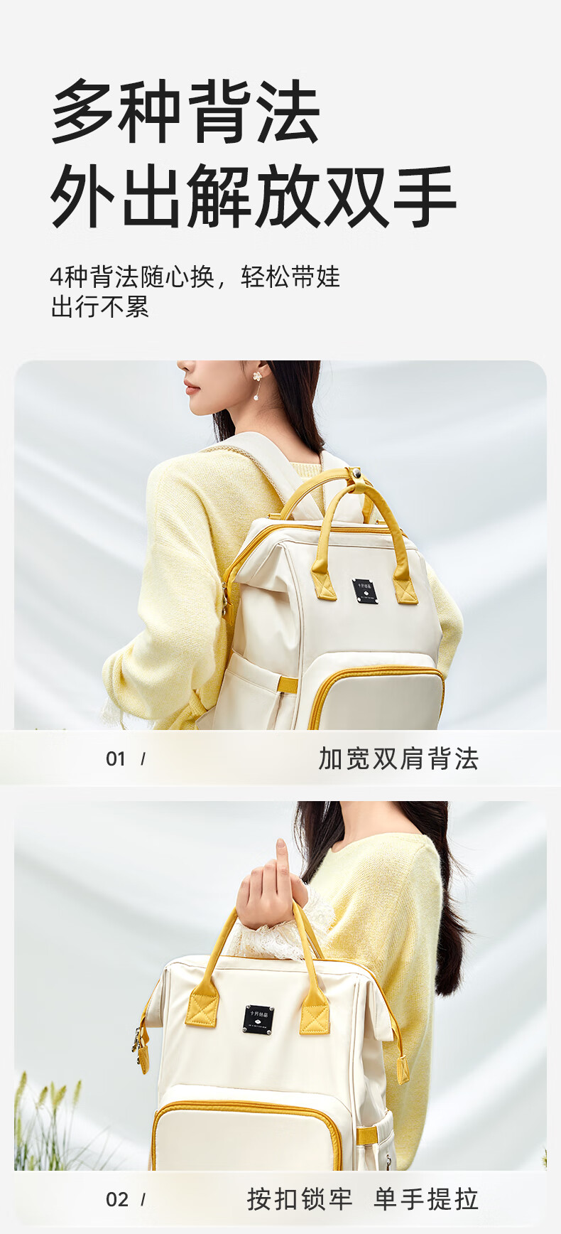 十月结晶妈咪包上班旅行双肩包多功能大容量母婴包时尚手提背包 影青灰30L