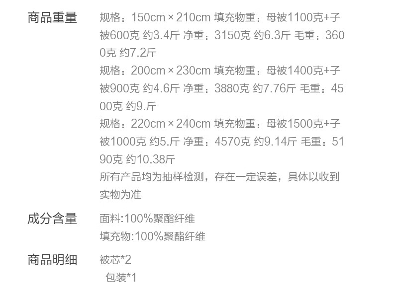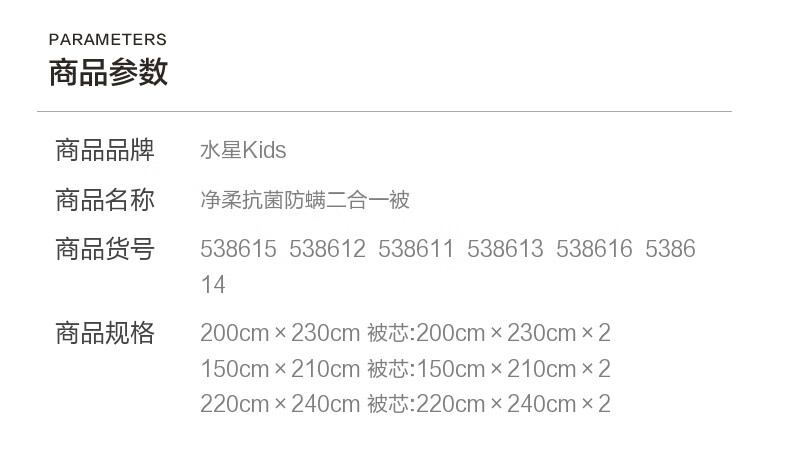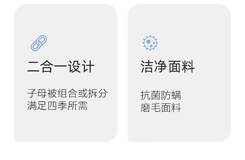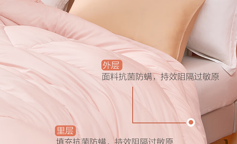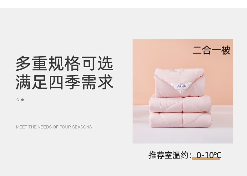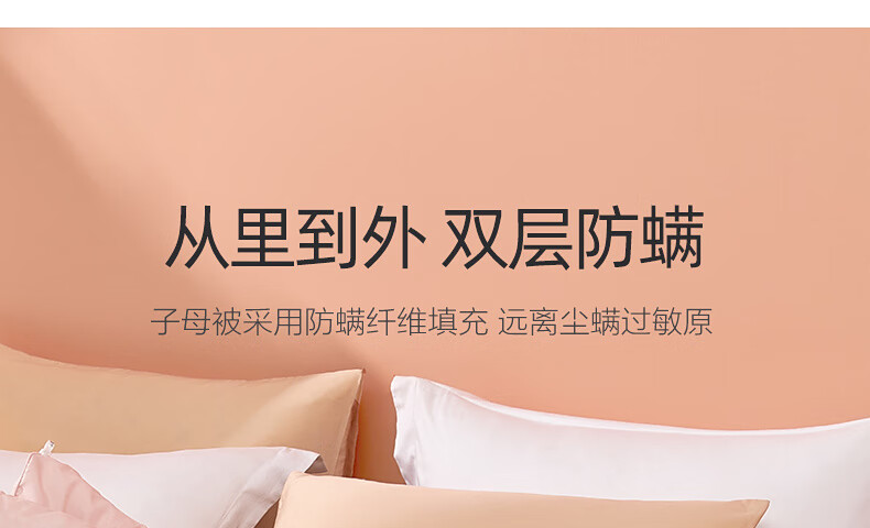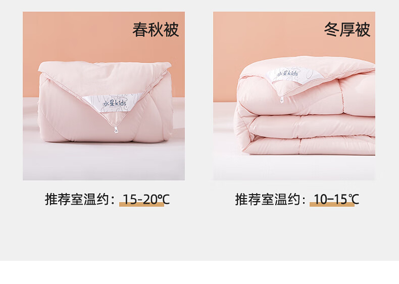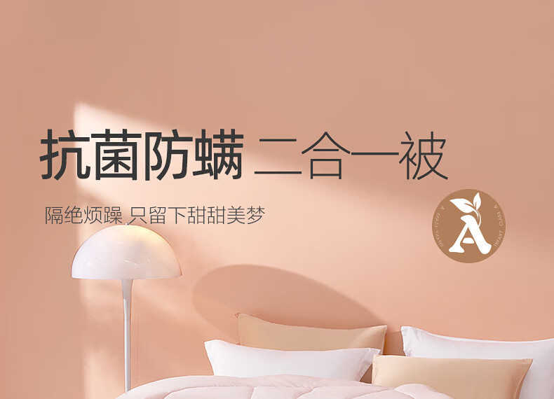 水星家纺 二合一被子被芯 婴幼儿A类标准 四季可用保暖子母被 净柔抗菌防螨二合一被(奶油粉) 200cm×230cm