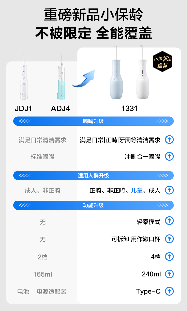 松下(Panasonic)冲牙器洗牙器牙线水牙线脉冲水流牙齿冲洗器入门新手款生日圣诞礼物送男女友JDJ1