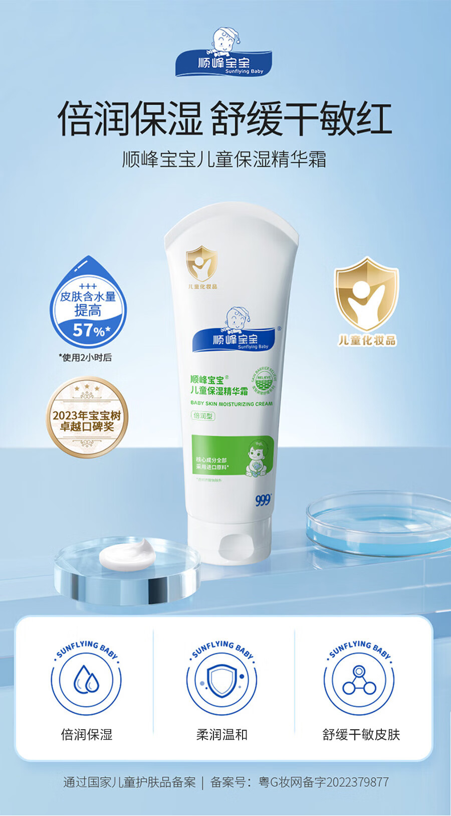 顺峰宝宝儿童保湿特润霜225g婴儿面霜新生儿保湿霜面霜舒缓保湿润肤特润型 特润霜225g