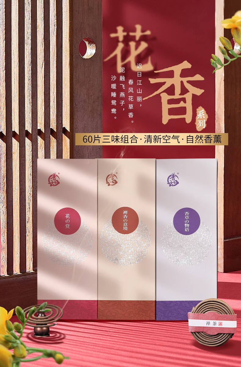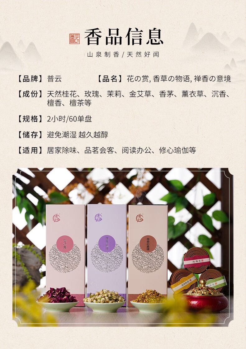 普云 檀香沉香盘香艾草香花香家用室内熏香除臭净味香薰2小时60单盘 养生【艾草+玉檀+沉香】 60盘 2小时 2小时