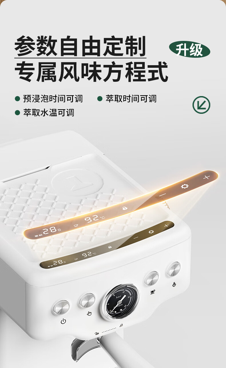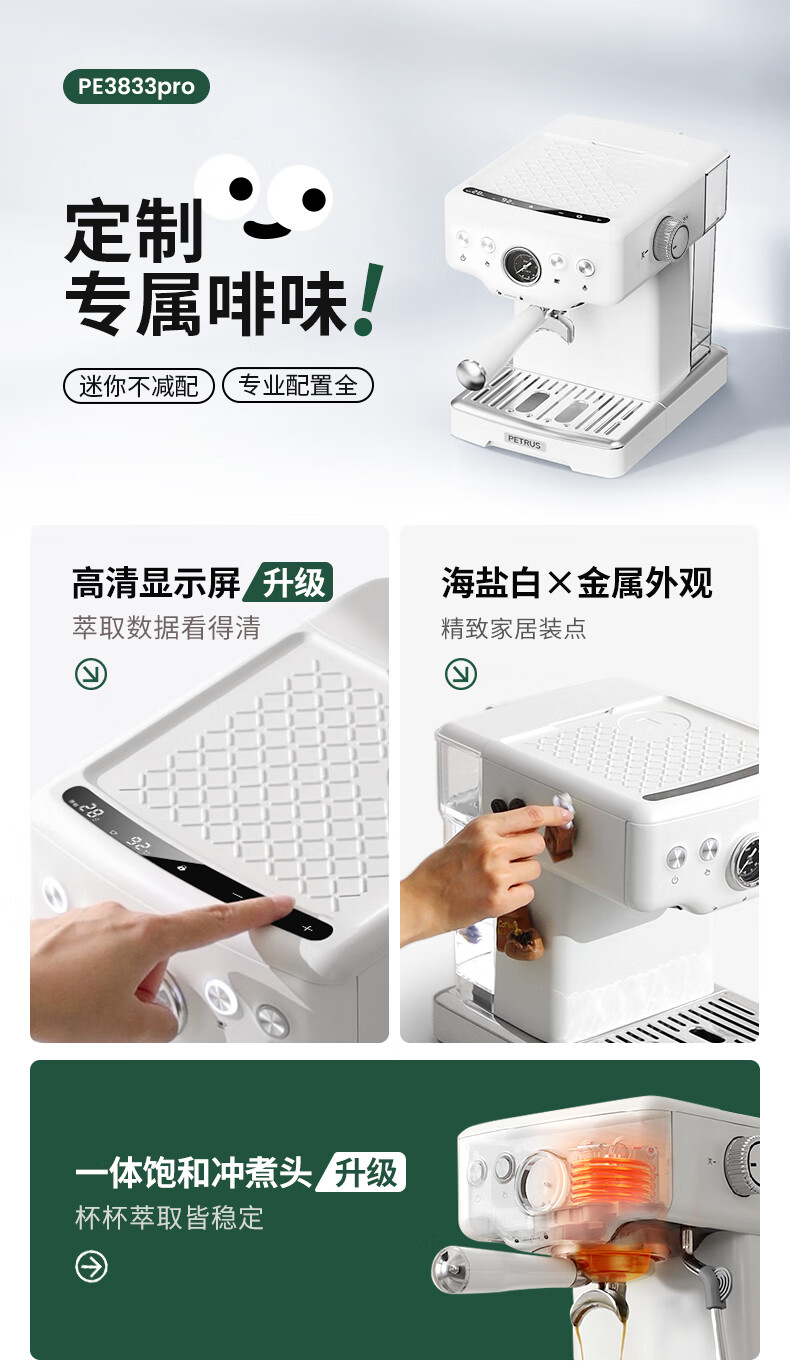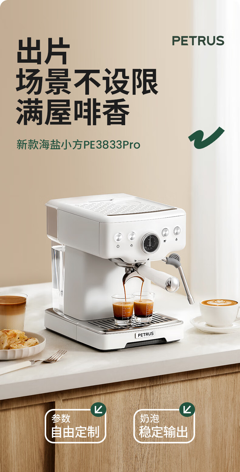 柏翠意式咖啡机浓缩家用小型办公室58mm全半自动蒸汽打奶泡 海盐小方 PE3833Pro 节日礼物 海盐小方升级3833Pro( 高清屏幕参数自由 )