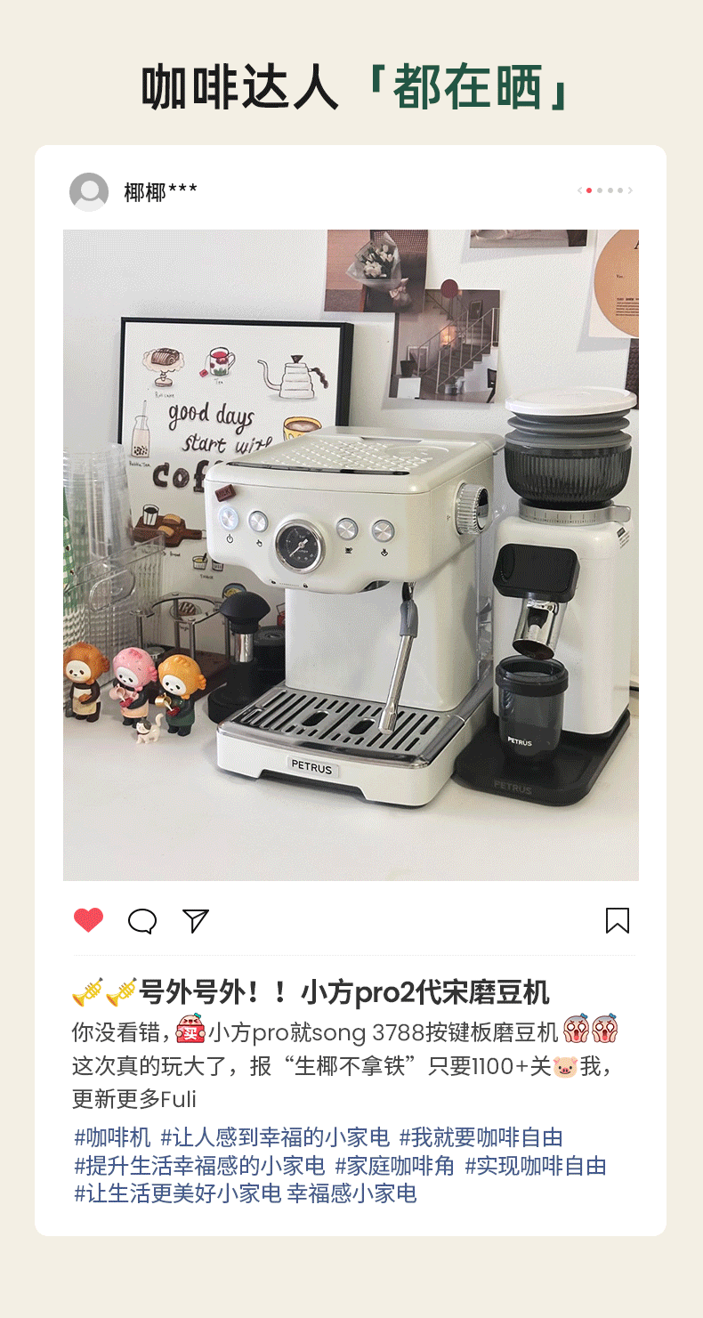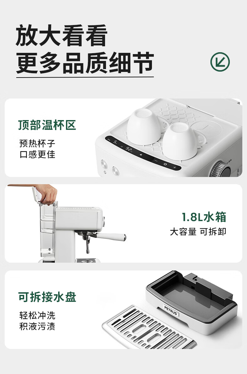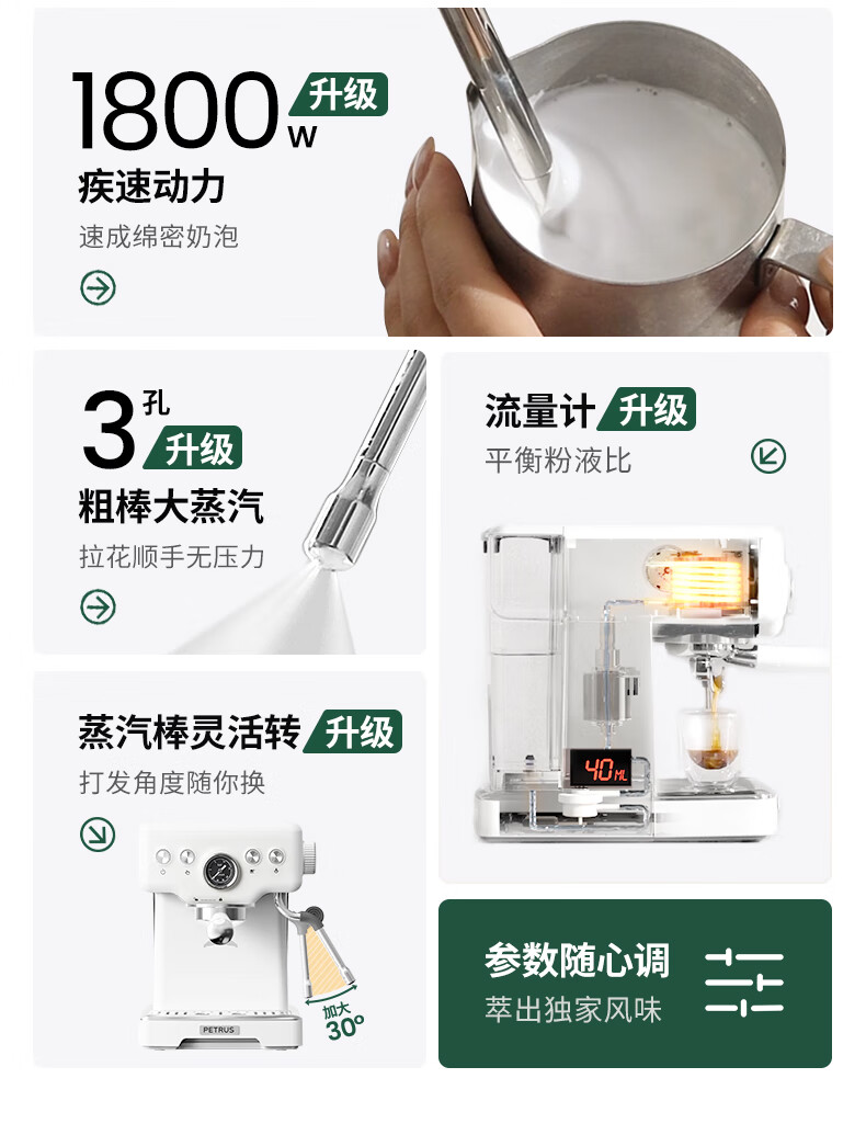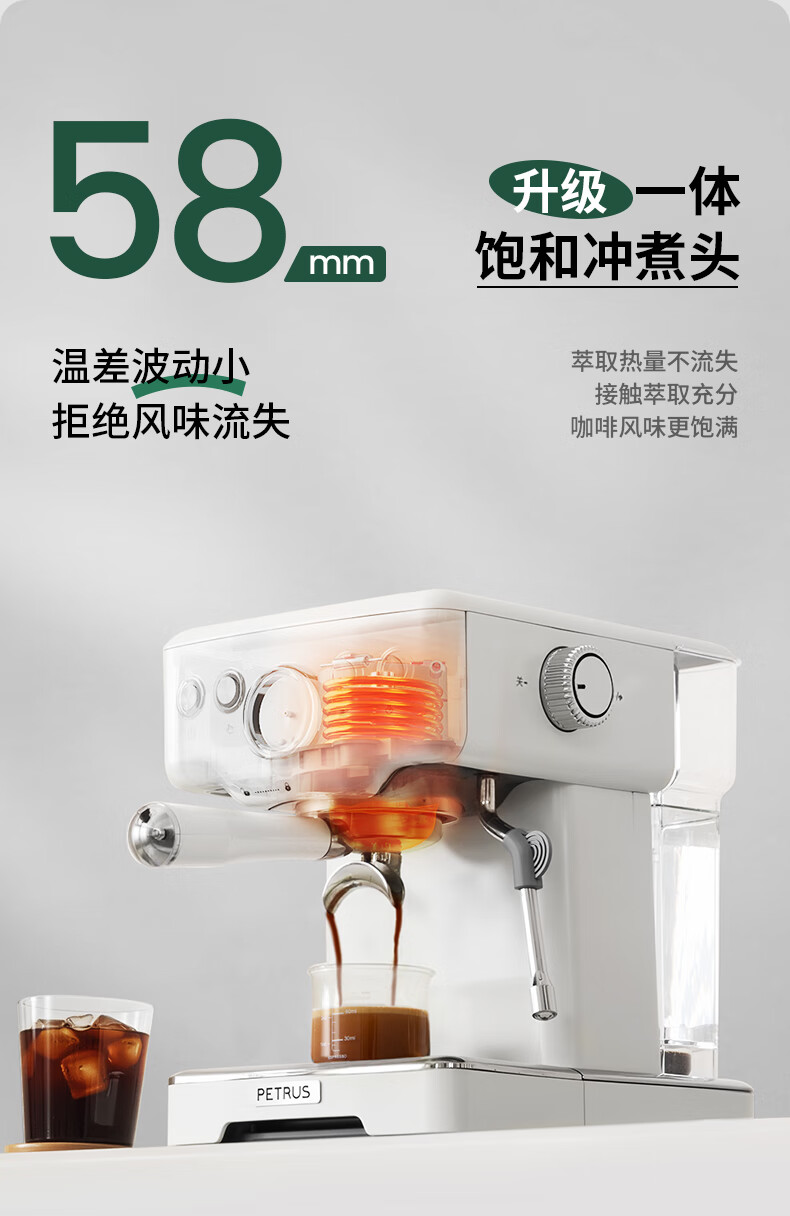 柏翠意式咖啡机浓缩家用小型办公室58mm全半自动蒸汽打奶泡 海盐小方 PE3833Pro 节日礼物 海盐小方升级3833Pro( 高清屏幕参数自由 )