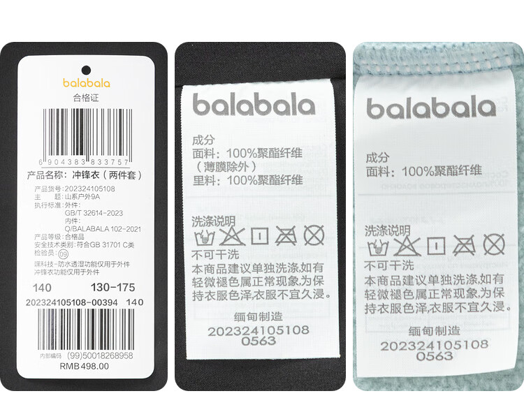 巴拉巴拉冲锋衣童装款男童两件套外套春秋装24105108