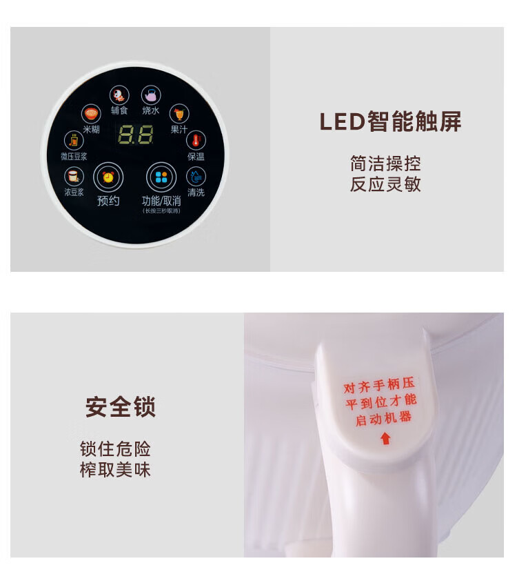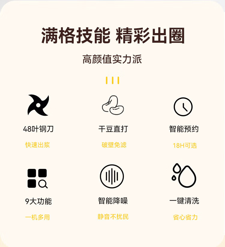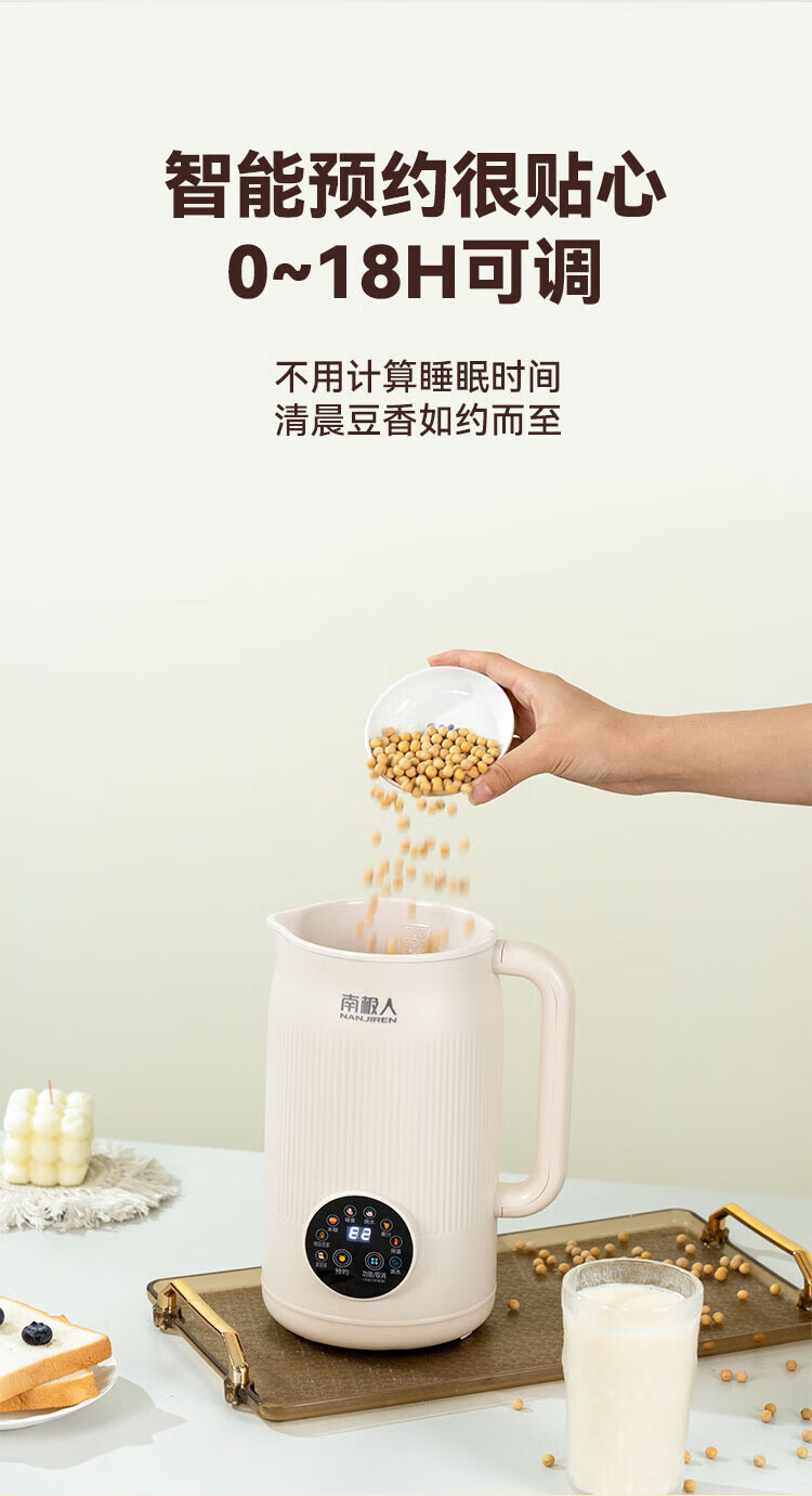 南极人豆浆机破壁家用全自动大容量免煮静低音智能料理榨汁家用米糊机不锈钢辅食机五谷杂粮榨汁机搅拌机 米色黑屏款豆浆机【304材质6叶刀】 0.6L