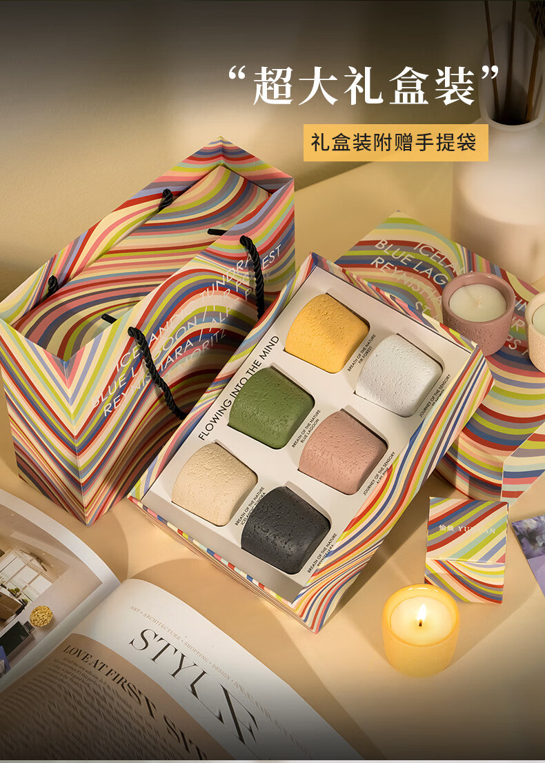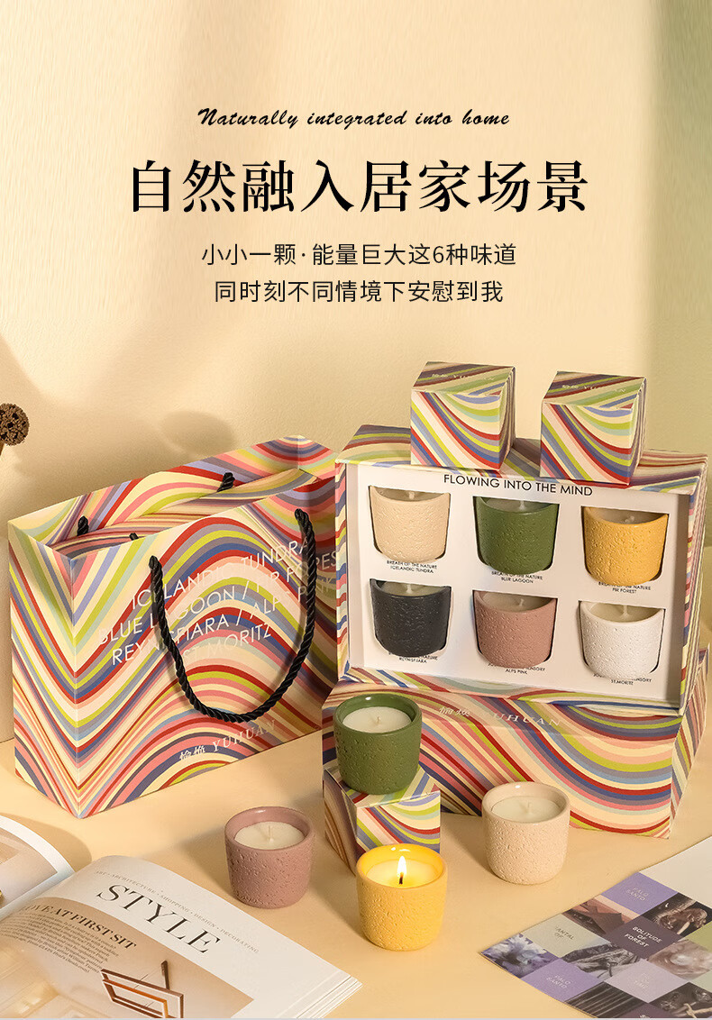 陶瓷杯香薰蜡烛生日礼物室内冰岛原苔香氛蜡烛礼盒蜡烛摆件 礼盒套装(6个色)