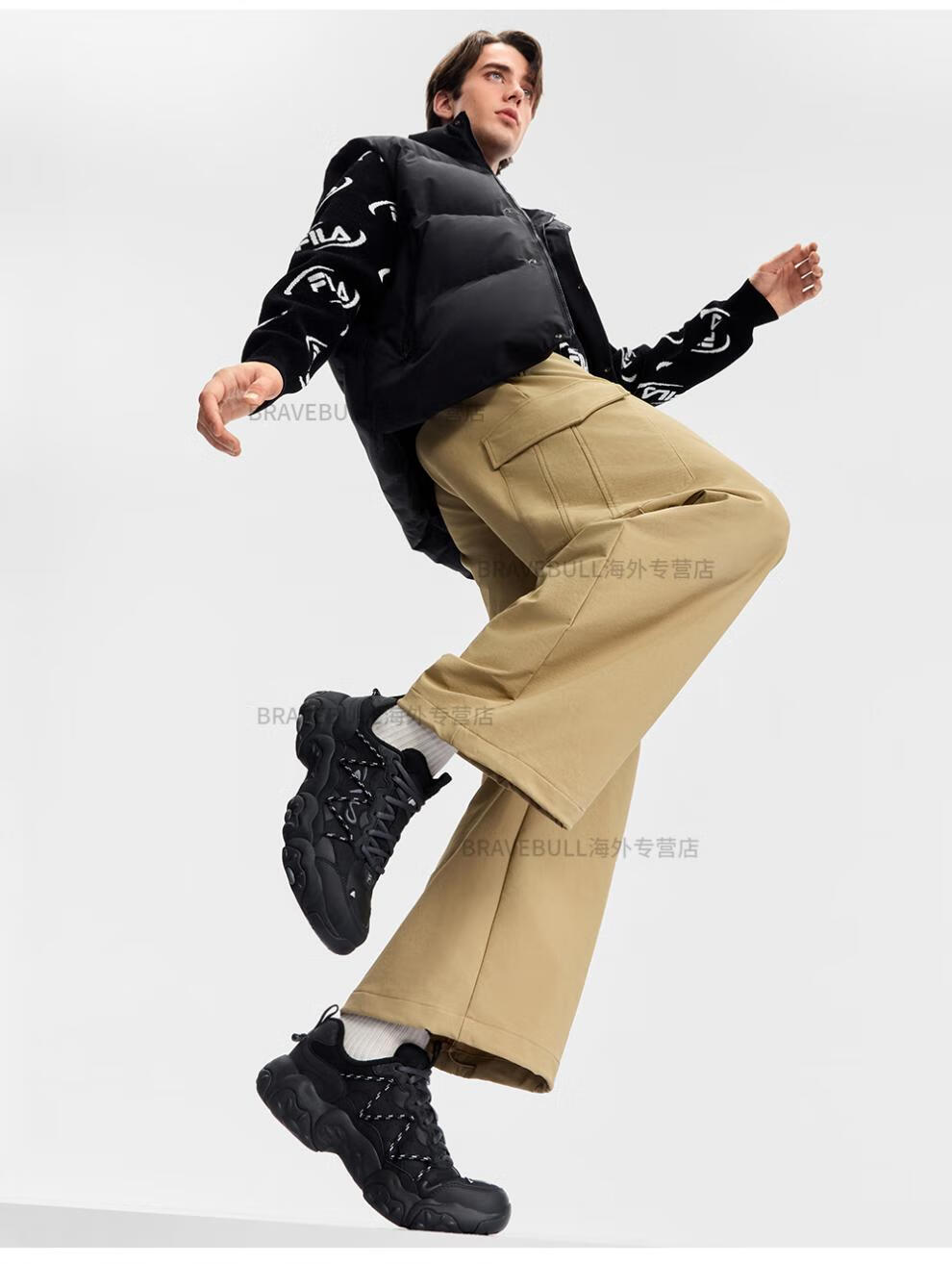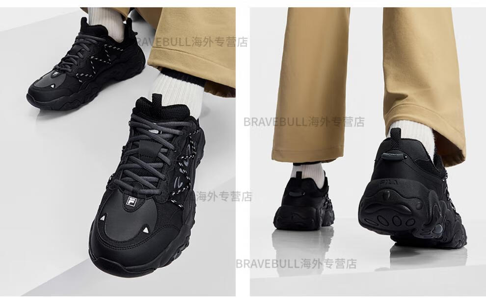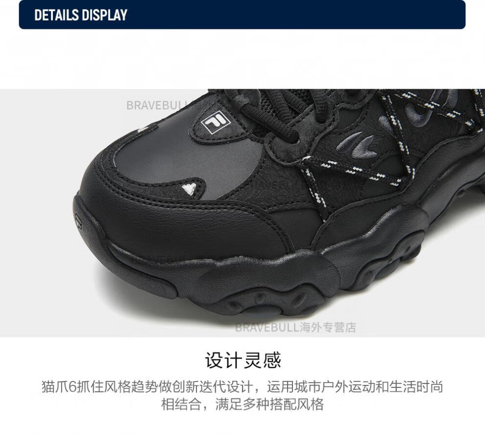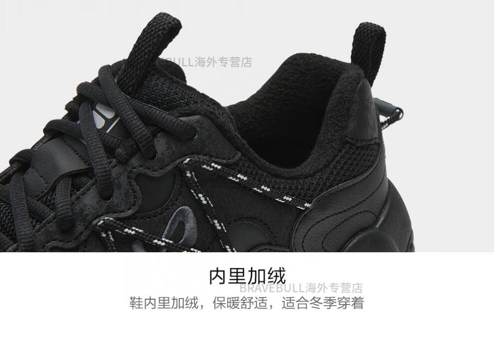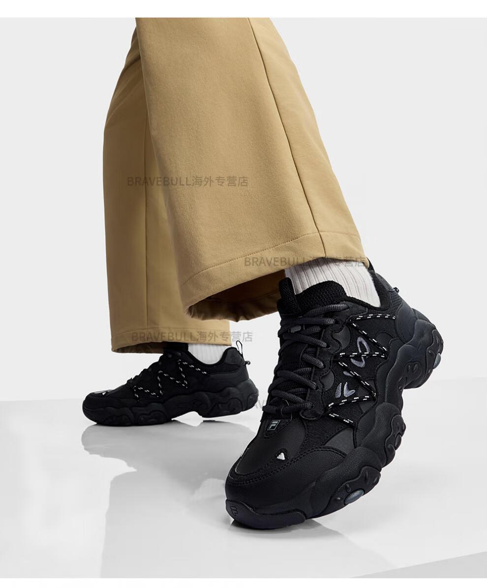 斐乐(FILA)男鞋老爹鞋覆古运动鞋2025冬季新款鞋子加绒猫爪6代跑步鞋 黑-BD 39