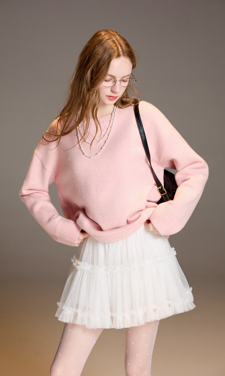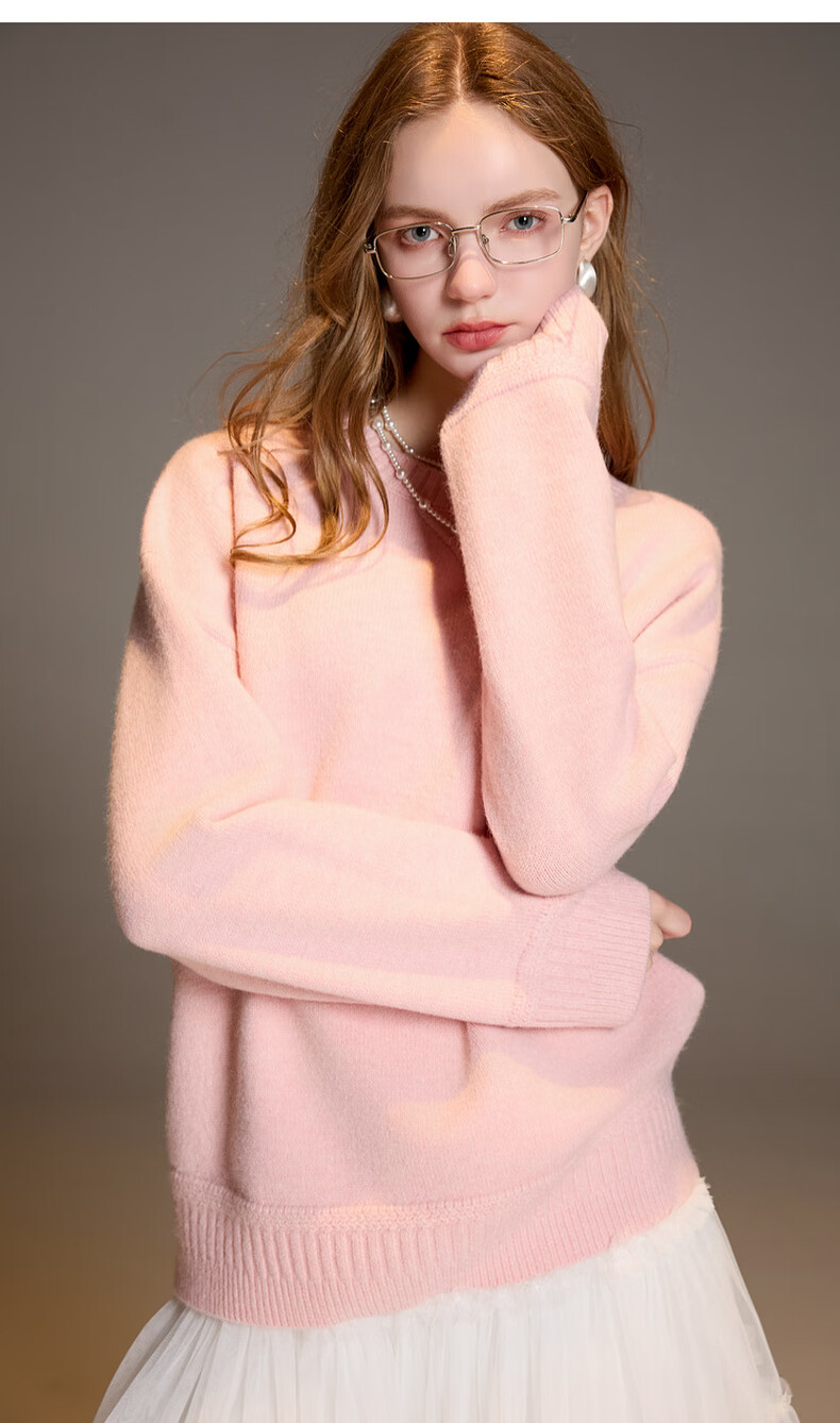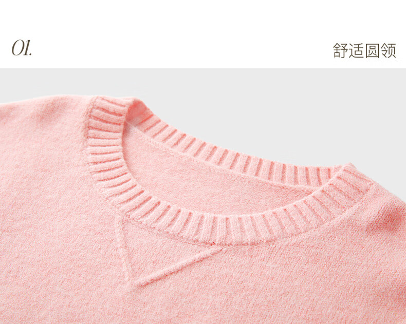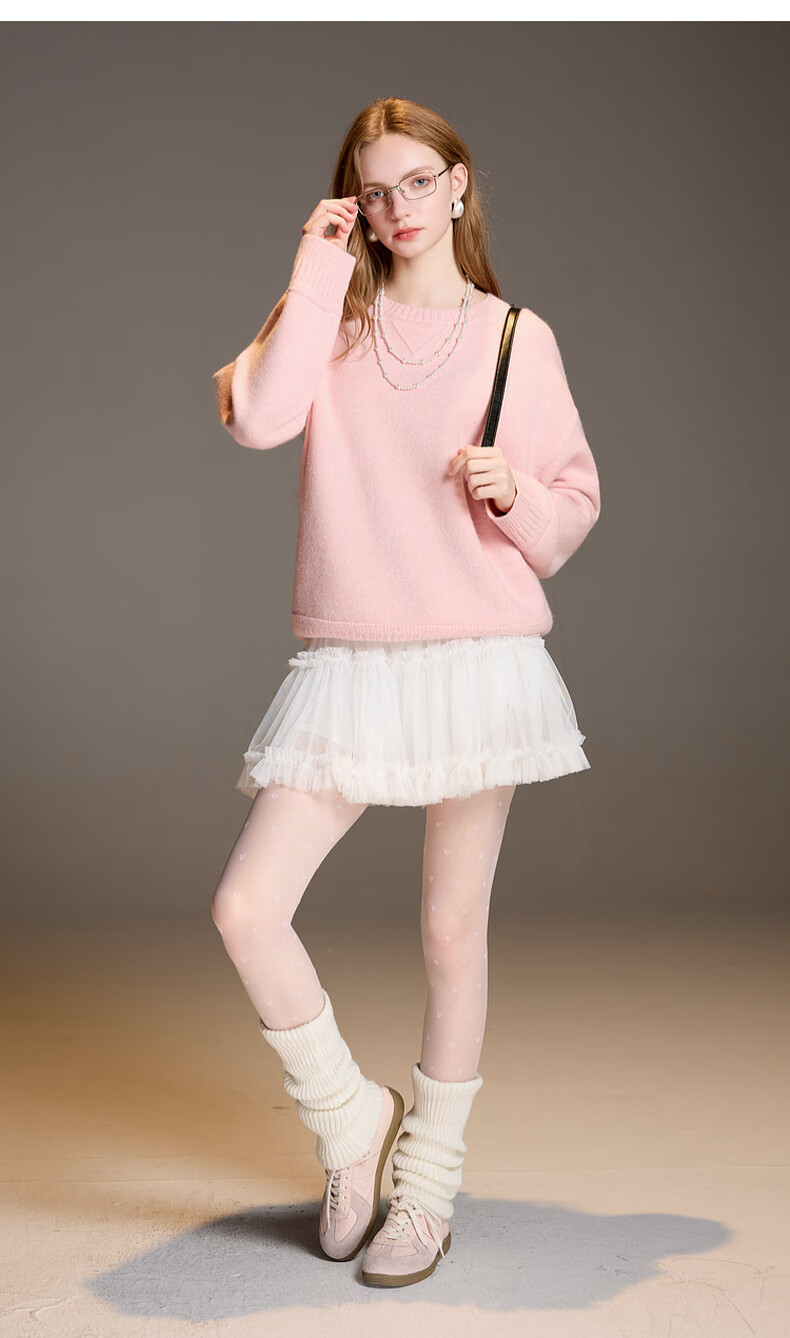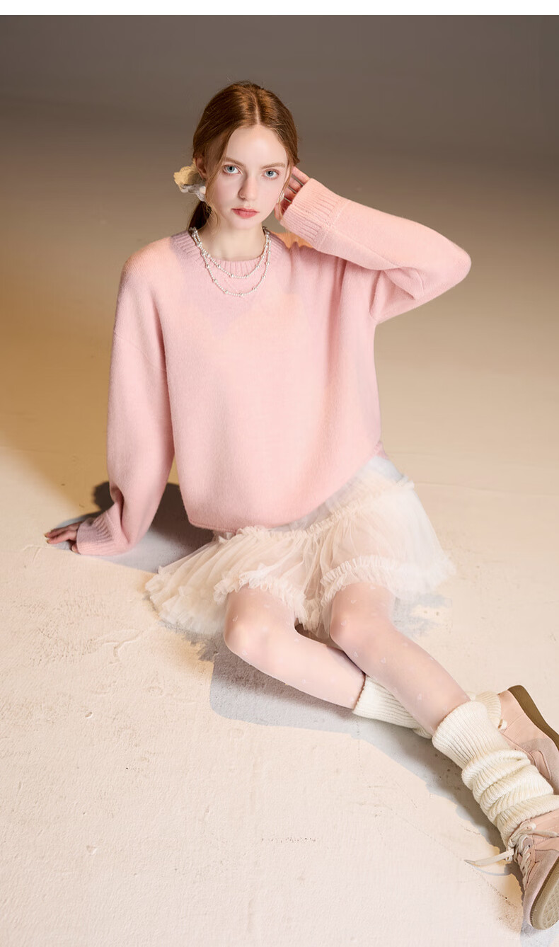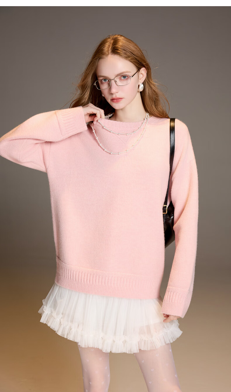三彩2025冬季新款宽松圆领针织衫落肩袖套头衫百搭简约纯色M