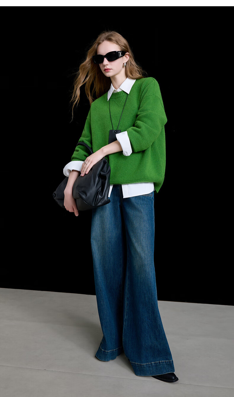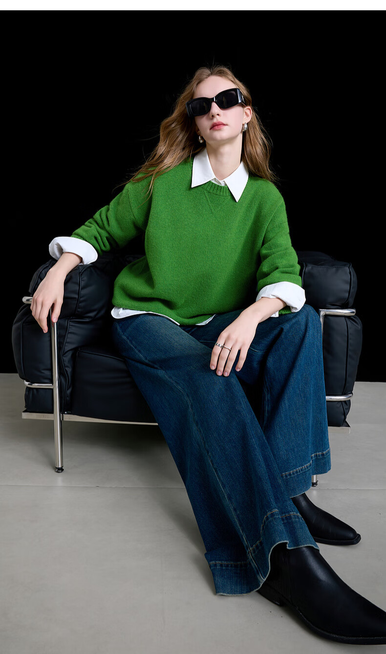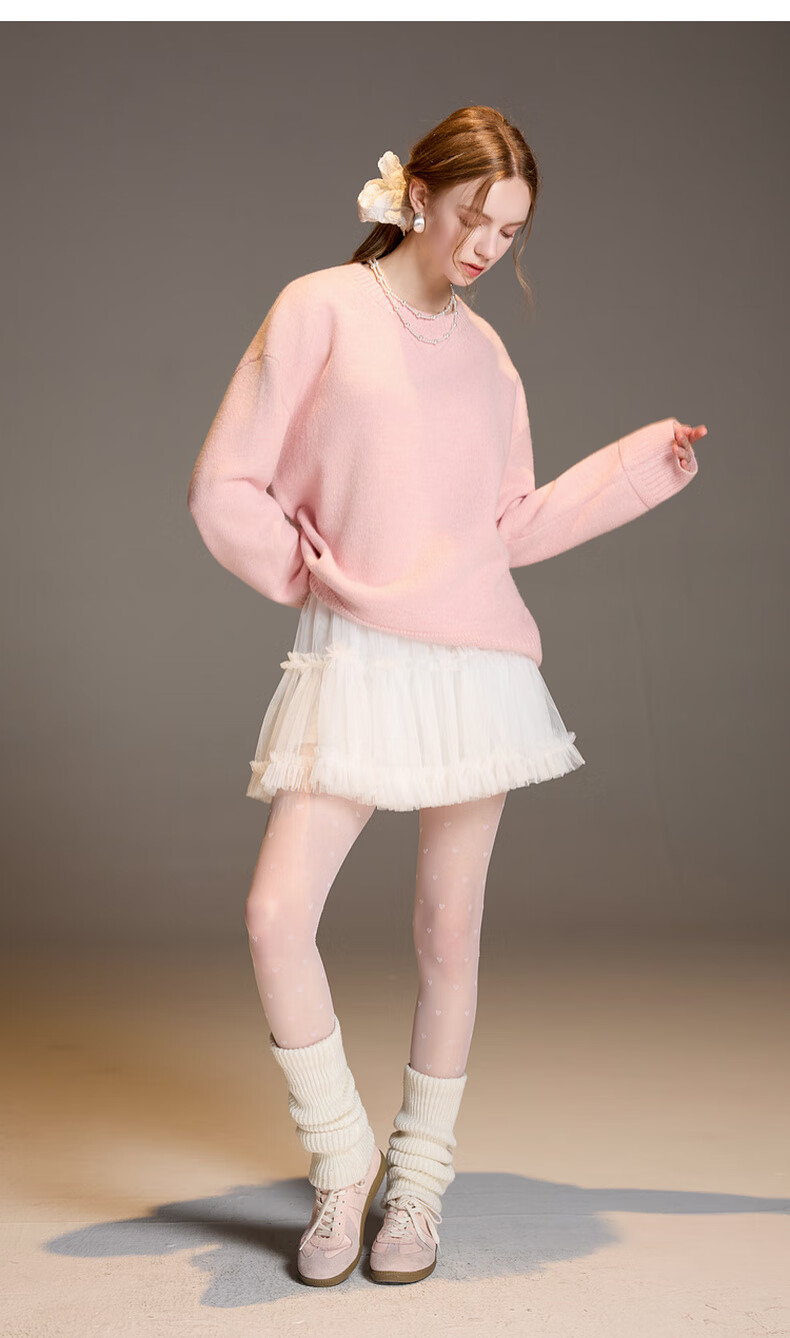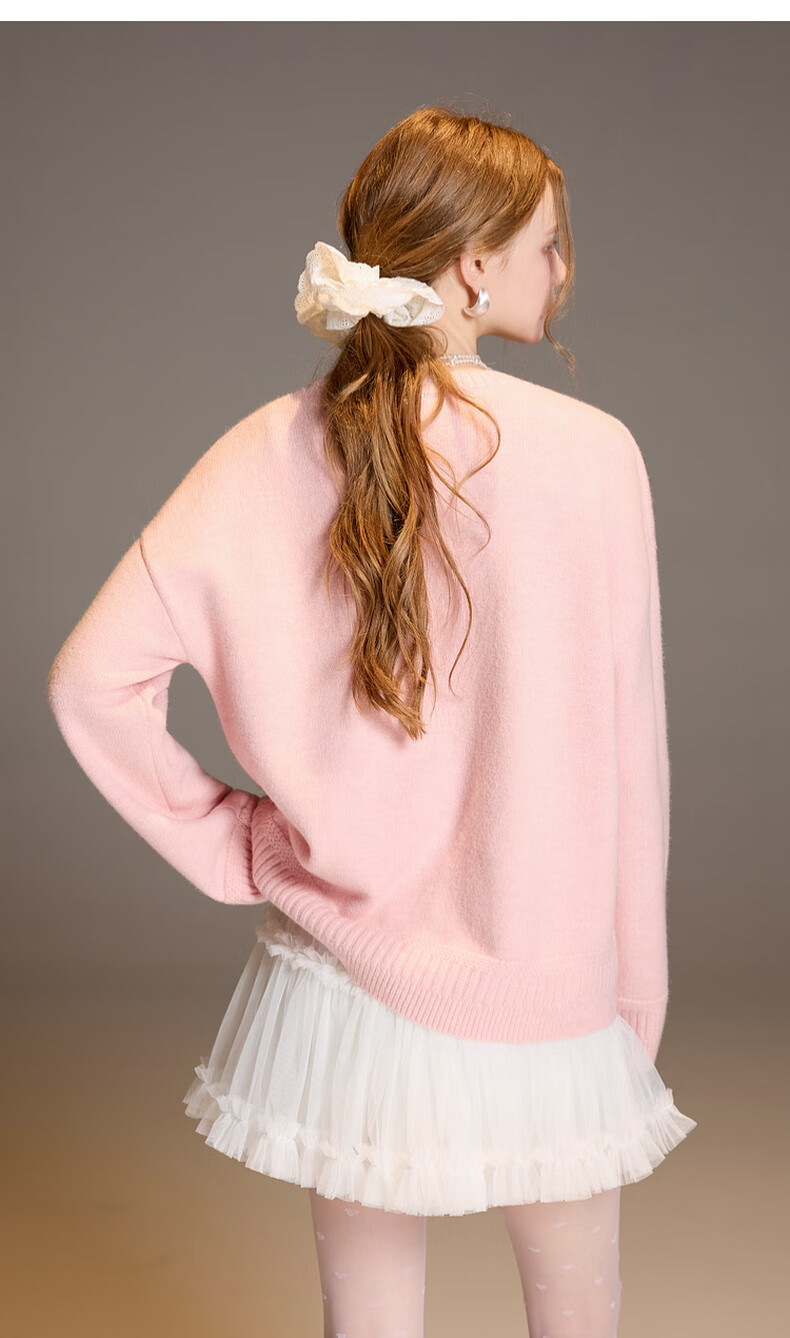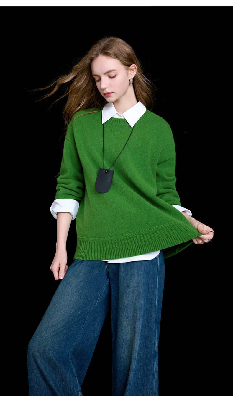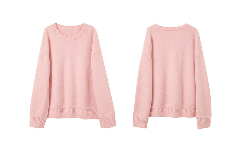 三彩2025冬季新款宽松圆领针织衫落肩袖套头衫百搭简约纯色M