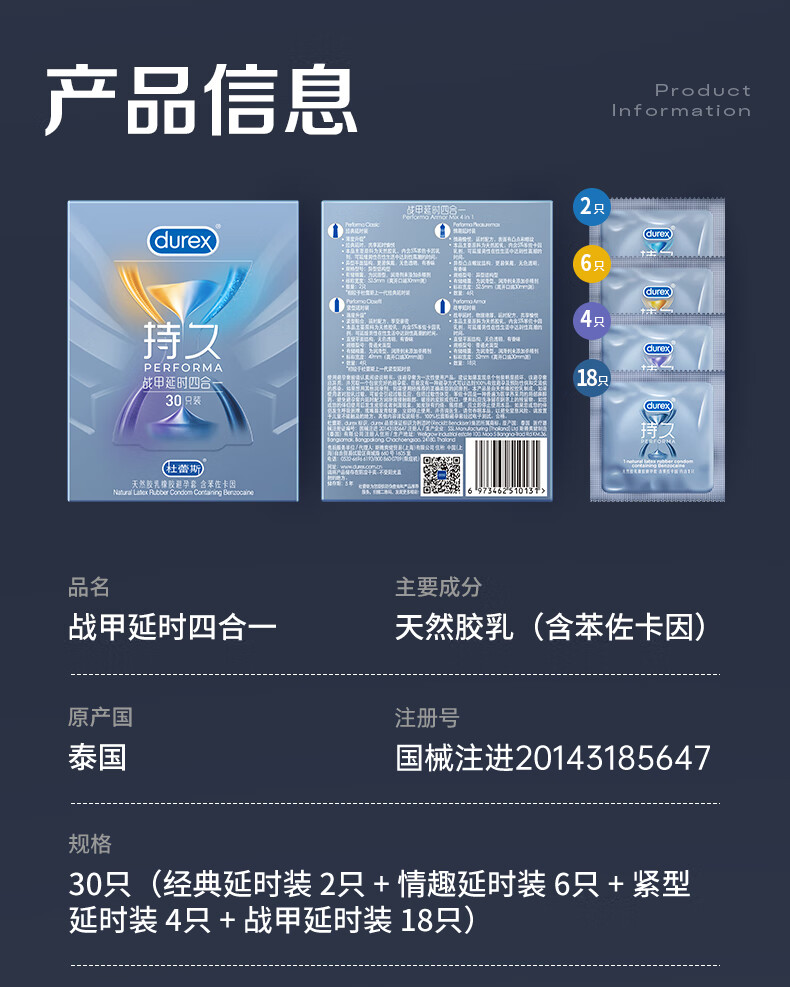 皇都慈宁宫(HUANG DU CI NING GONG)durex杜蕾斯持久延时三合一小号 杜蕾斯套安全0.01倍润水温泉热感 【倍润001共6只】001倍滑6