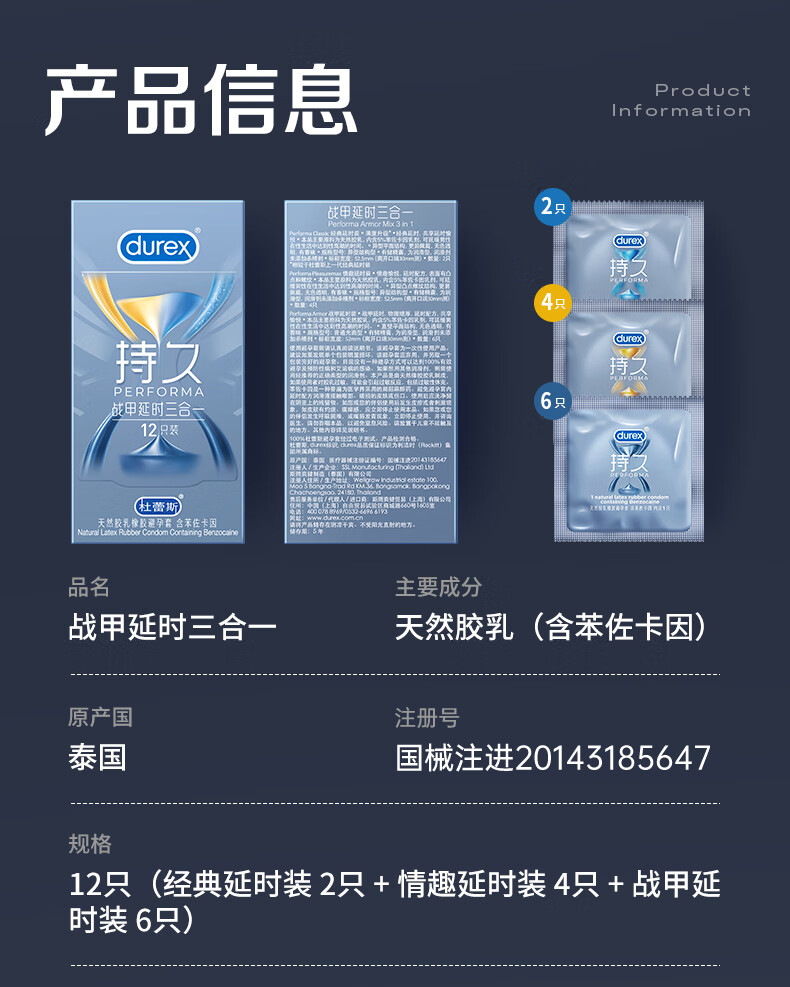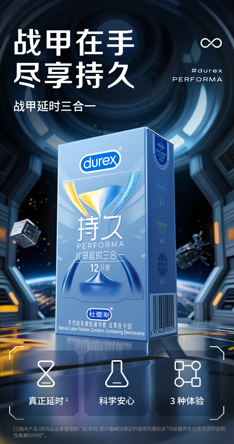 杜蕾斯(durex)持久避孕套延时久久套超薄苯佐卡因安全套男用套成人计生情趣用品 【三种持久畅享】延时三合一16只