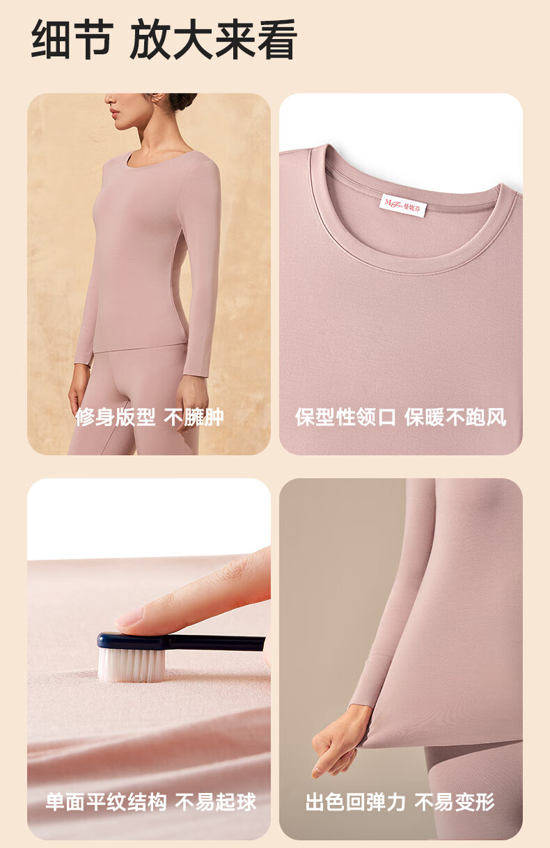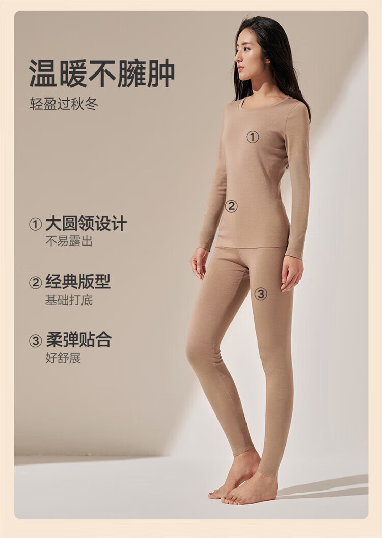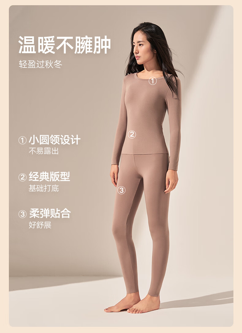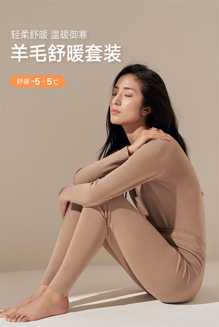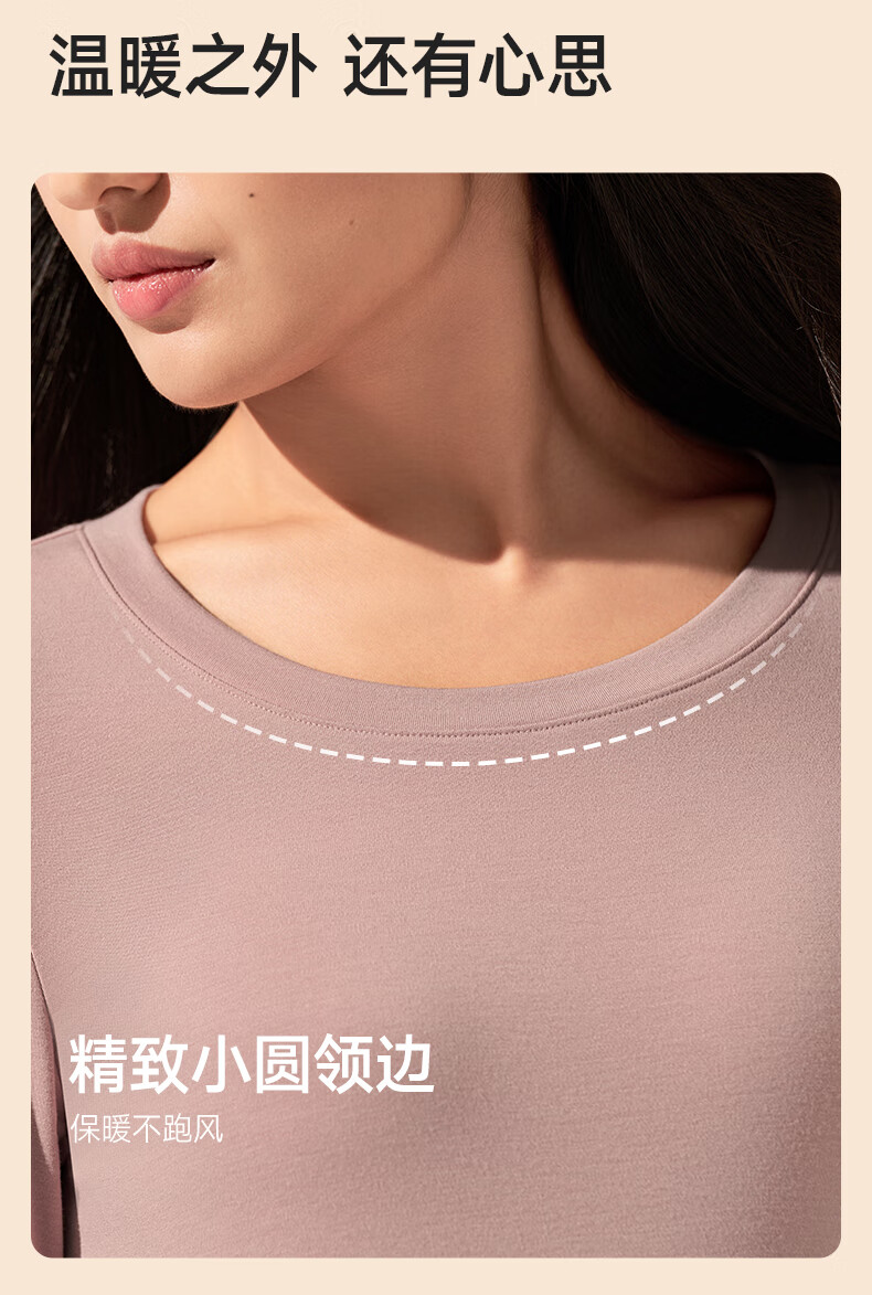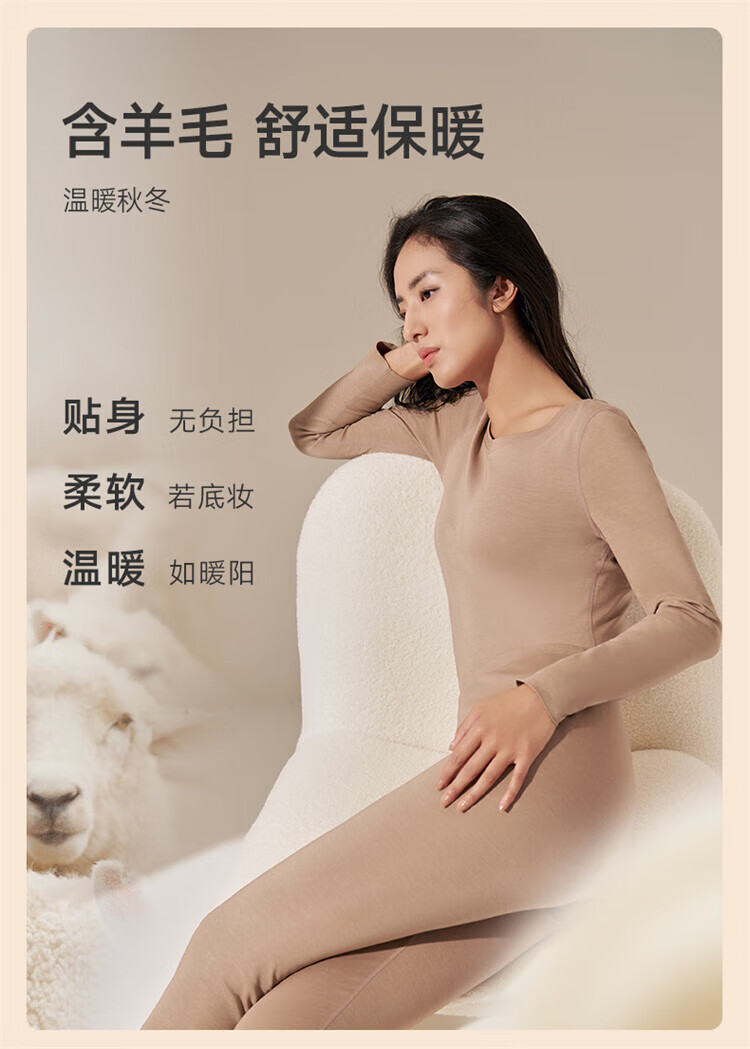 曼妮芬【舒暖】曼妮芬抗菌保暖内衣男士套装女含羊毛本命年红情侣秋衣裤 咖色【女款-锁边圆领】 (不含羊毛) M 女士160 套装