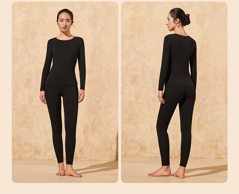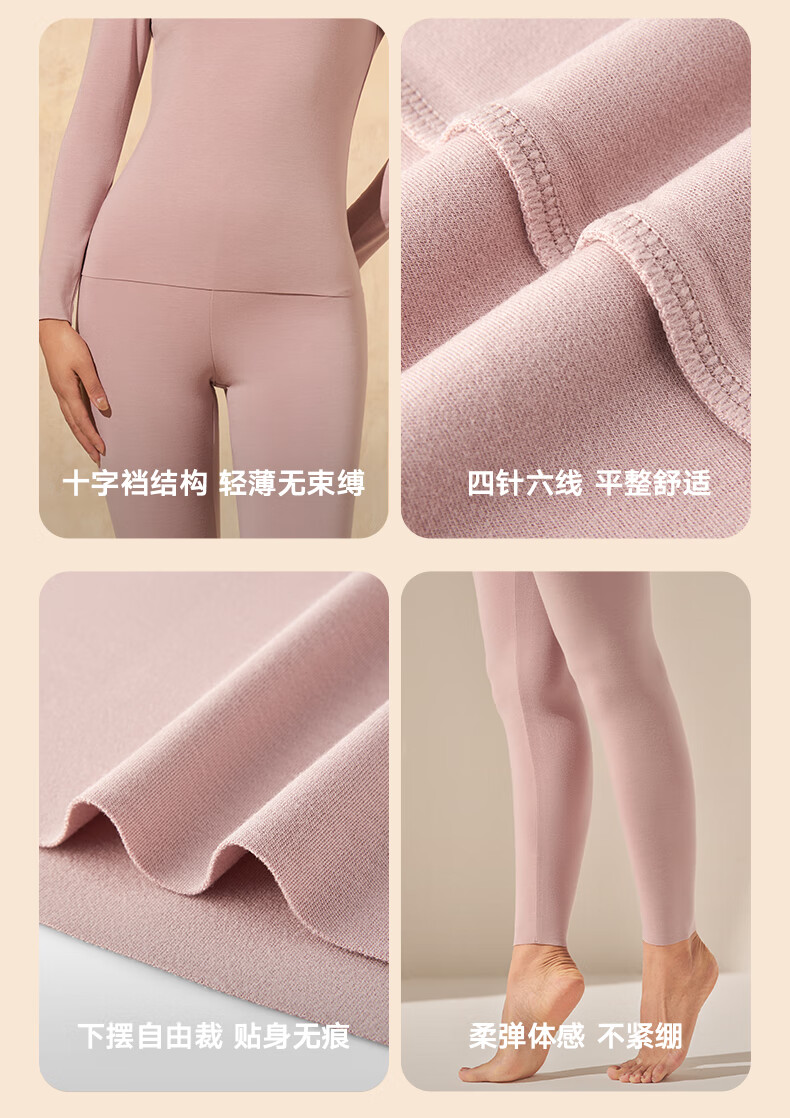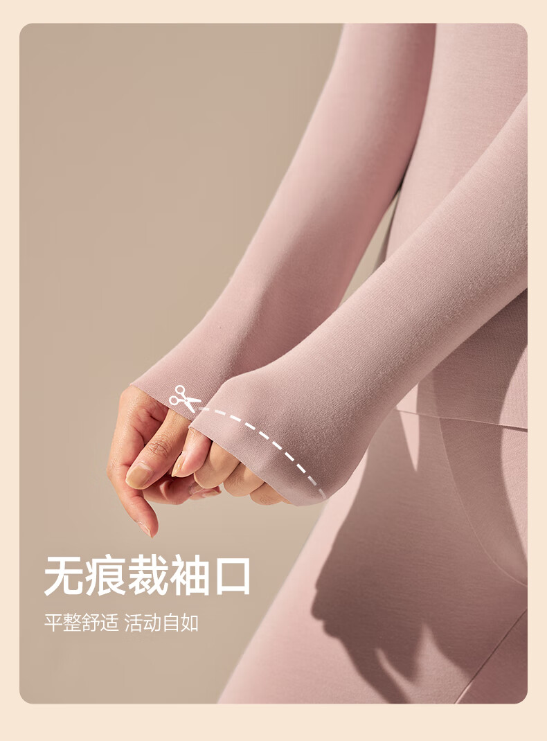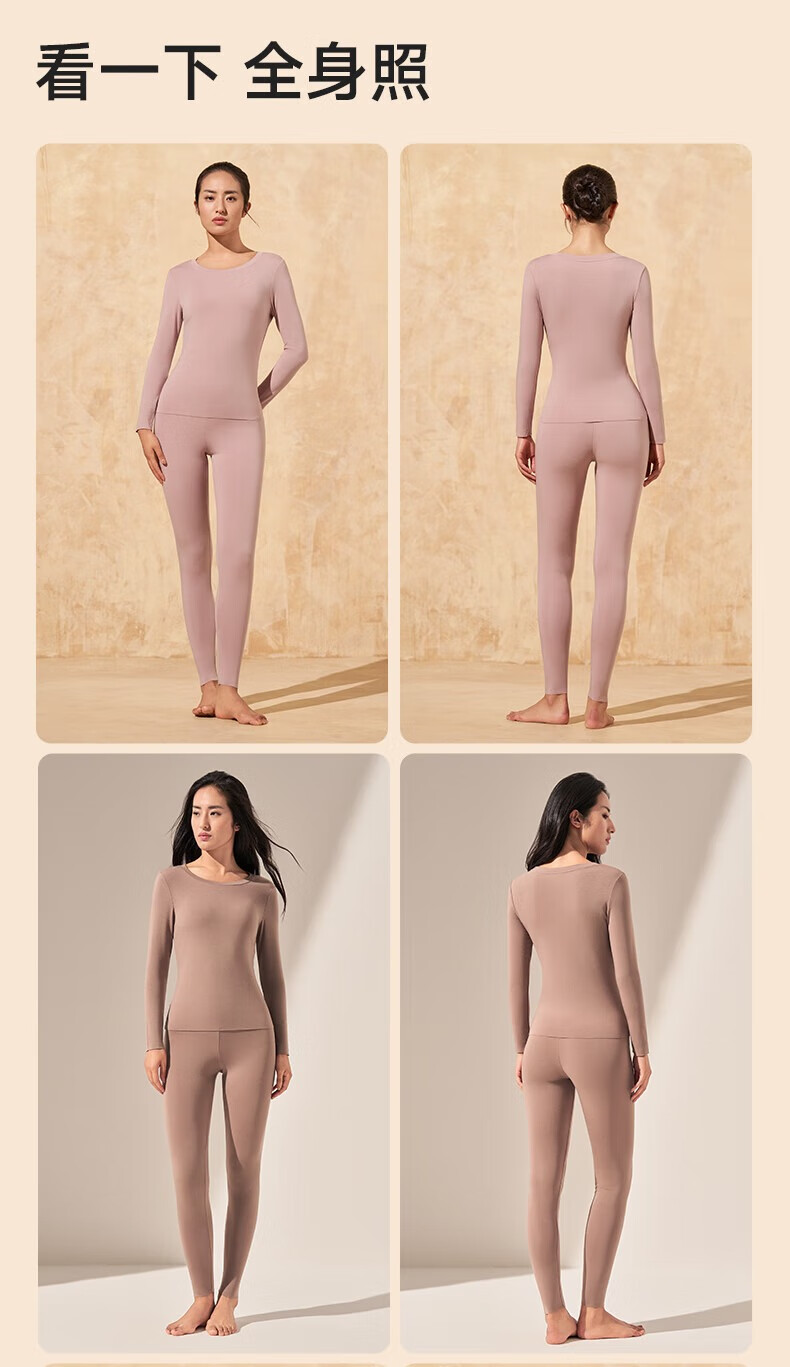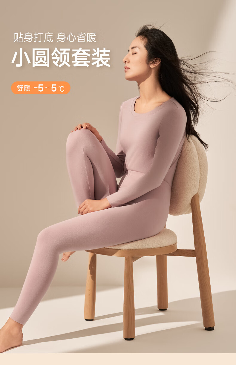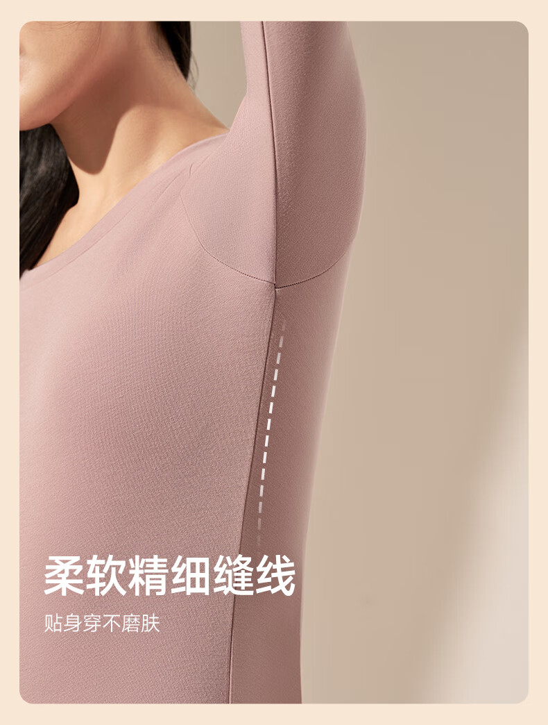 曼妮芬【舒暖】曼妮芬抗菌保暖内衣男士套装女含羊毛本命年红情侣秋衣裤 咖色【女款-锁边圆领】 (不含羊毛) M 女士160 套装