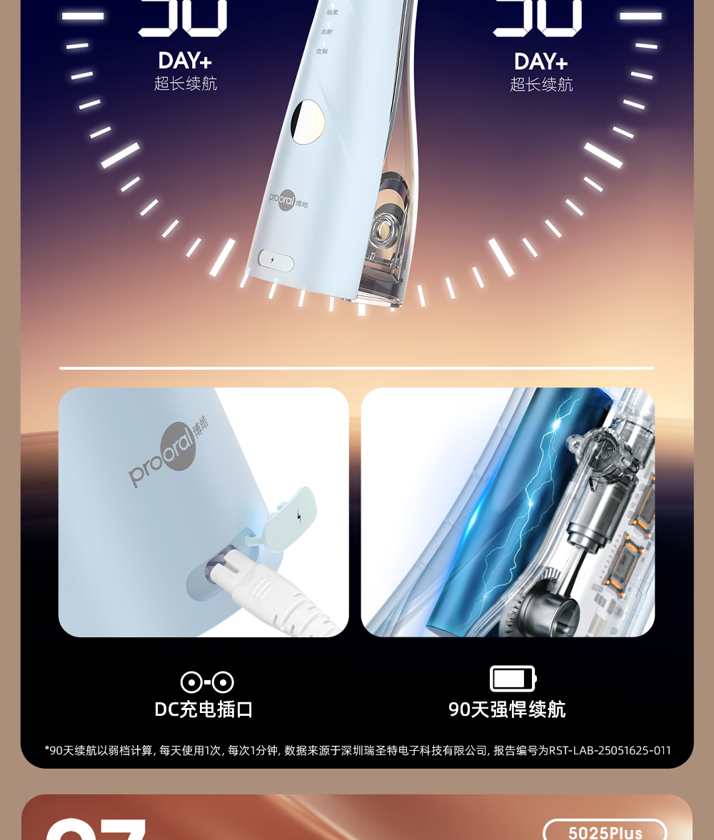 博皓(prooral)手持立式冲牙器 水牙线洁牙器大水箱牙齿清洁器智能屏显 5025Plus黛粉【生日送礼】