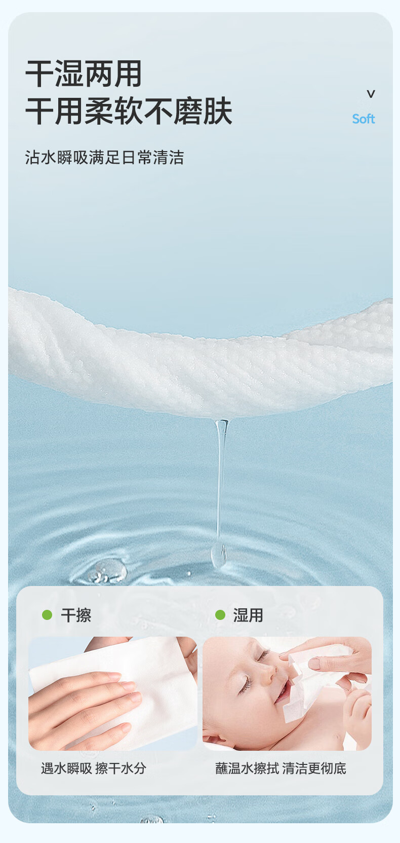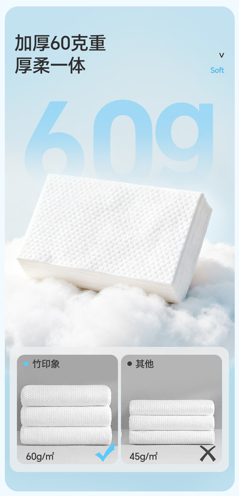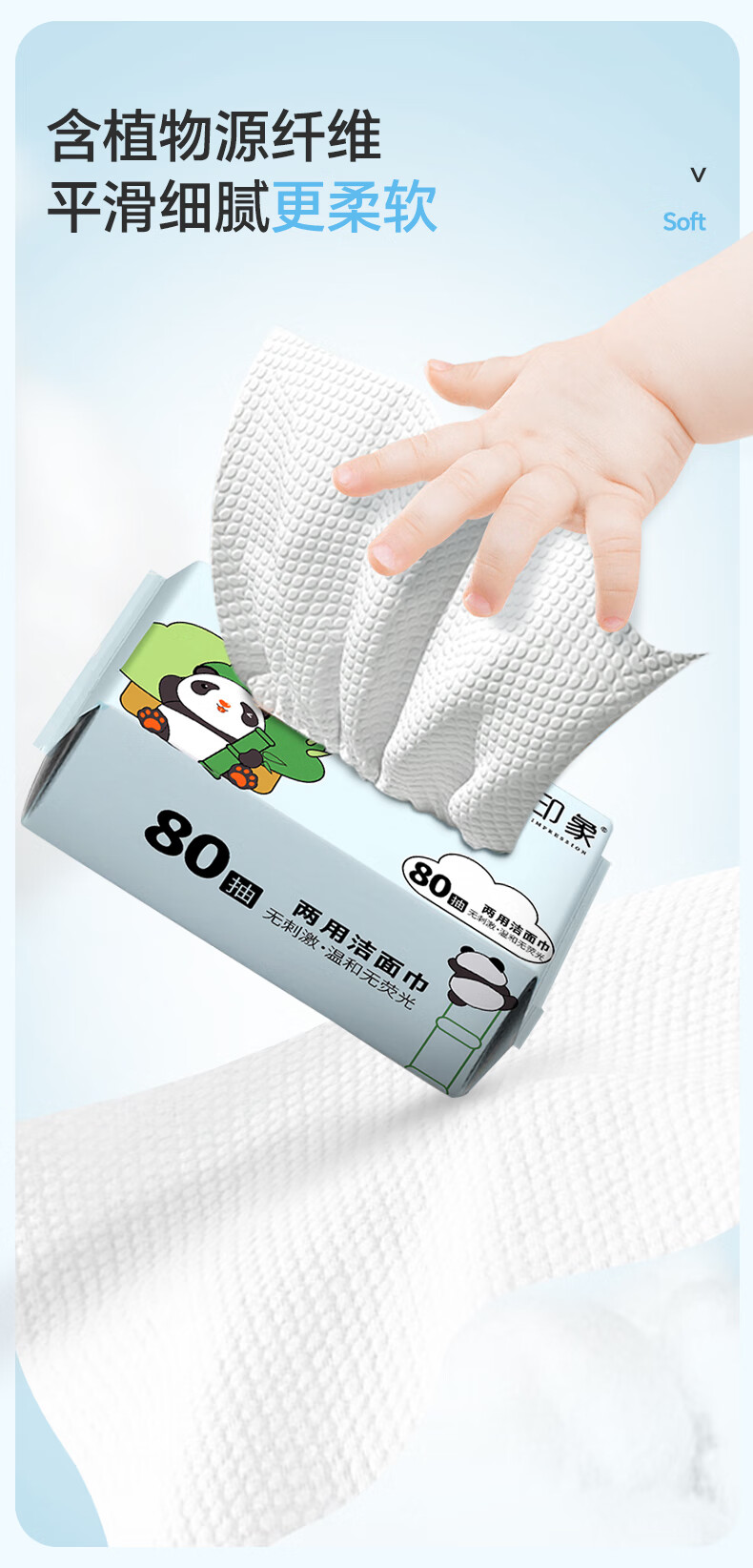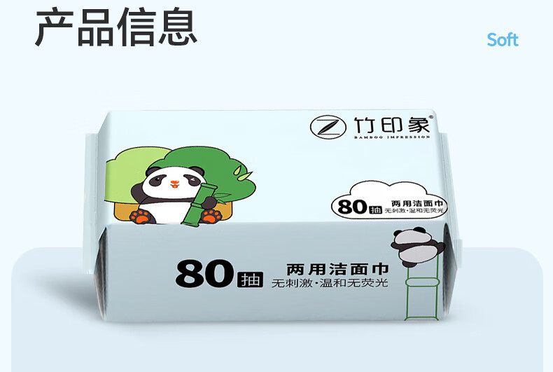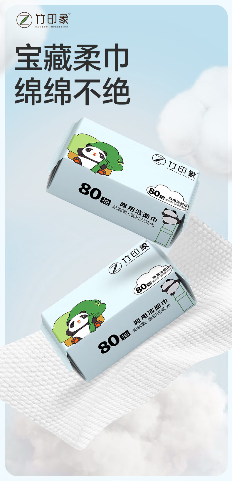 竹印象(BAMBOO IMPRESSION)洗脸巾一次性毛巾洗脸巾珍珠纹婴儿用洁面巾擦脸巾80抽 中号M*6包