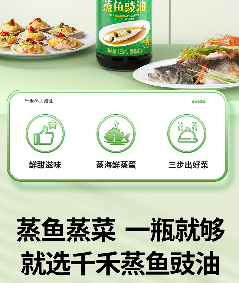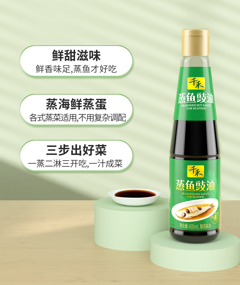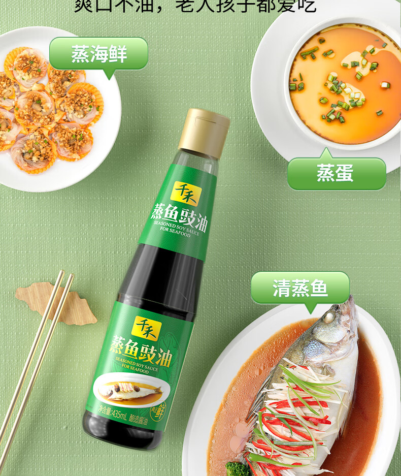 千禾 蒸鱼豉油 435mL【酿造酱油】清蒸海鲜蒸蛋鼓油家用调味品