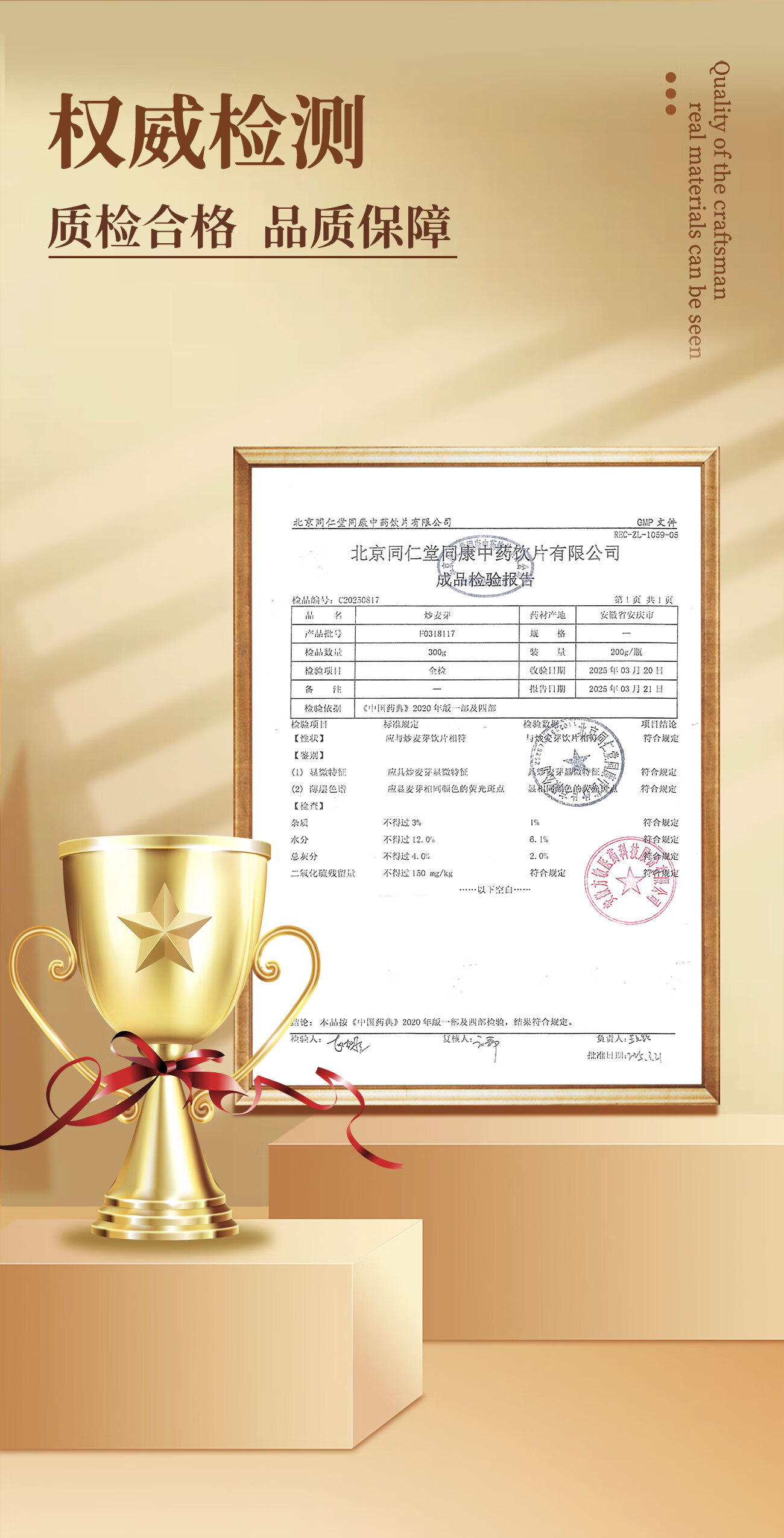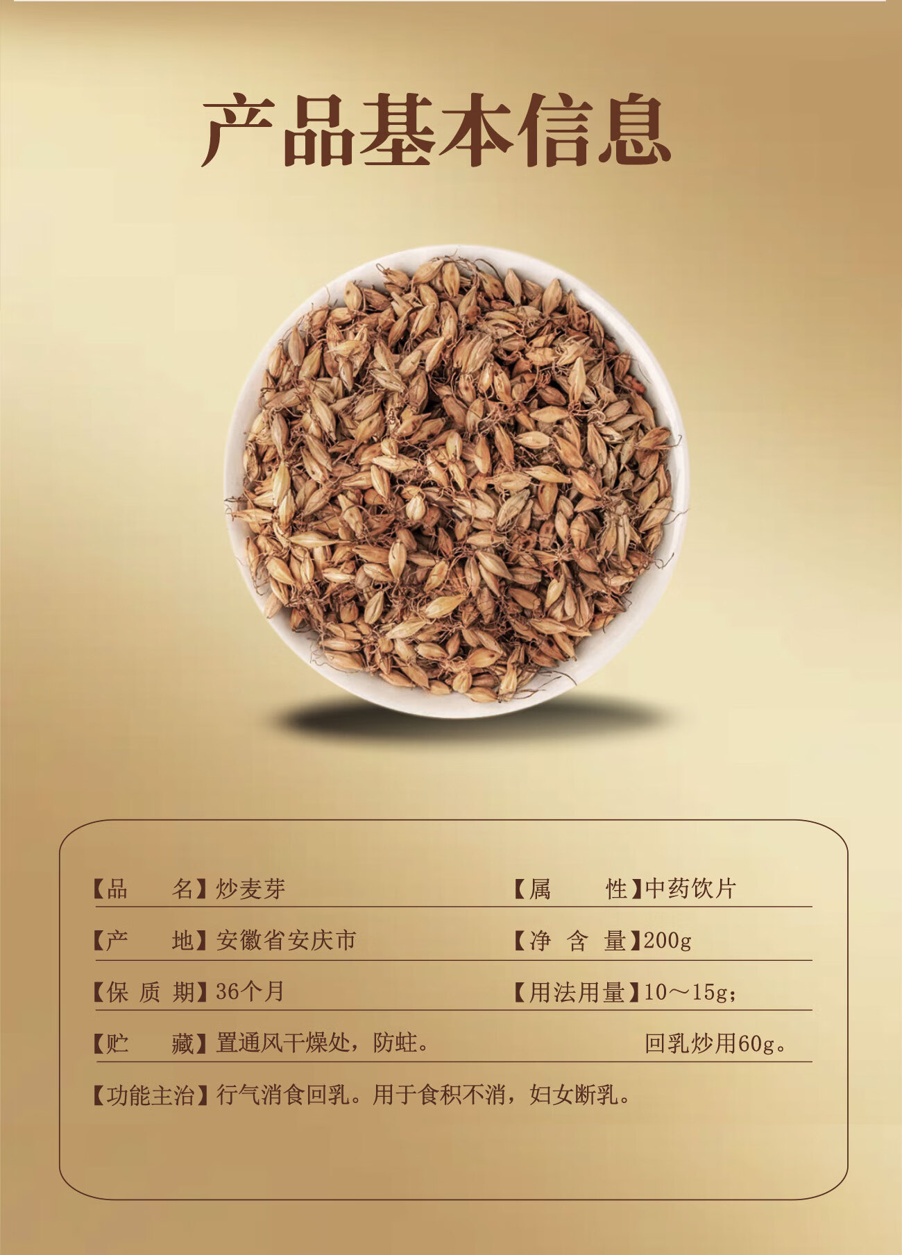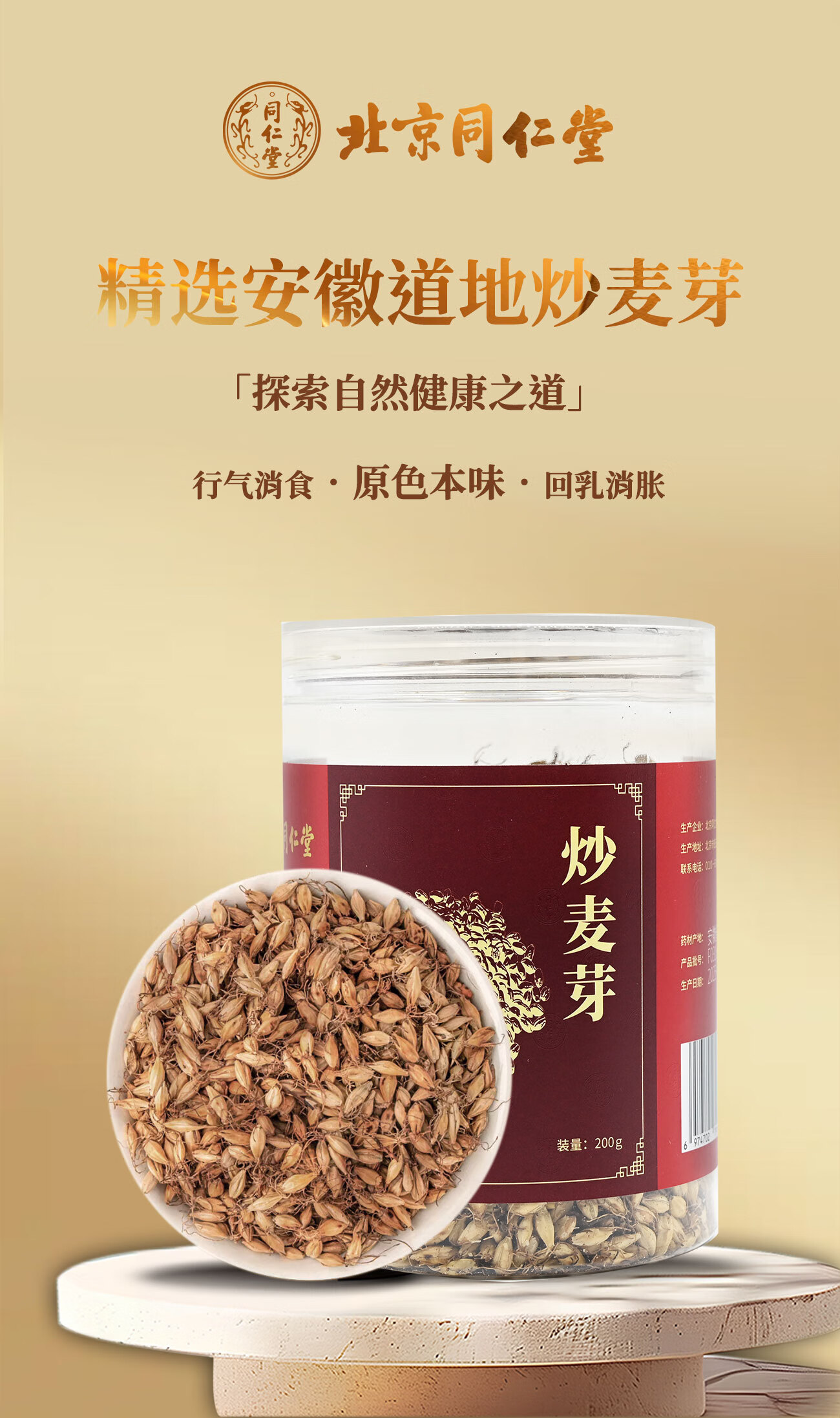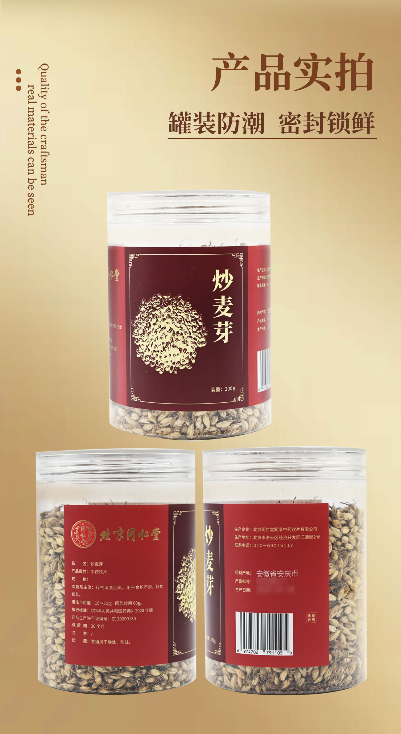 同仁堂(TRT)品牌北京同仁堂炒麦芽200g大麦茶回奶断奶退奶回奶宝回奶茶消食回乳健胃消胀麦子茶中药饮片级