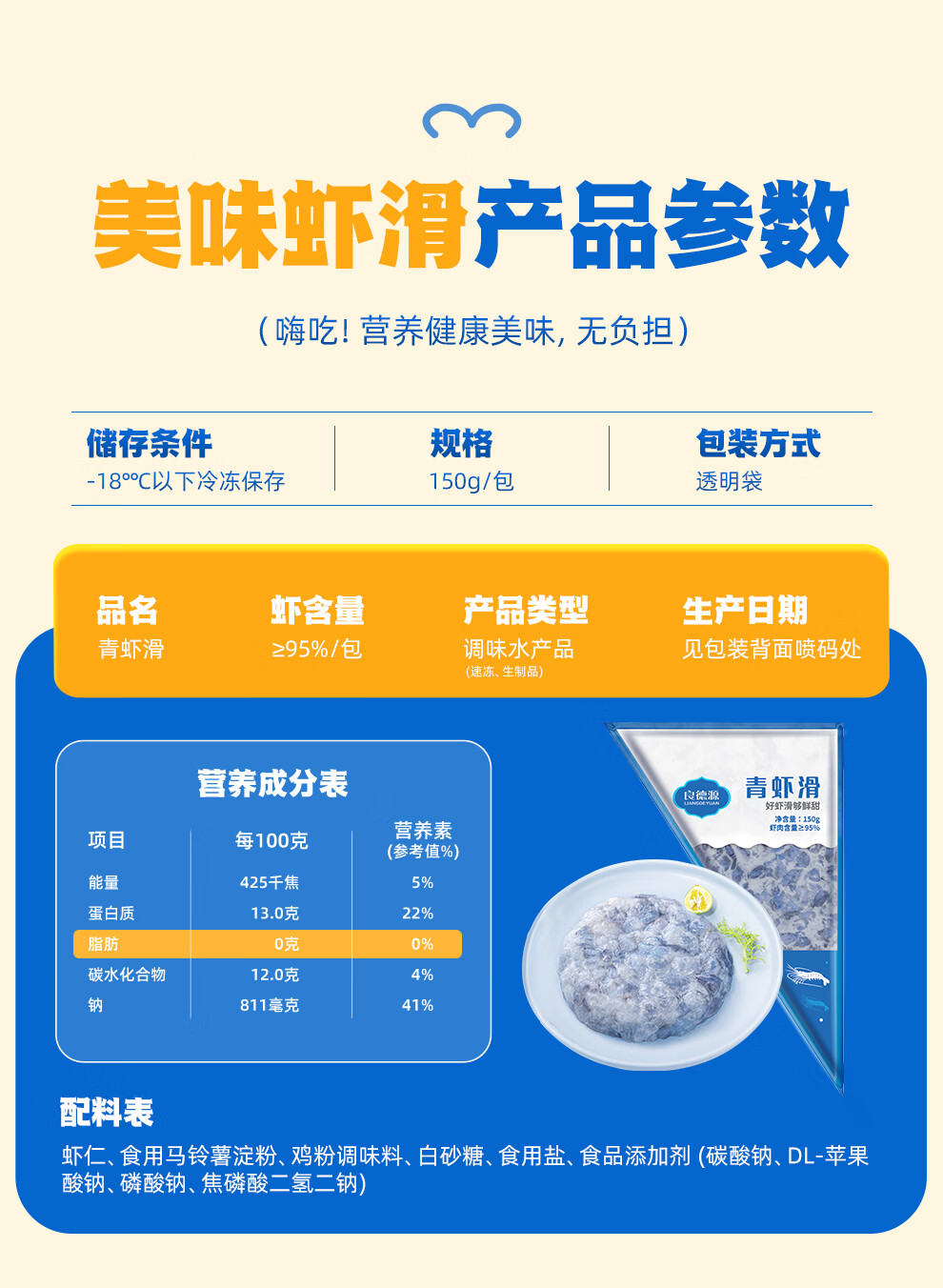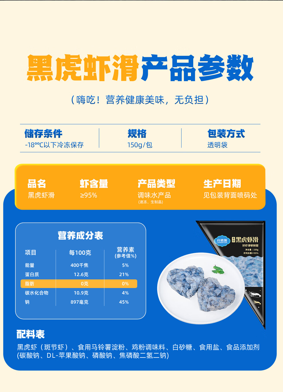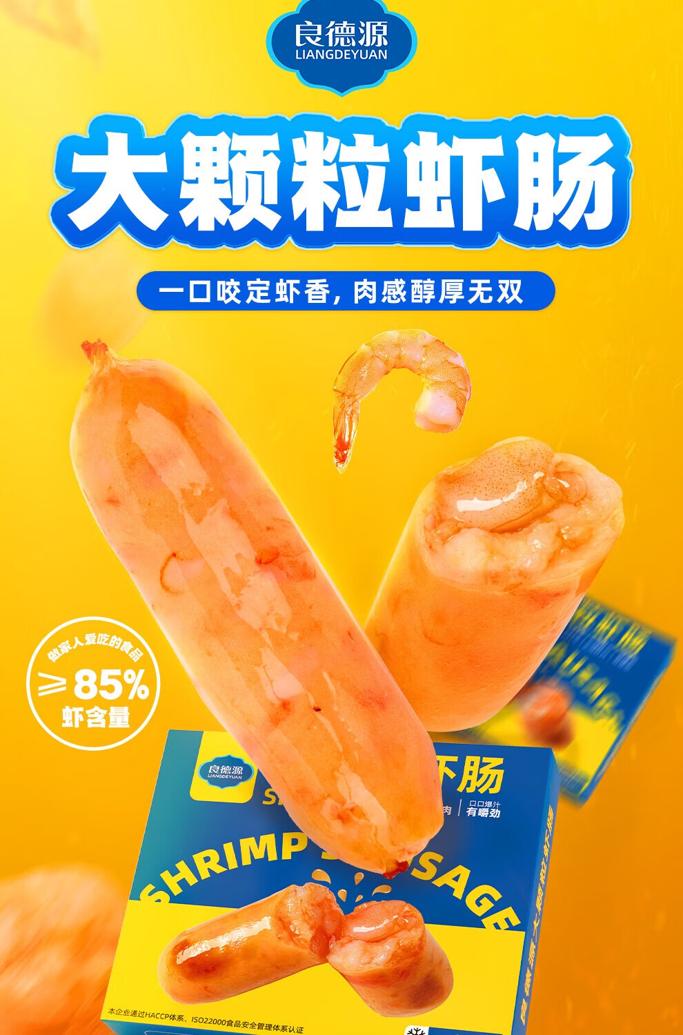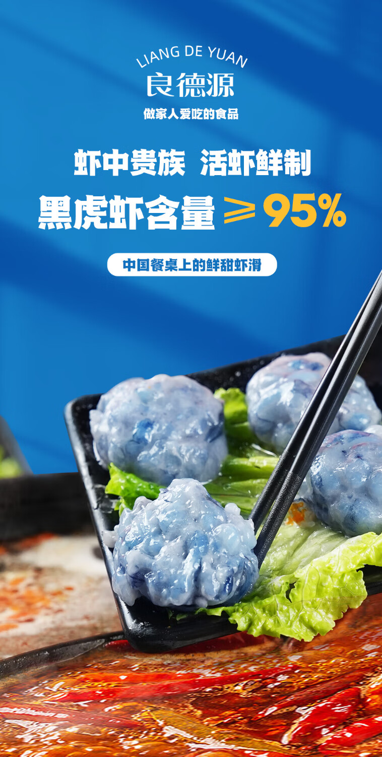 良德源黑虎虾滑/虾肠/青虾滑/虾饼火锅食材丸料涮锅丸子关东煮虾排早餐 90%鲜虾滑150g*5包共 750g(净重)