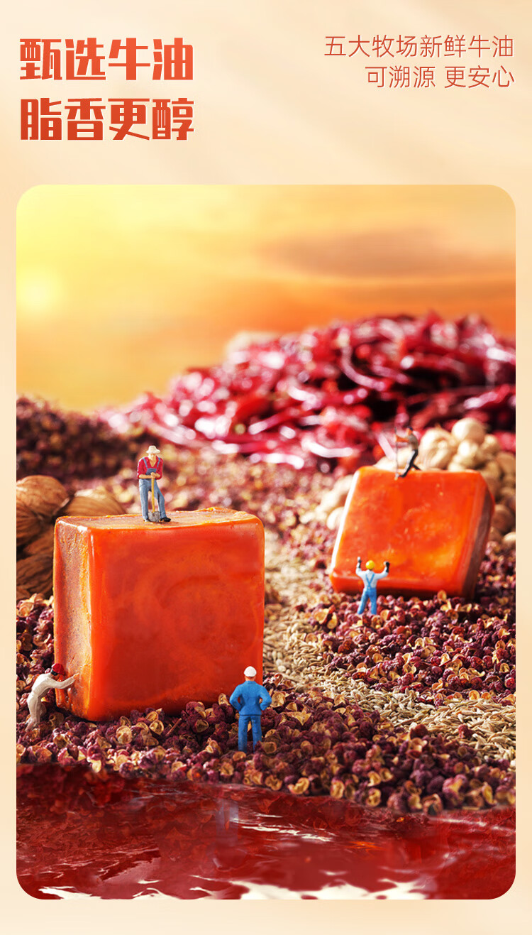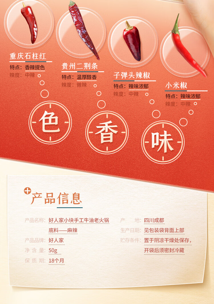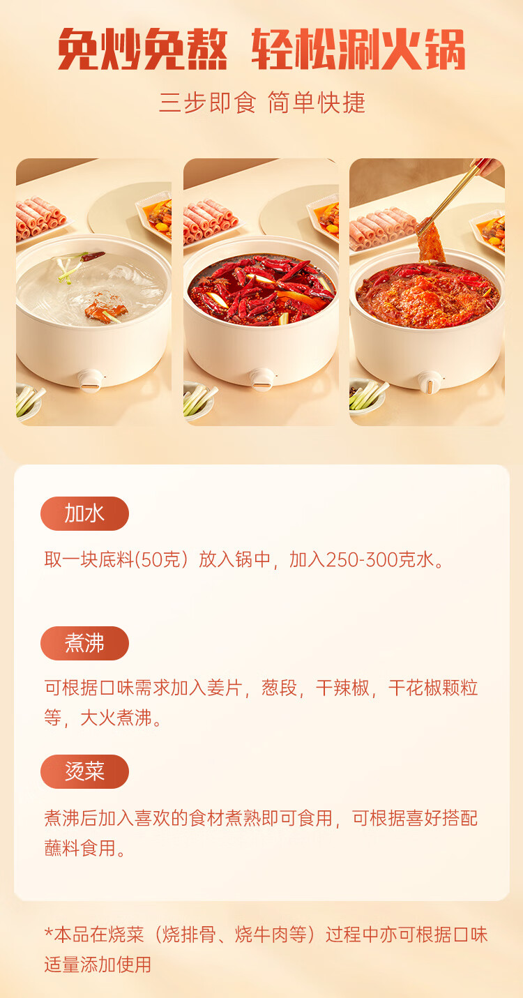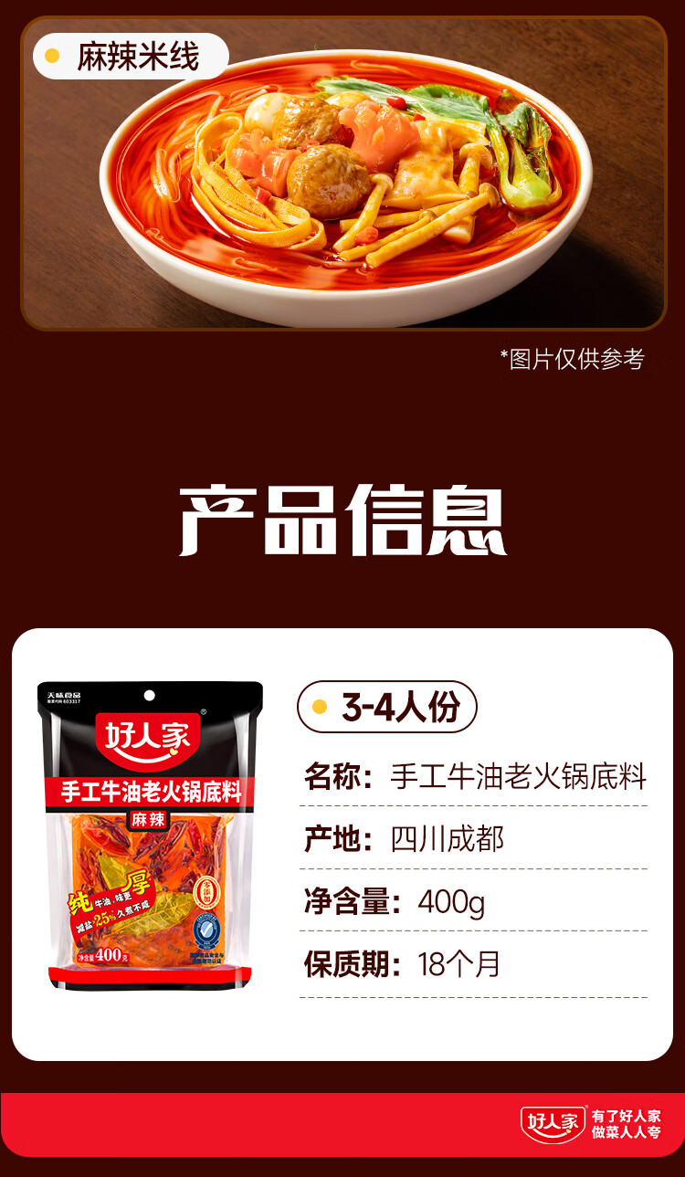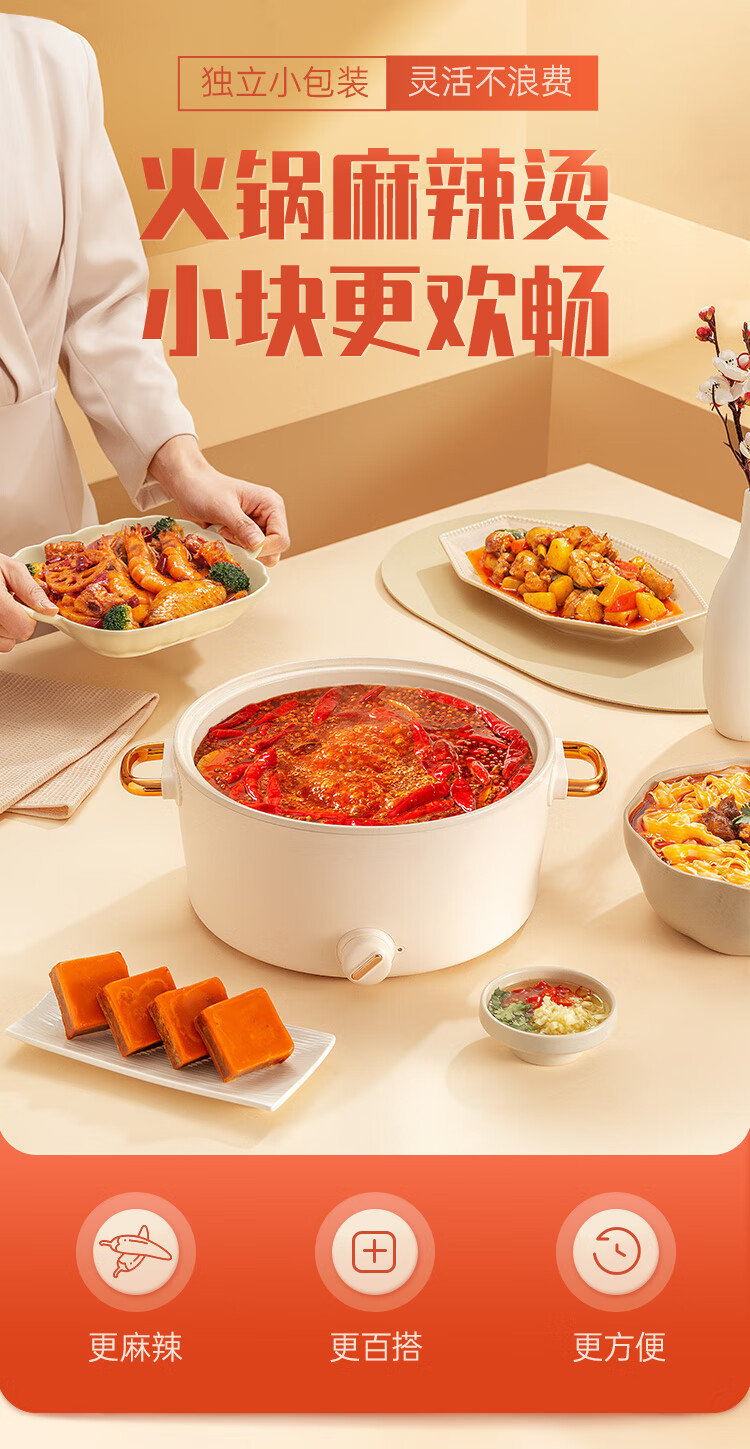 好人家0添加香辣牛油火锅底料煮火锅冒菜麻辣烫小块分装露营便携调料 手工火锅50g*5【多用途火锅料】