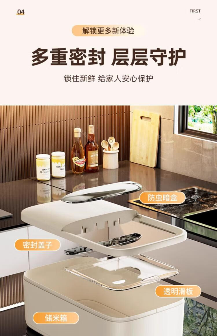 WCZ德国米桶家用2025新款密封防潮大米粮箱收纳盒米缸面桶储存罐 枪灰10斤密封加量杯