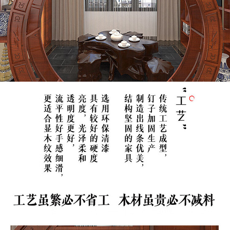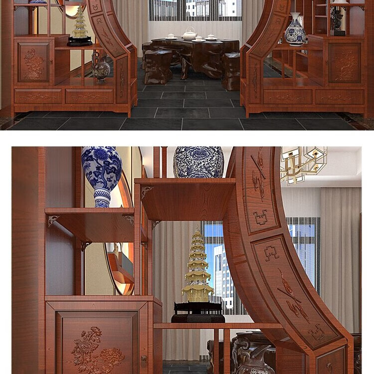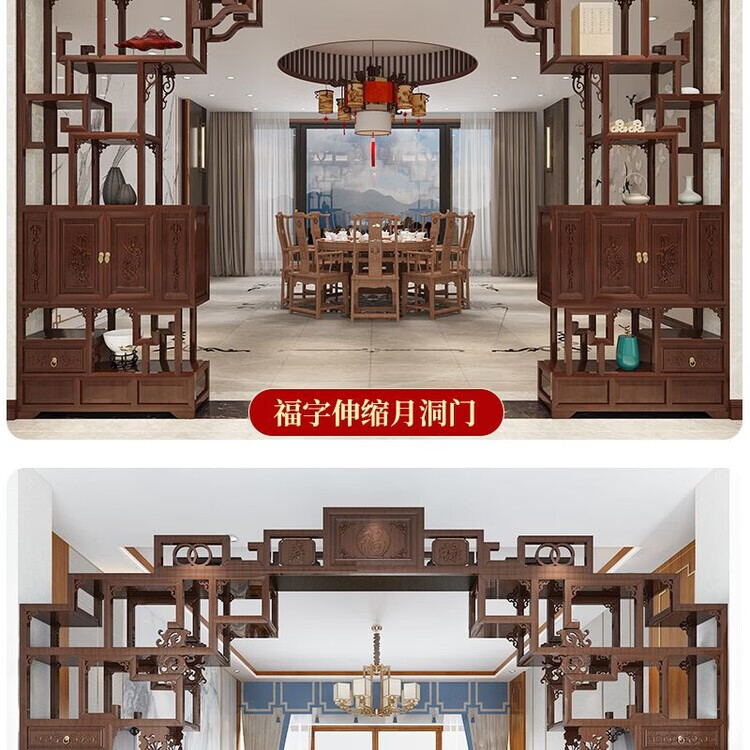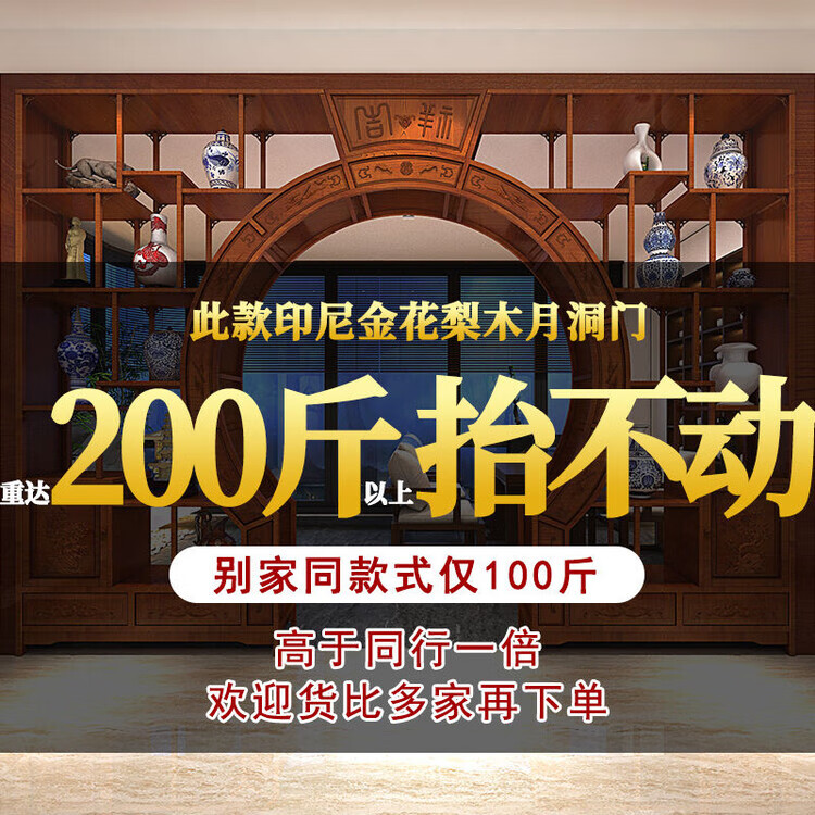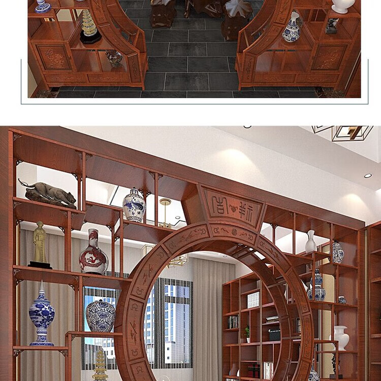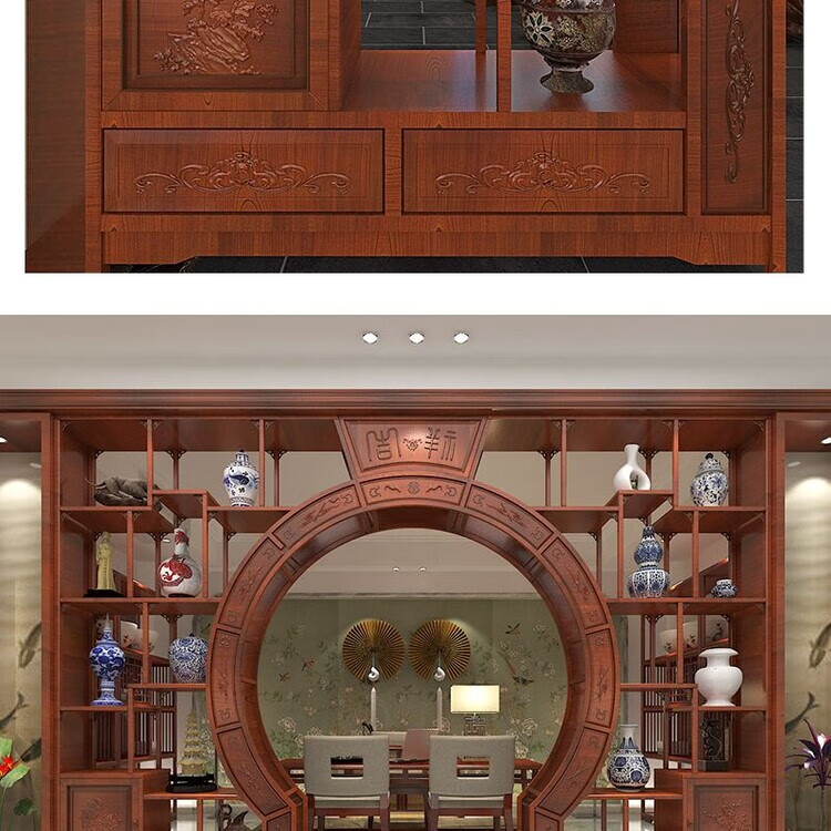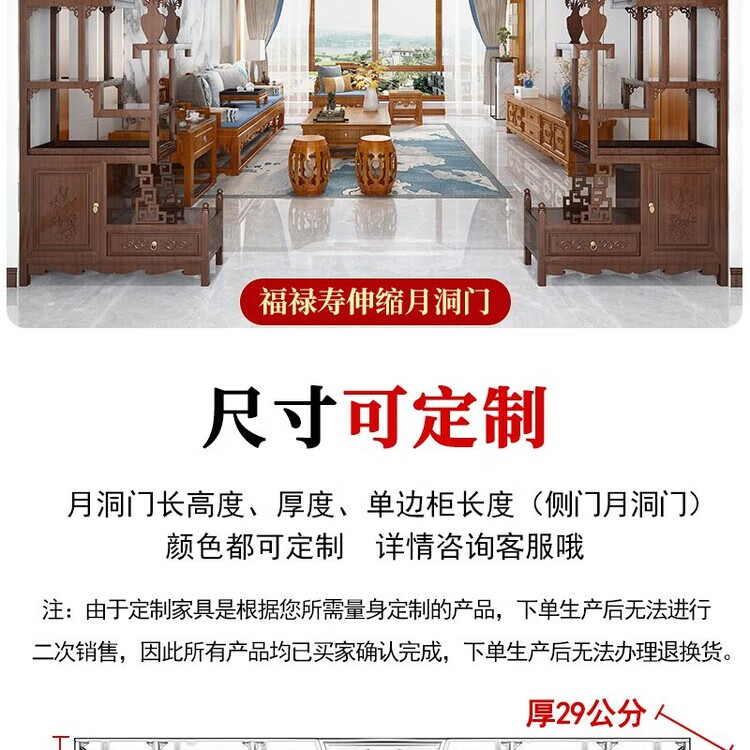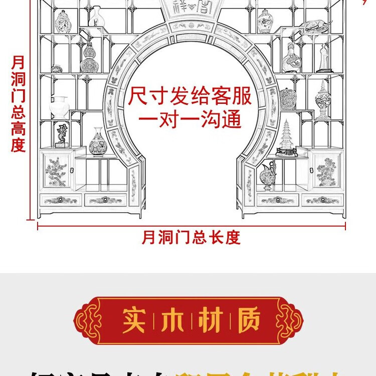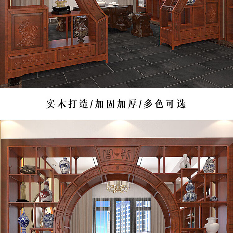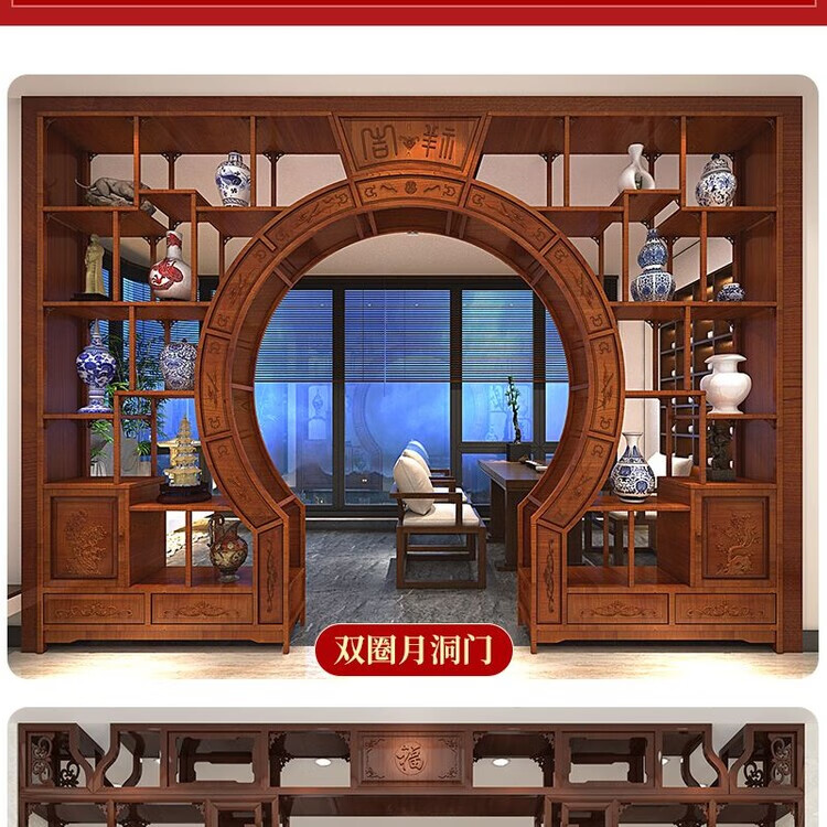 倘然之家中式实木月洞门博古架多宝阁弧形圆门月亮门客厅隔断书架仿古家具 长2米 高2.25米 厚29公分用料加厚