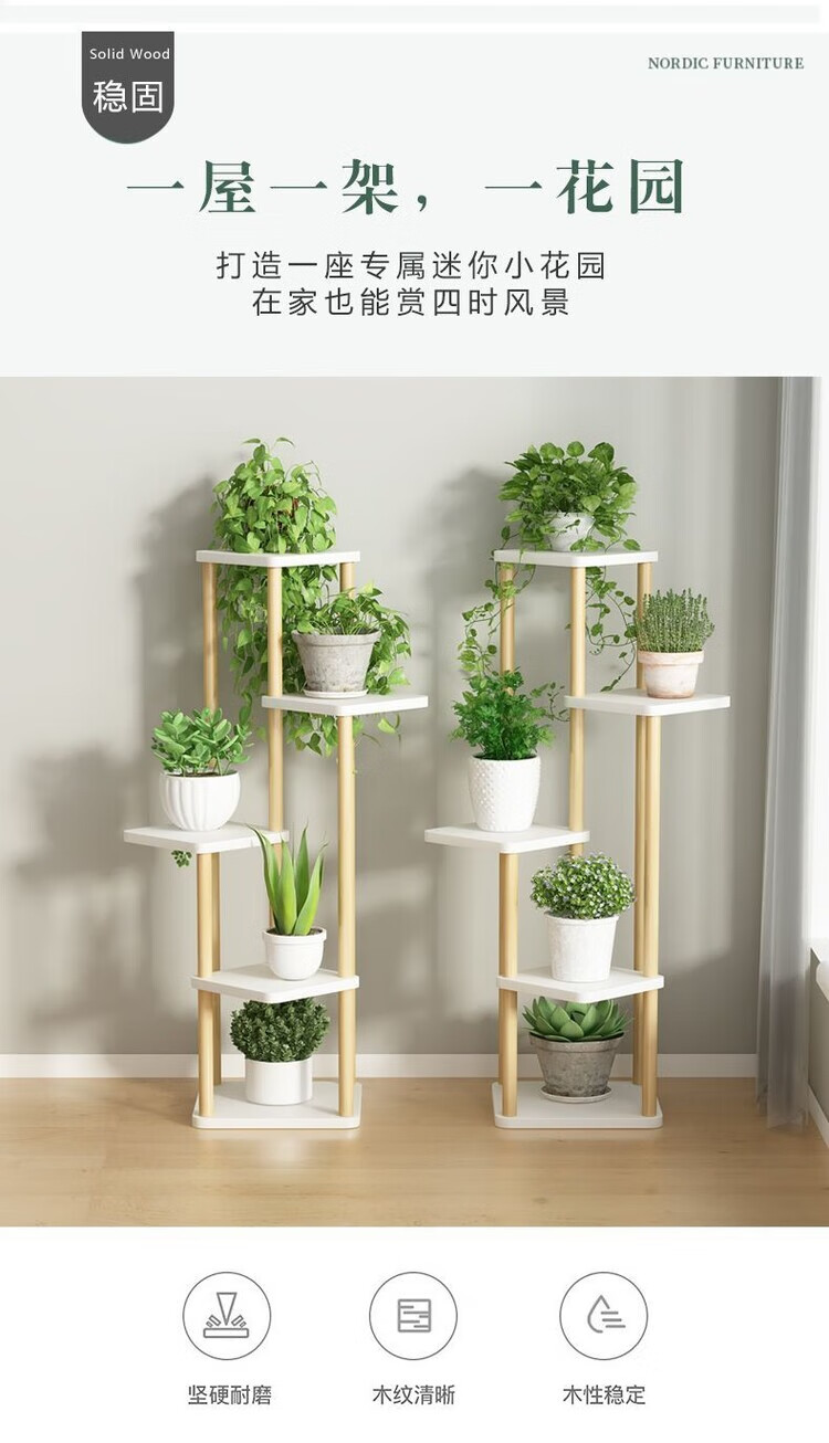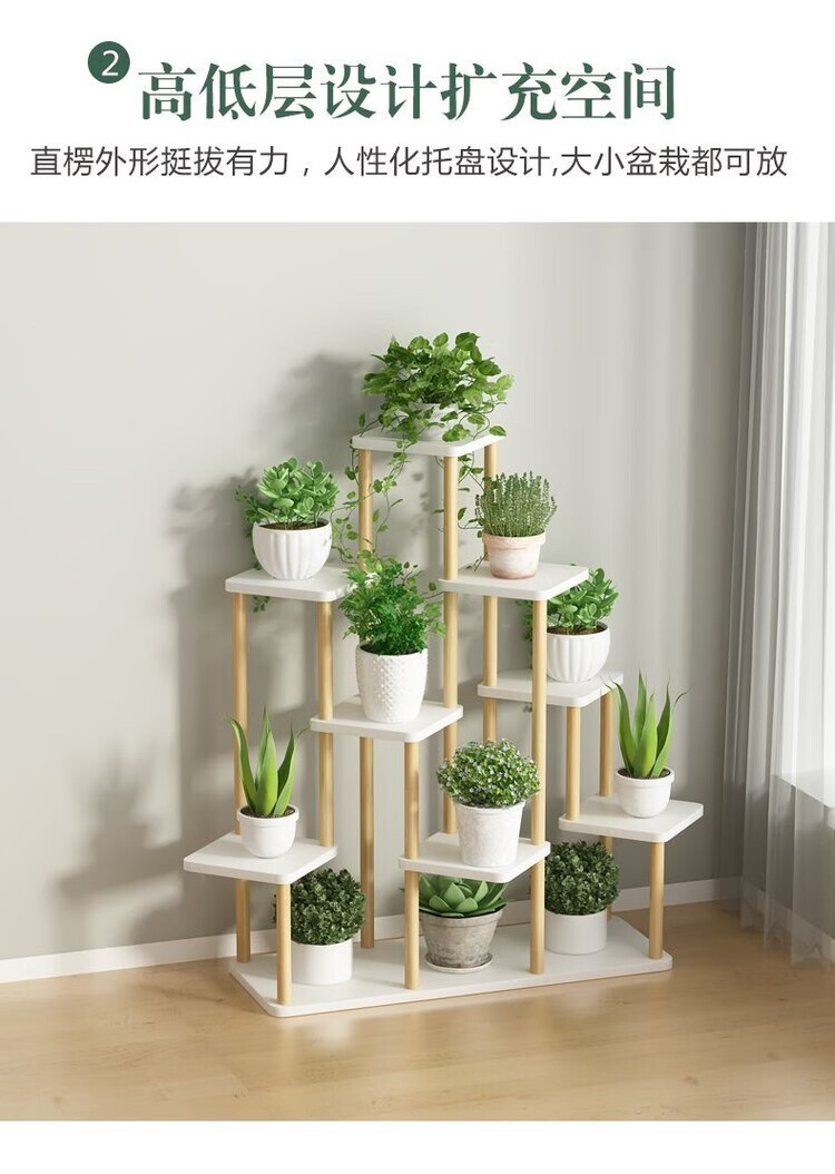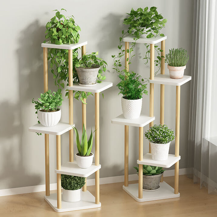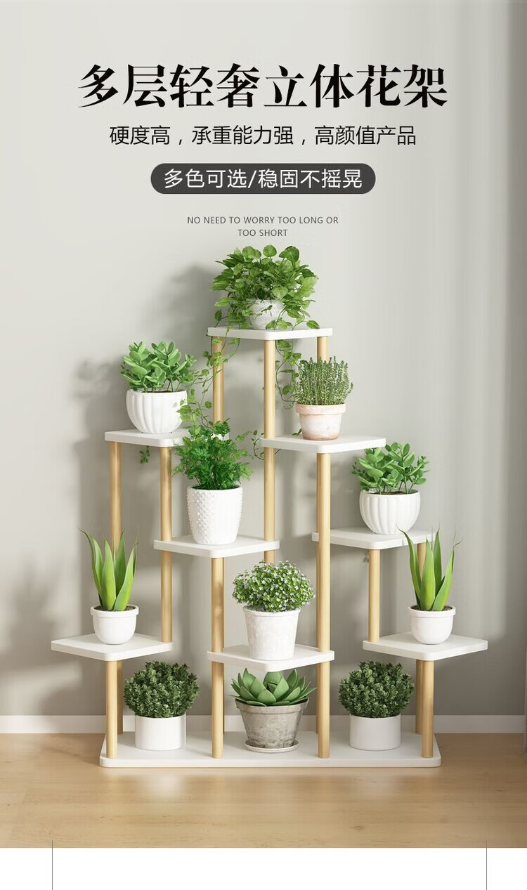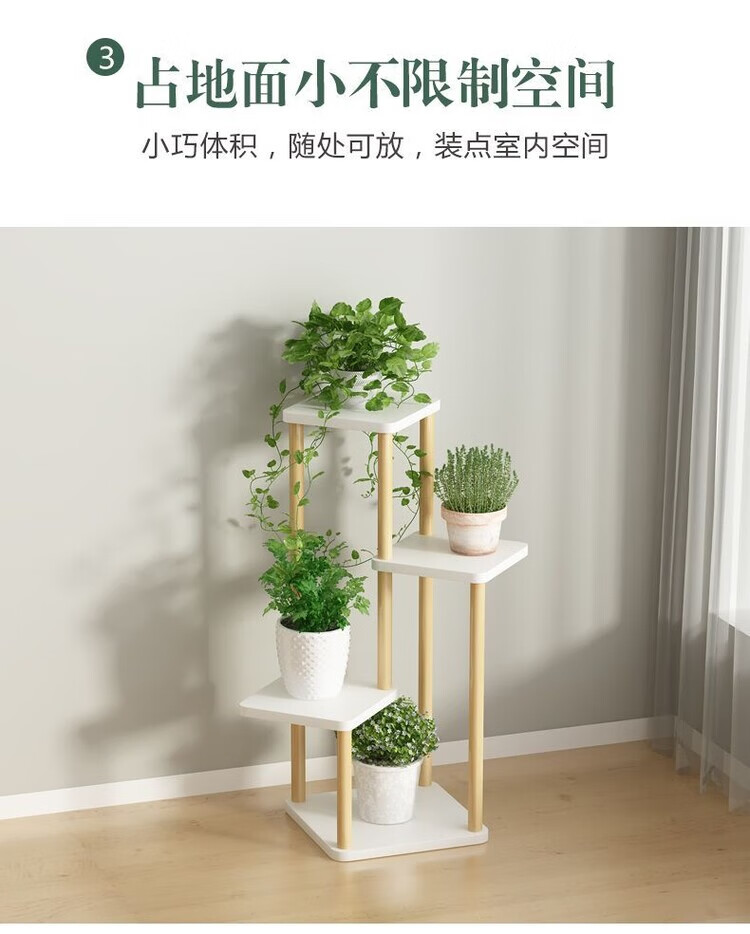 欣慕雅花架子室内家用落地式简约阳台置物架多层绿萝多肉植物轻奢花盆架 北欧一号【白色】四层