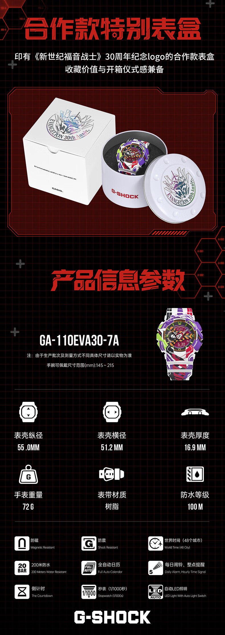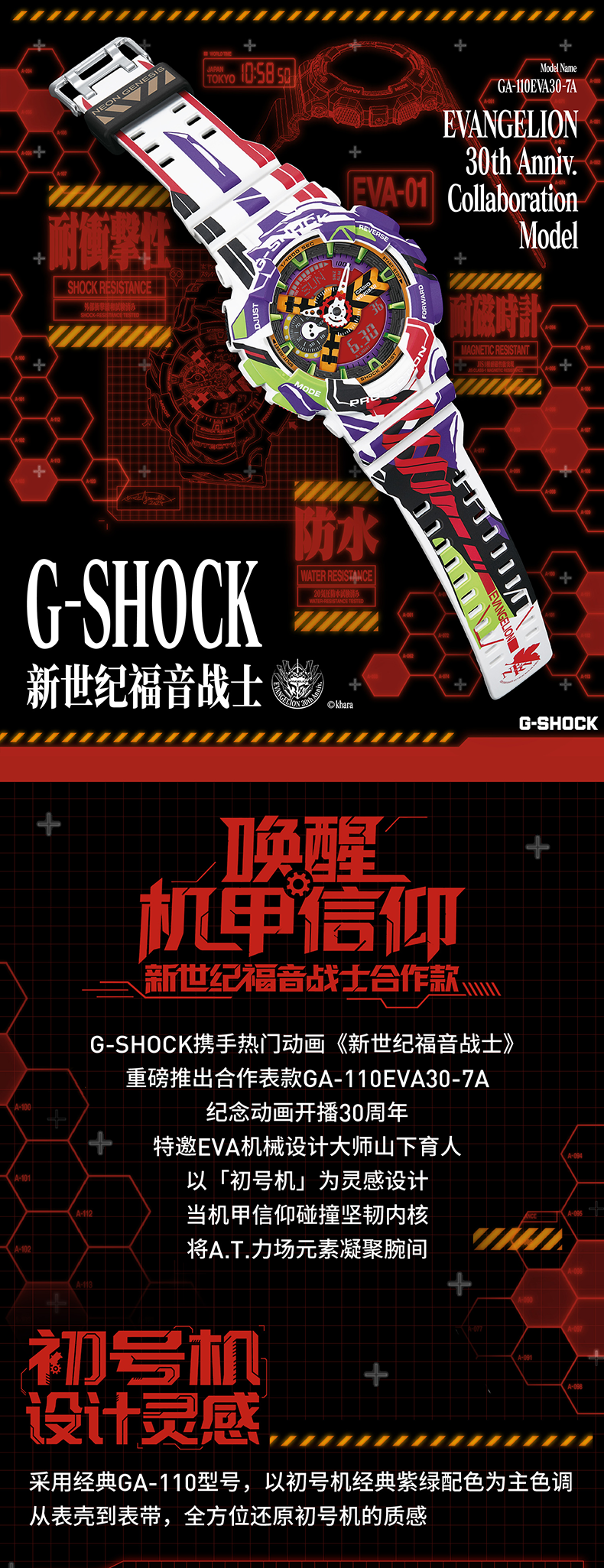 卡西欧(CASIO)x新世纪福音战士EVA初号机30周年纪念款 G-SHOCK男士手表特别表盒 GA-110EVA30-7APR