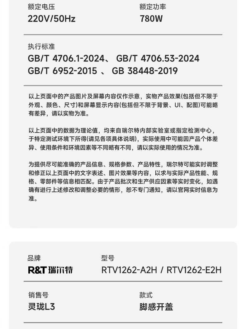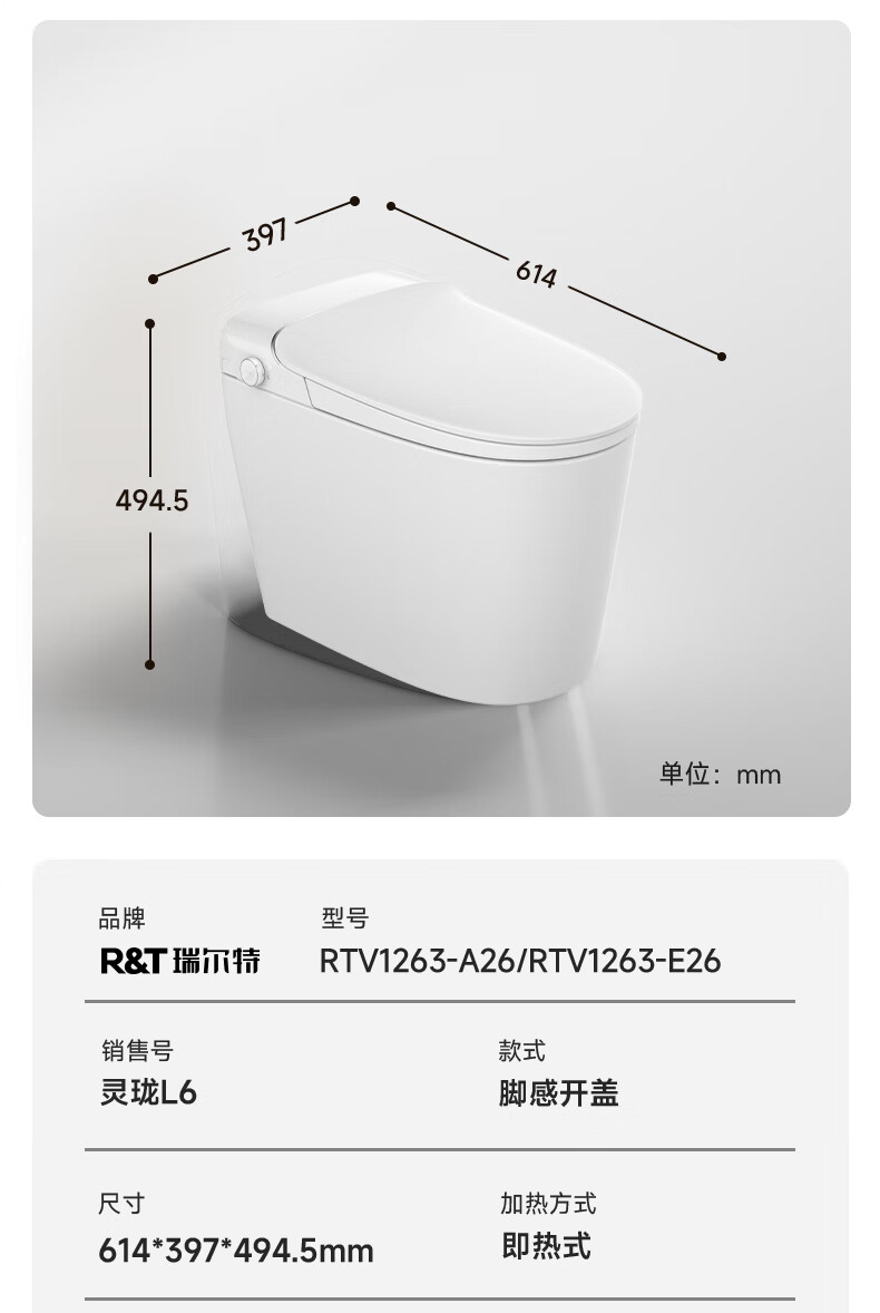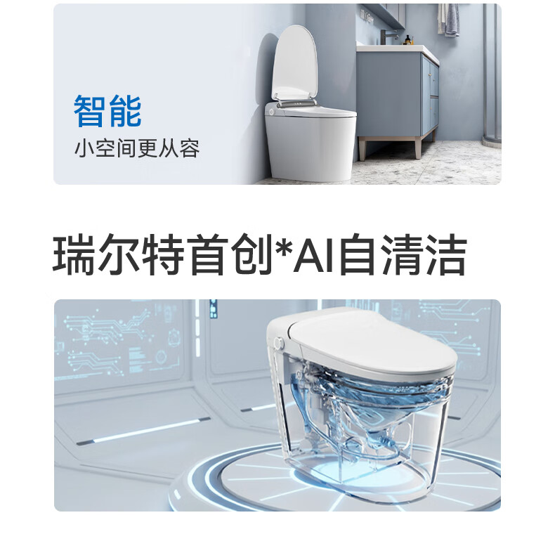 瑞尔特(R&T)全智能马桶小户型AI自清洁泡沫盾翻盖水洗坐便器灵珑L6-305坑距