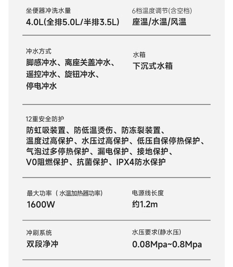 松下(Panasonic)V8Pro坑距可调回旋泡UV除菌睡眠级静音智能马桶-CH2N551WSC