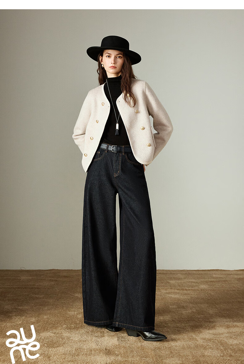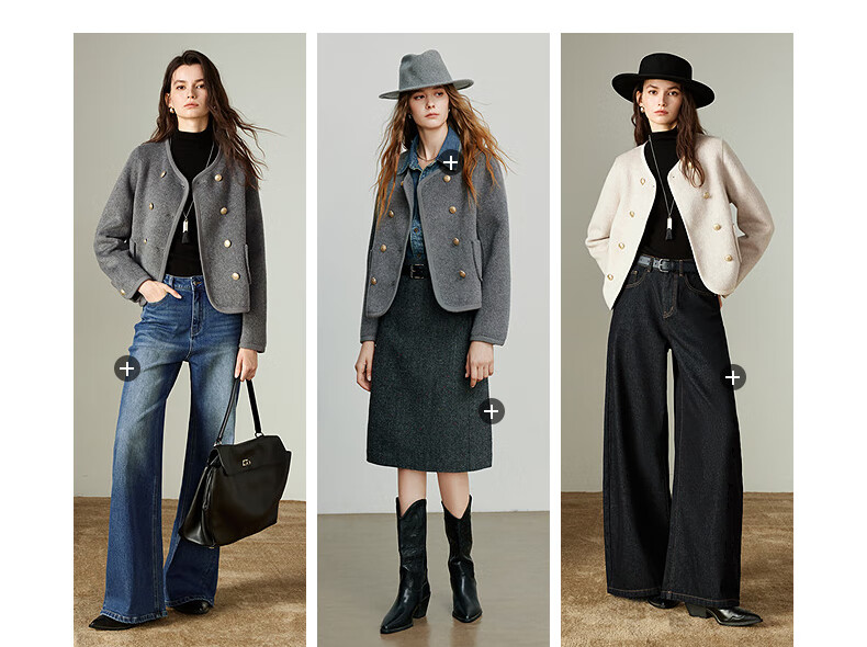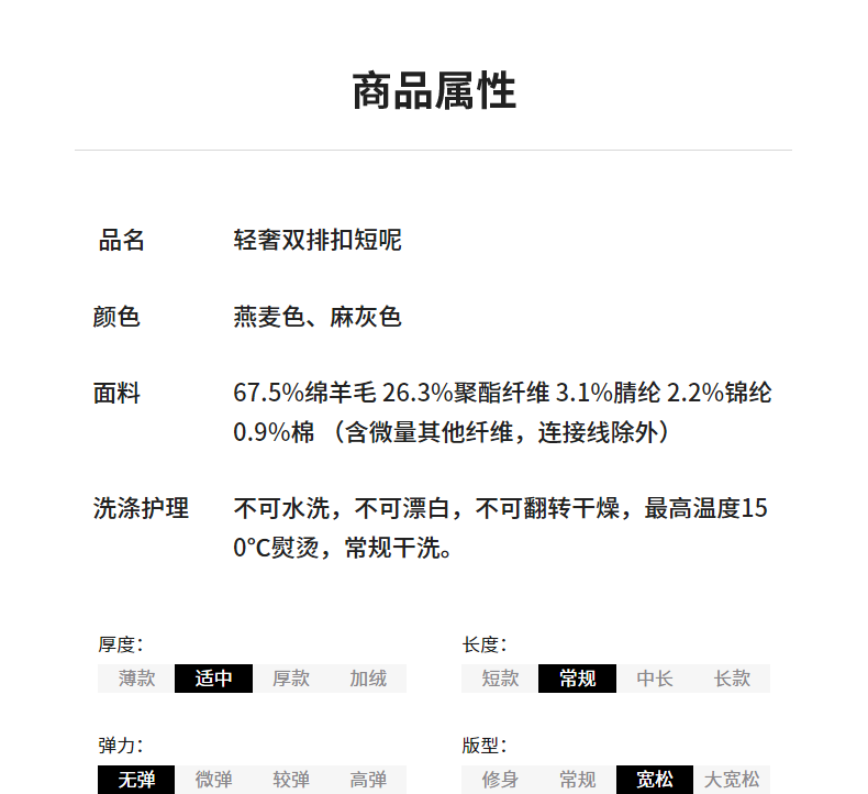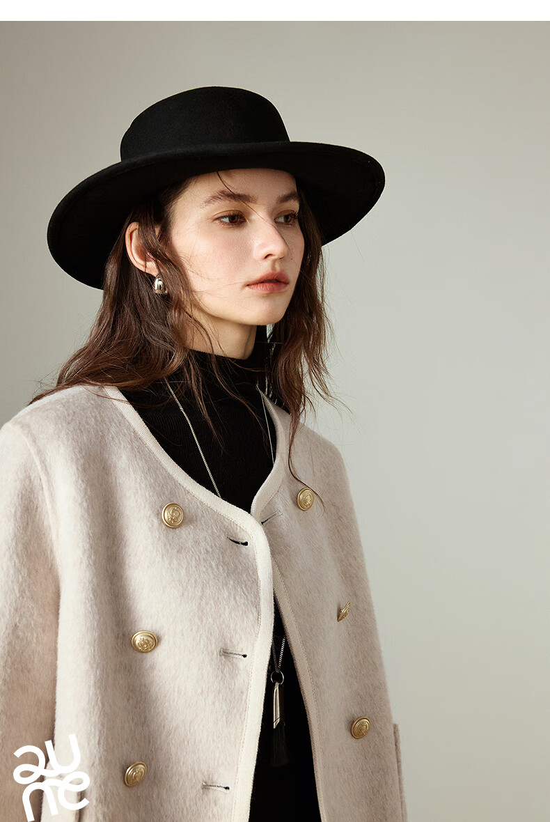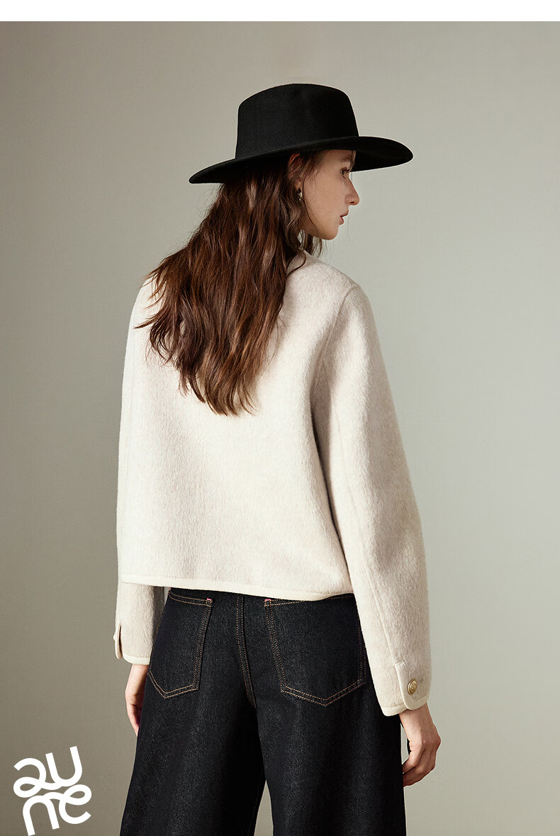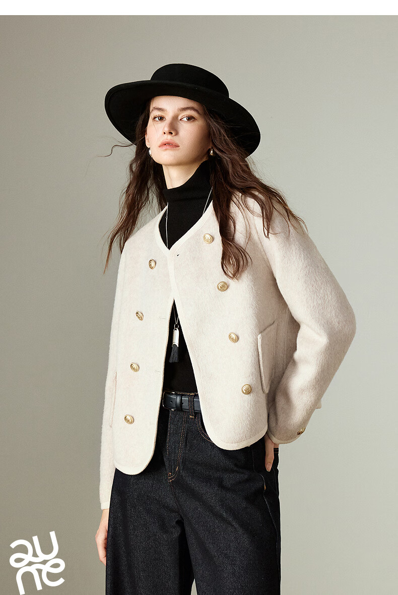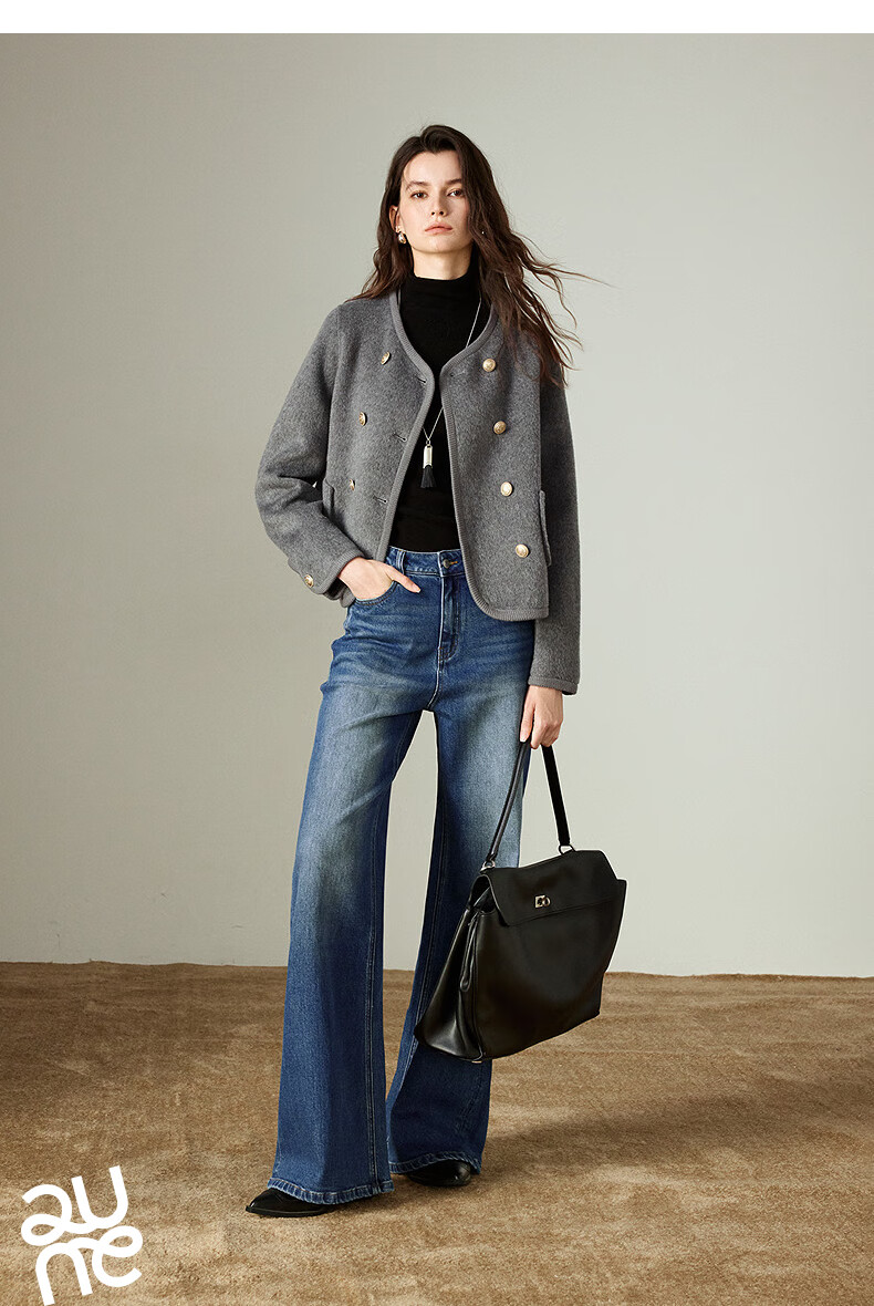 初语双面呢外套女2025秋季新款轻奢双排扣短款羊毛双面呢上衣 麻灰色 M