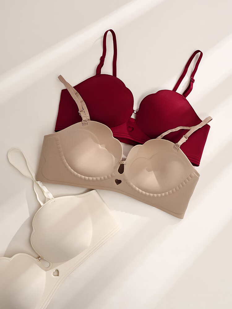 芬腾舒适聚拢防下垂收副乳透气无痕无钢圈大胸小胸一体式女士文胸罩 0153肤色 【光面一片式】 M 【推荐75ABC】