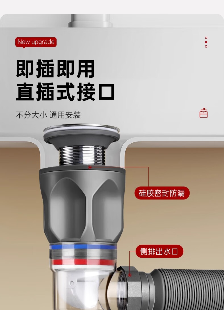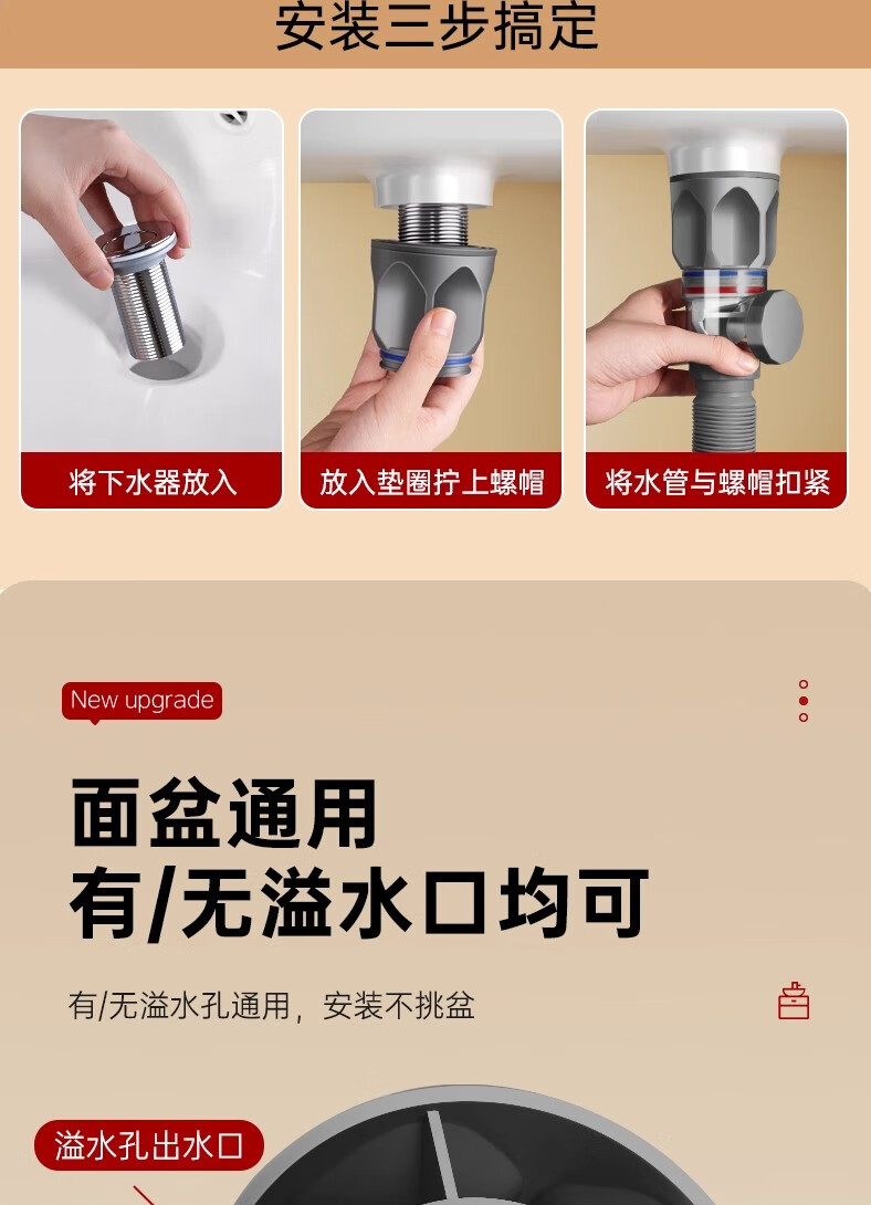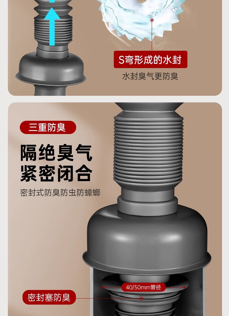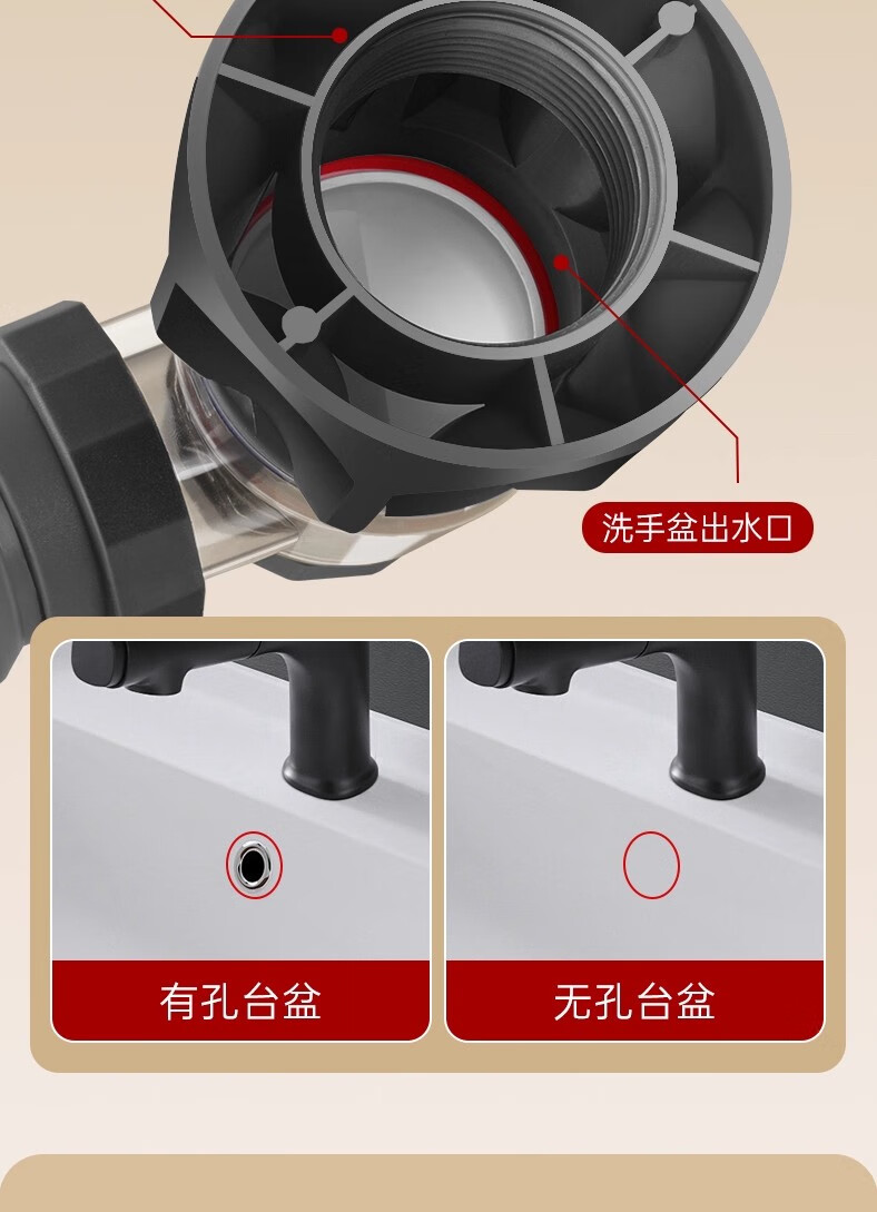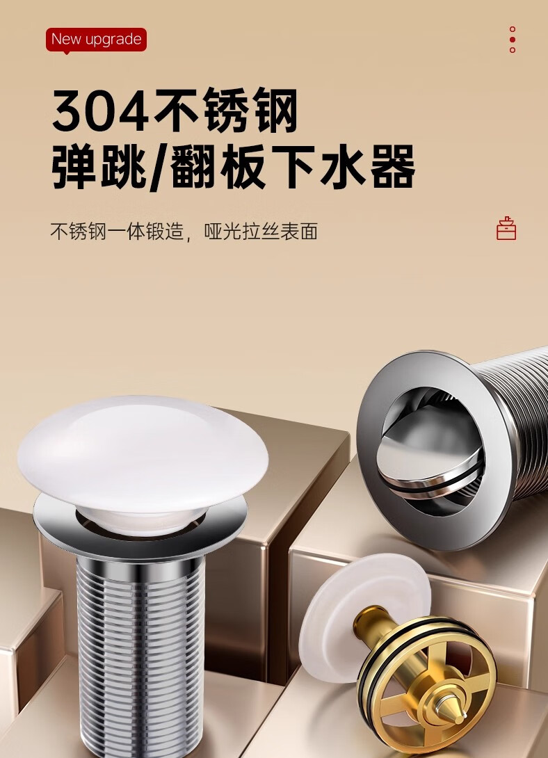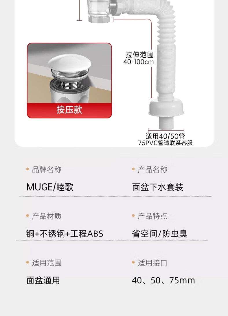 睦歌(MUGE)洗脸盆洗手盆面盆下水管套装防堵塞排水管防臭漏水塞下水器配件 弹跳芯【黑色】不锈钢面盆下水器+排水管