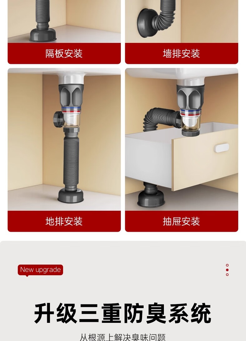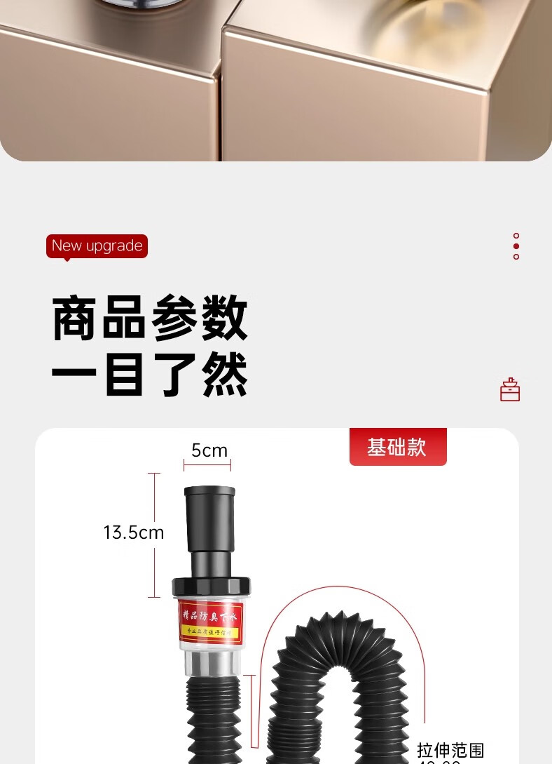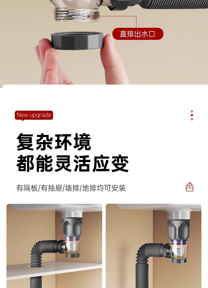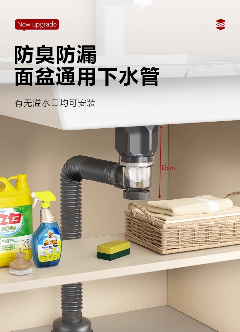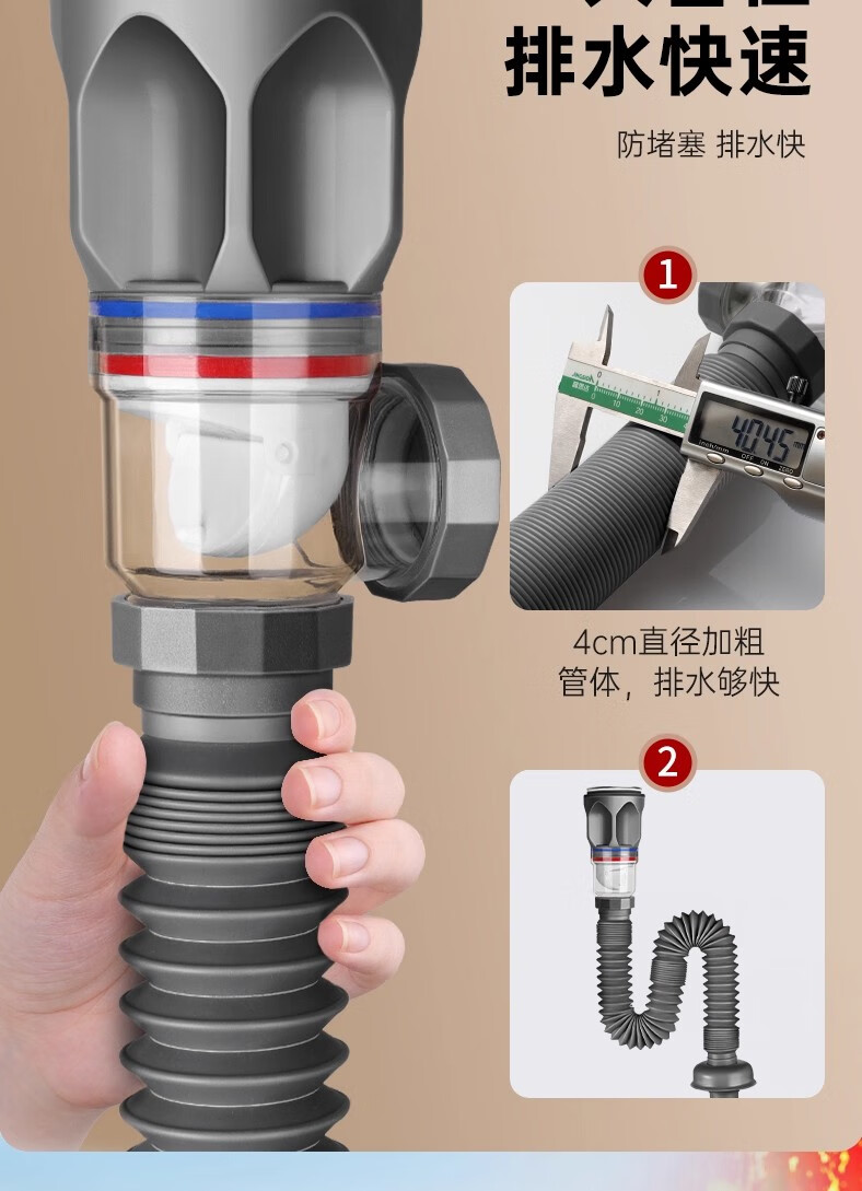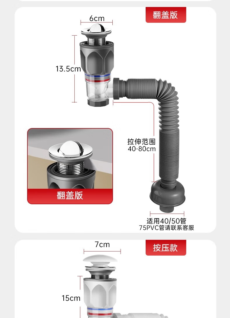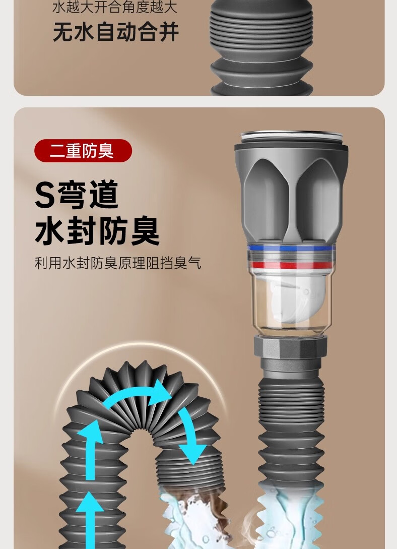 睦歌(MUGE)洗脸盆洗手盆面盆下水管套装防堵塞排水管防臭漏水塞下水器配件 弹跳芯【黑色】不锈钢面盆下水器+排水管