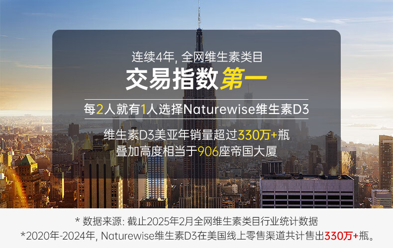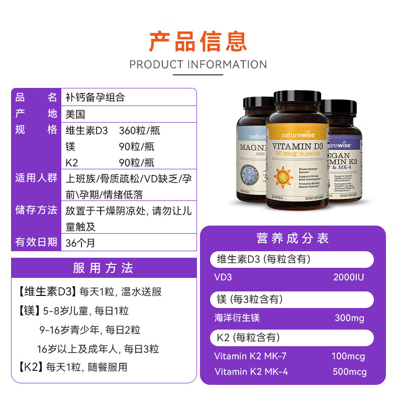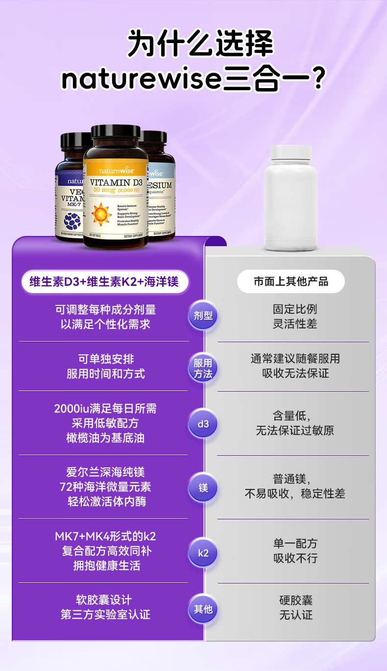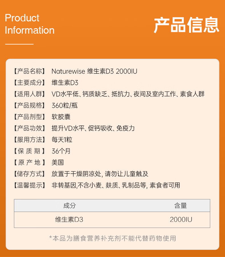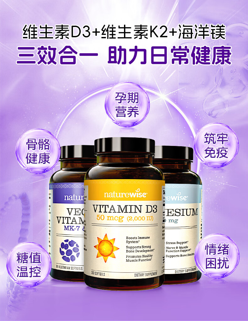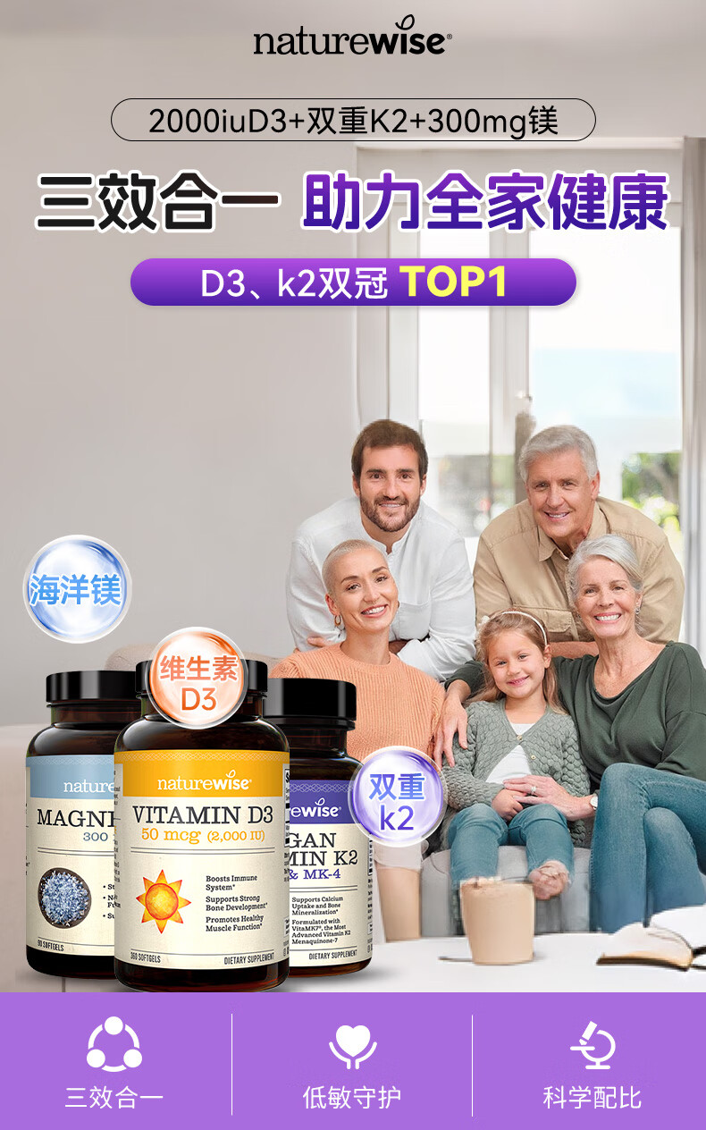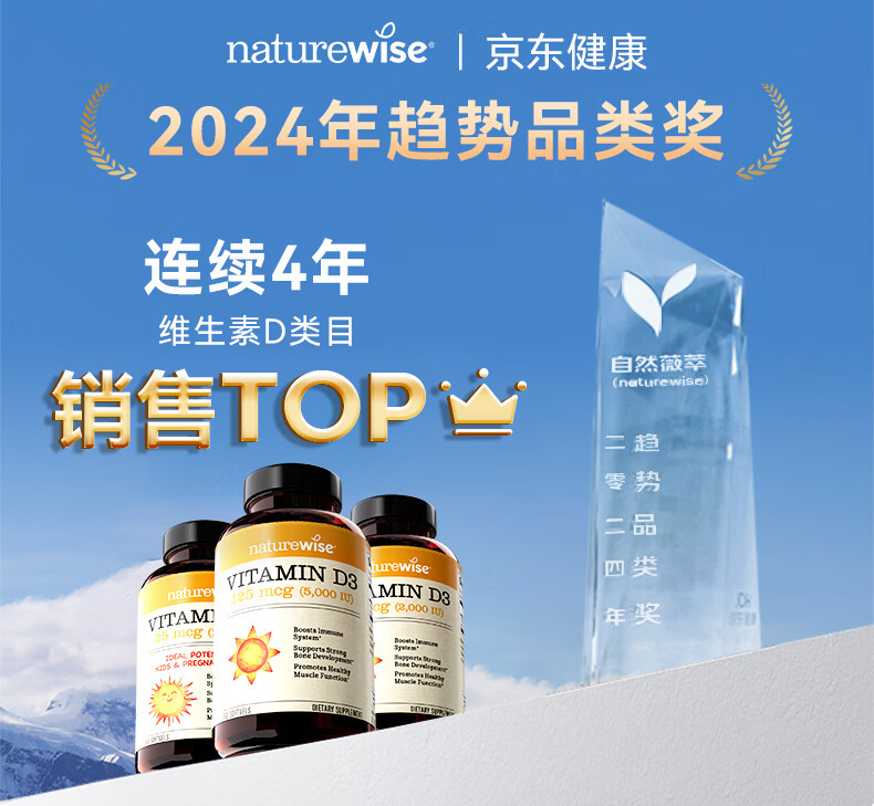 naturewise阳光瓶2000iu活性25羟基维生素D3成人孕妇软胶囊vd3补钙美国进口 (1瓶装)2000iu成人/孕期/青少年,360粒
