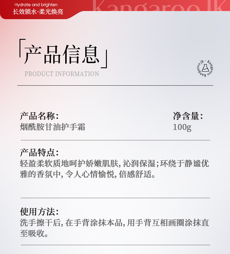 袋鼠杰克儿童成人烟酰胺甘油护手霜防粗糙干裂维生素B5保湿补水护手霜100g 【缓解干燥粗糙】滋润护手霜*1瓶