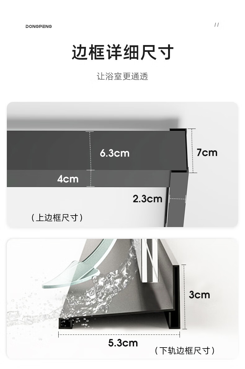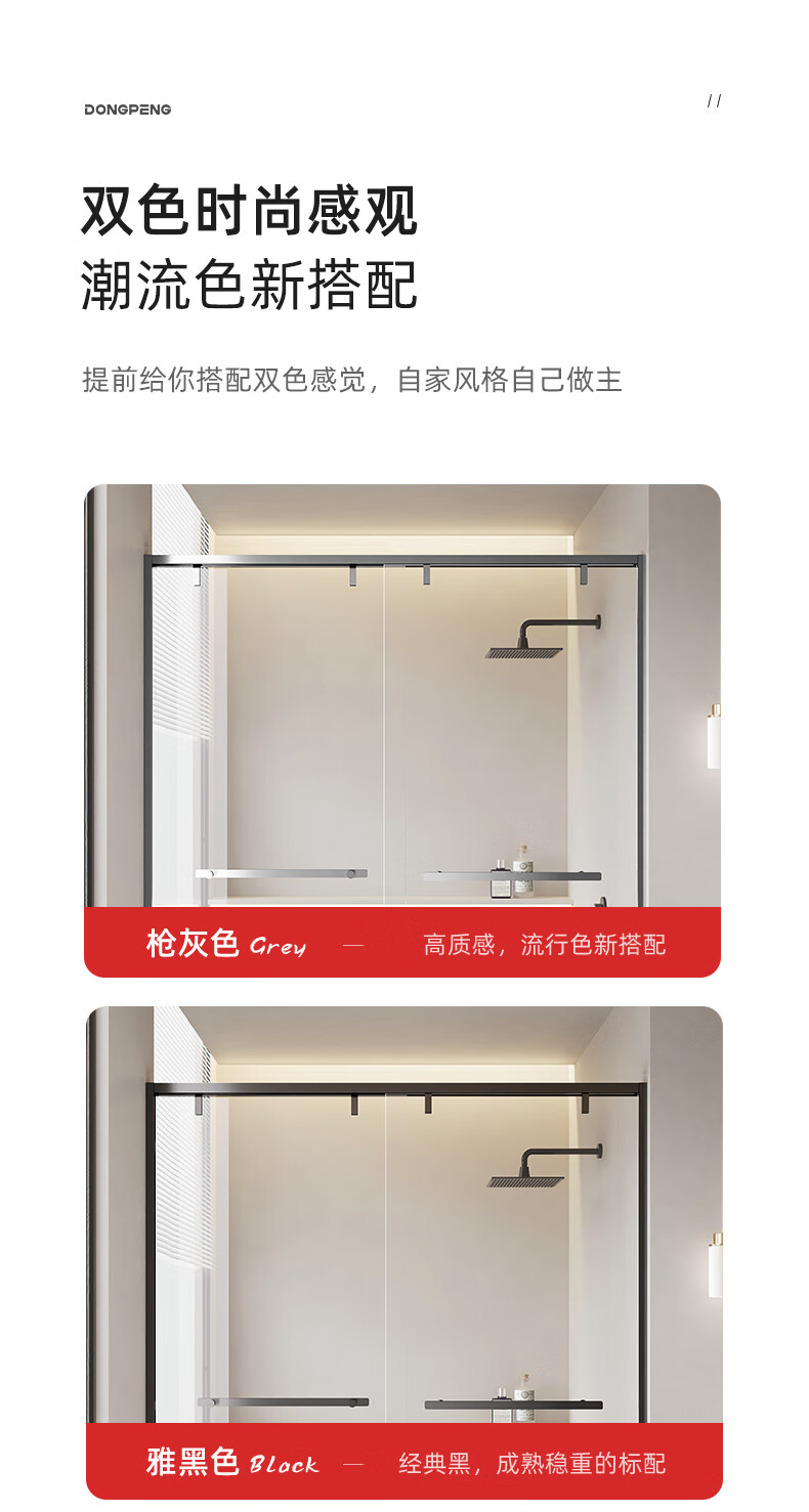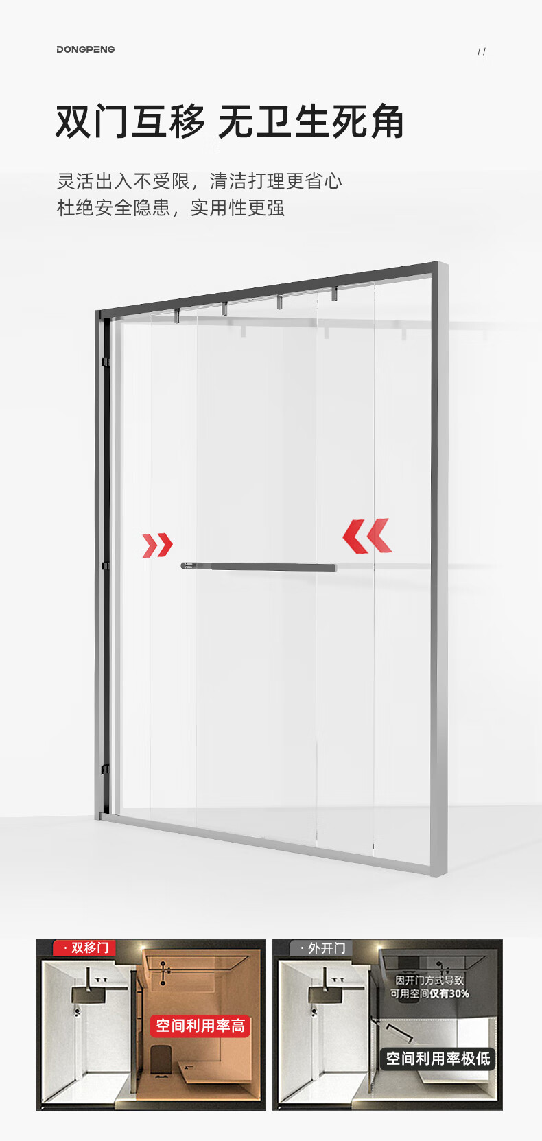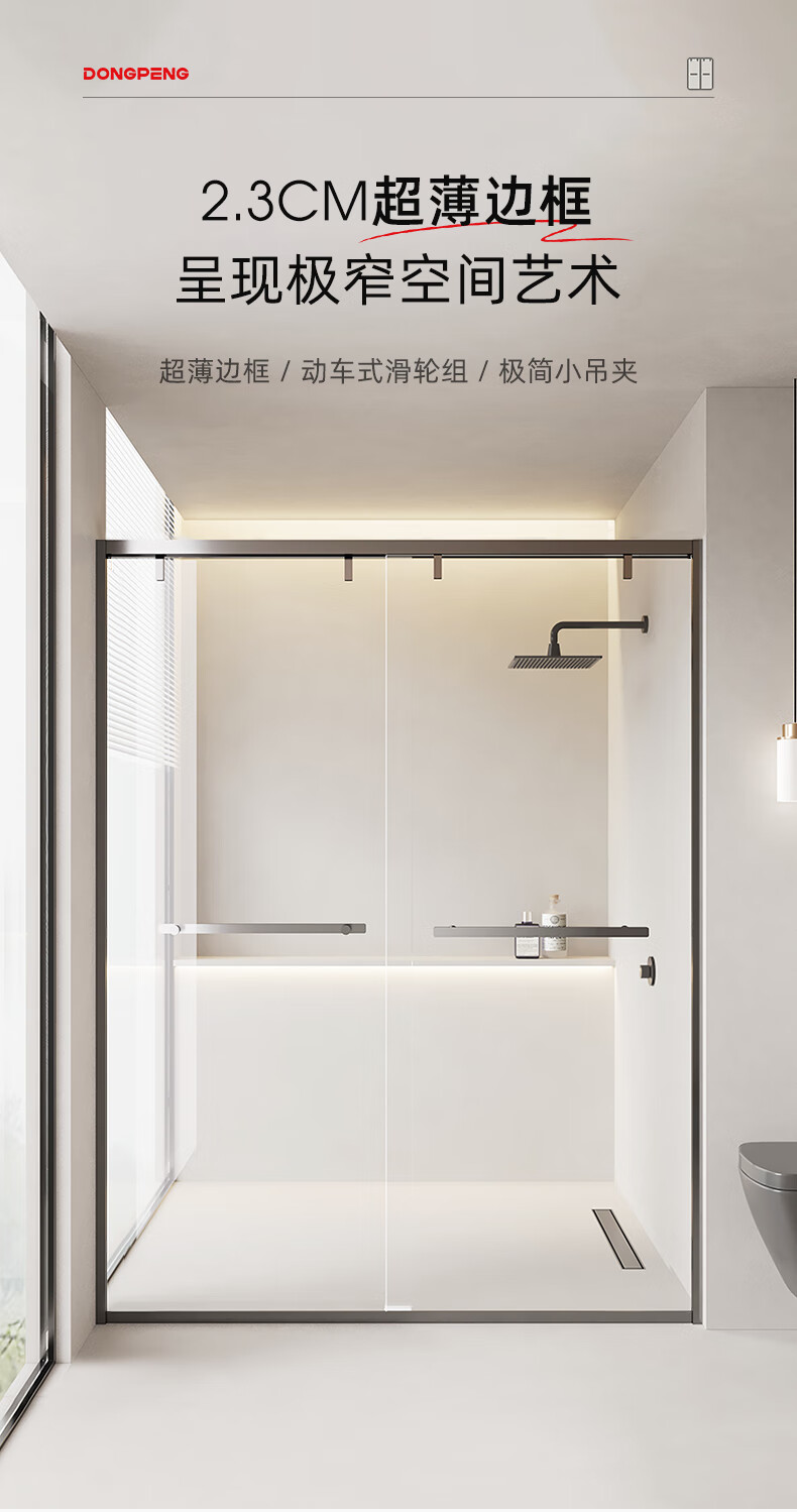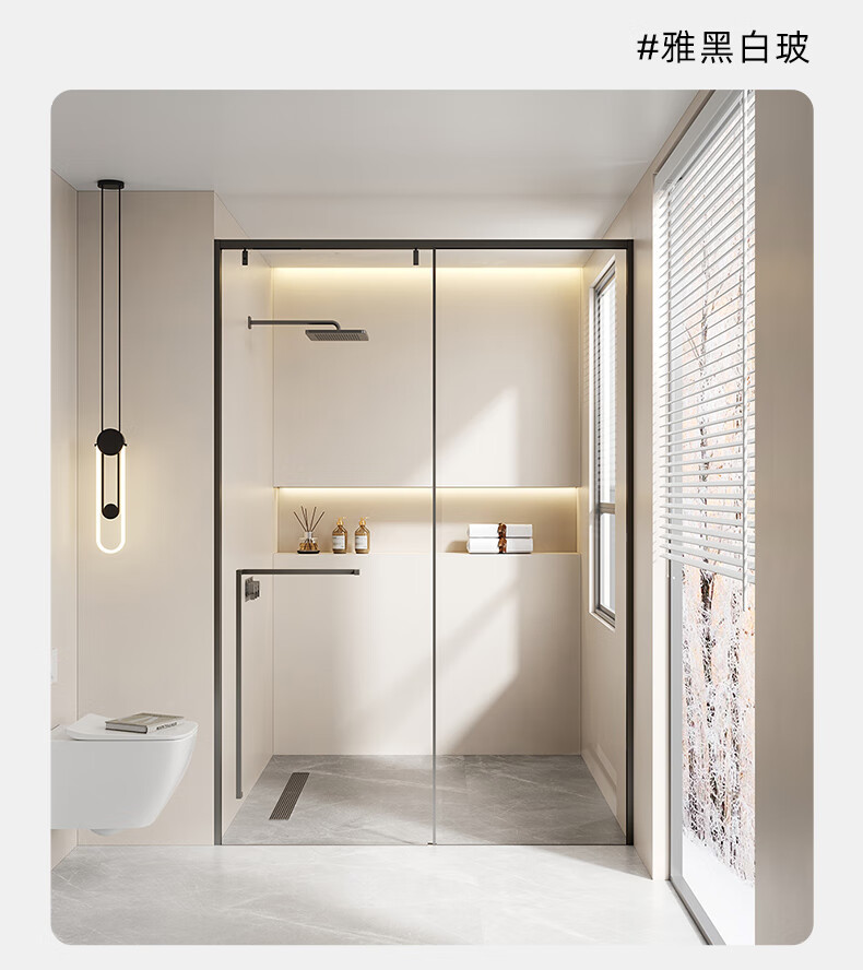 东鹏淋浴房淋浴隔断一字型卫生间浴室干湿分离玻璃推拉门洗澡间浴屏 单移雅黑+阻尼2㎡ 不锈钢边框|标高2米