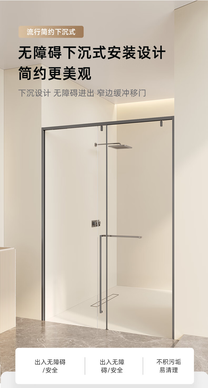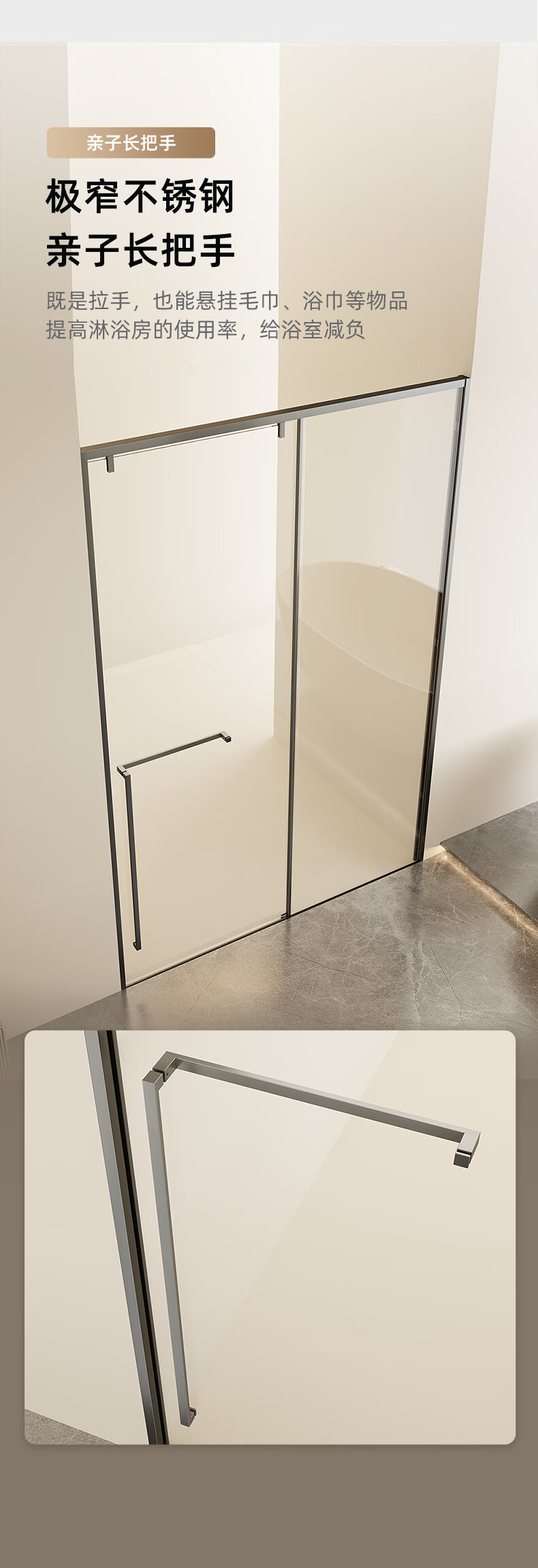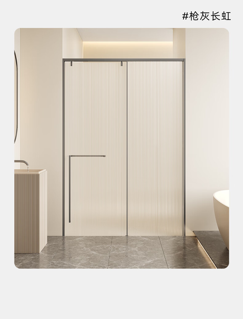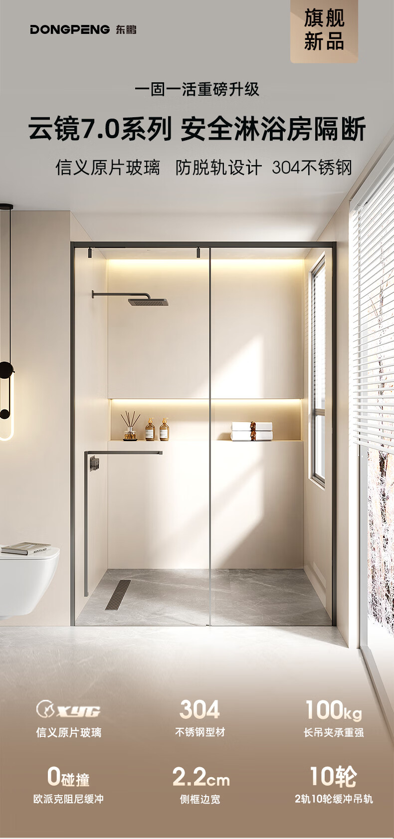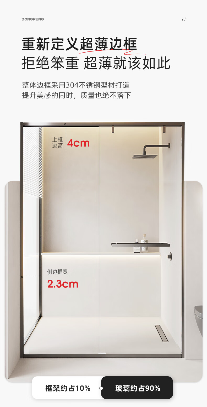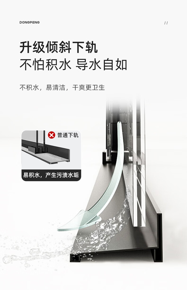 东鹏淋浴房淋浴隔断一字型卫生间浴室干湿分离玻璃推拉门洗澡间浴屏 单移雅黑+阻尼2㎡ 不锈钢边框|标高2米